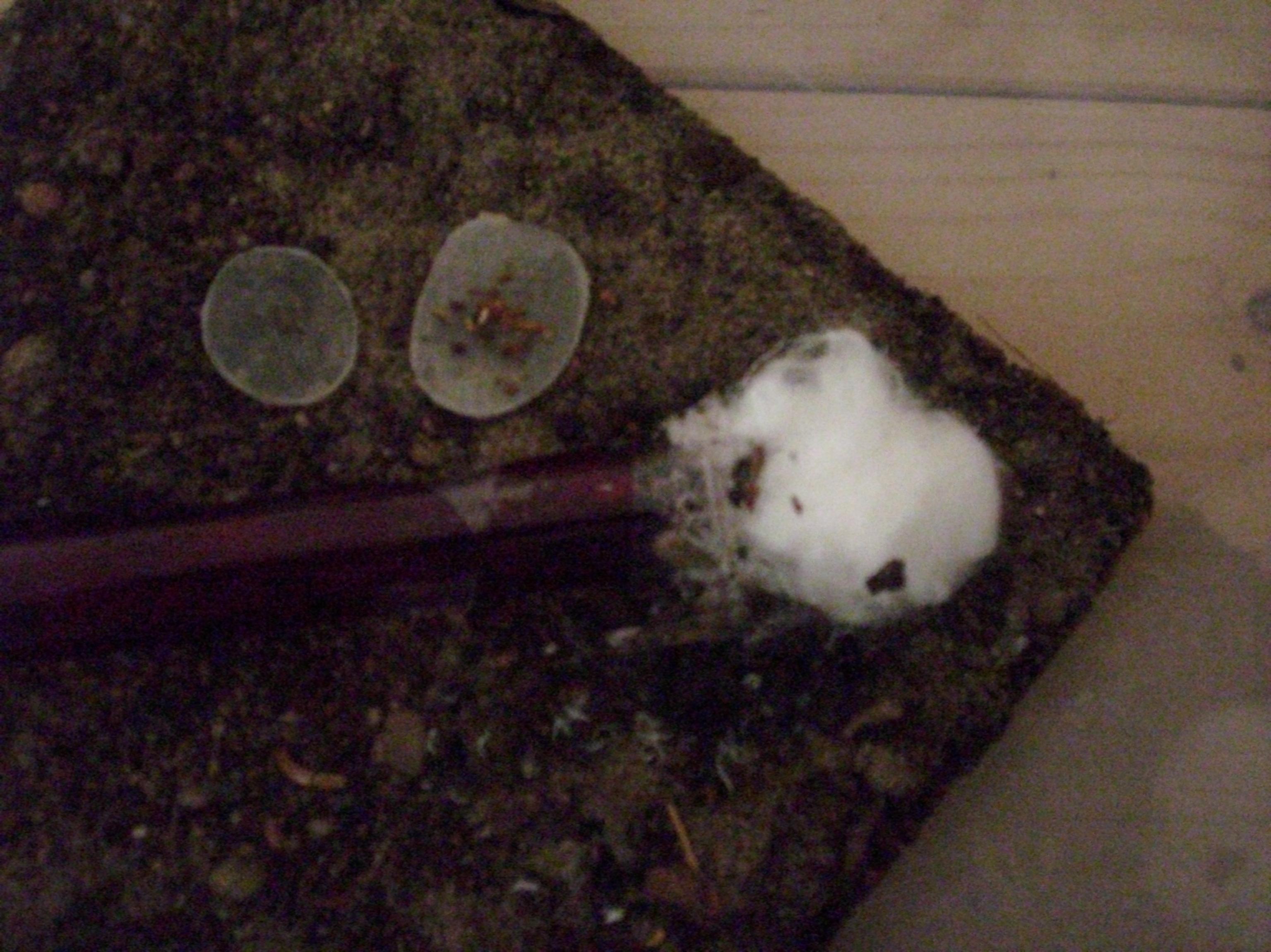 Den Wattebausch mit dem das RG verschlossen war habe ich herausgezogen und halb vor dem Eingang liegen galassen.
