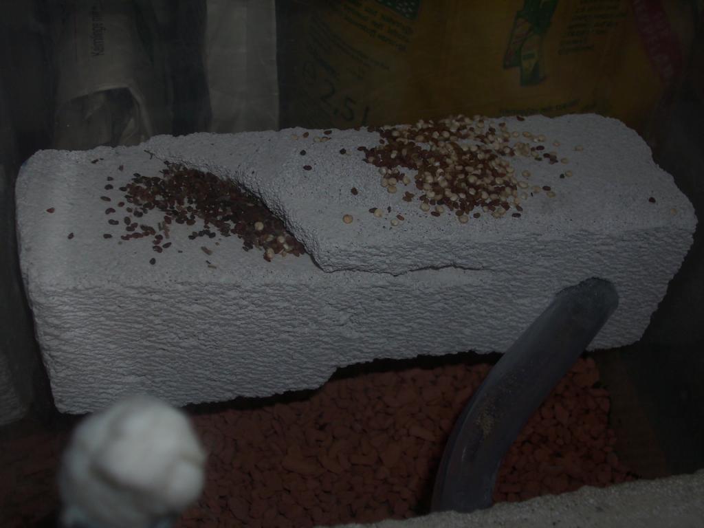 Am Abend habe ich Ihnen einen kleinen Tropfen Honig und einen halbierte abgebrĂŒhte Mehlwurm angeboten.