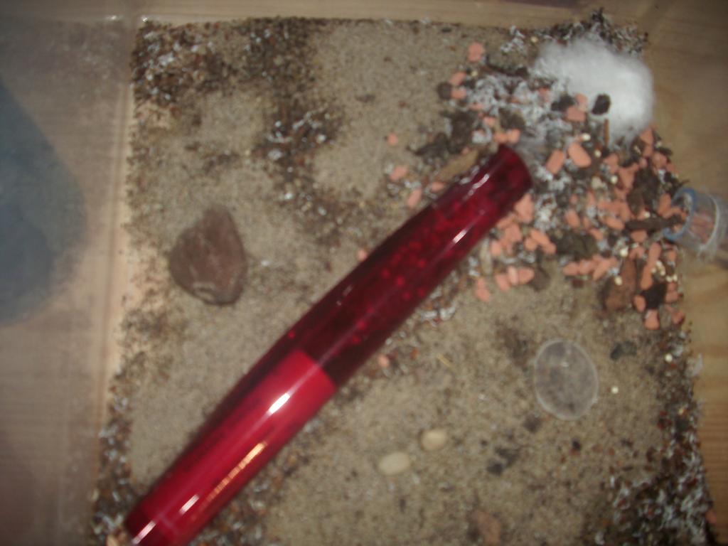 Auf dem Boden des BehĂ€lters befindet sich eine dĂŒnne Erdschicht. (In der Hoffnung, dass die Ameisen sich nicht eingraben).