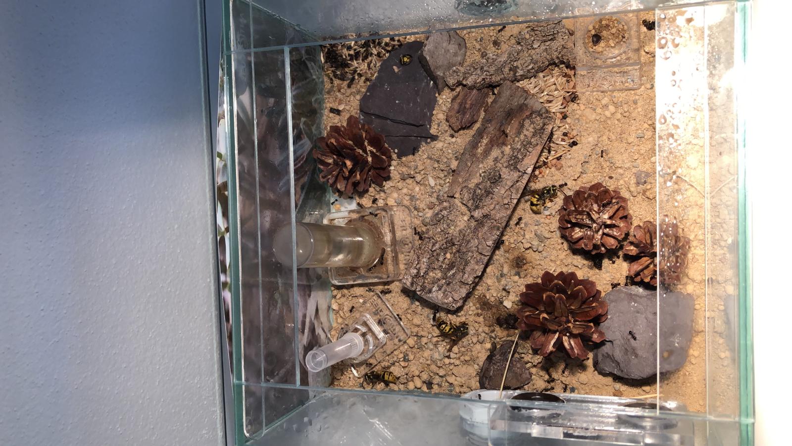 So nun zu meiner Kolonie: Die Kolonie ist in etwa 1,5 Jahre alt und umfasst um den Dreh 150 Tiere. Wie ihr da euch gut denken könnt sind es viel zu wenige Tiere fĂŒr eine 1,5-jĂ€hrige Kolonie. Dies ist auf die eben erwĂ€hnten Probleme zurĂŒckzufĂŒhren. Am Futter kann es meiner Meinung nach nicht gelegen haben, weil dieses immer sehr ausgewogen und vielseitig war/ist. Ich biete immer eine Vielzahl an Insekten und Körner.