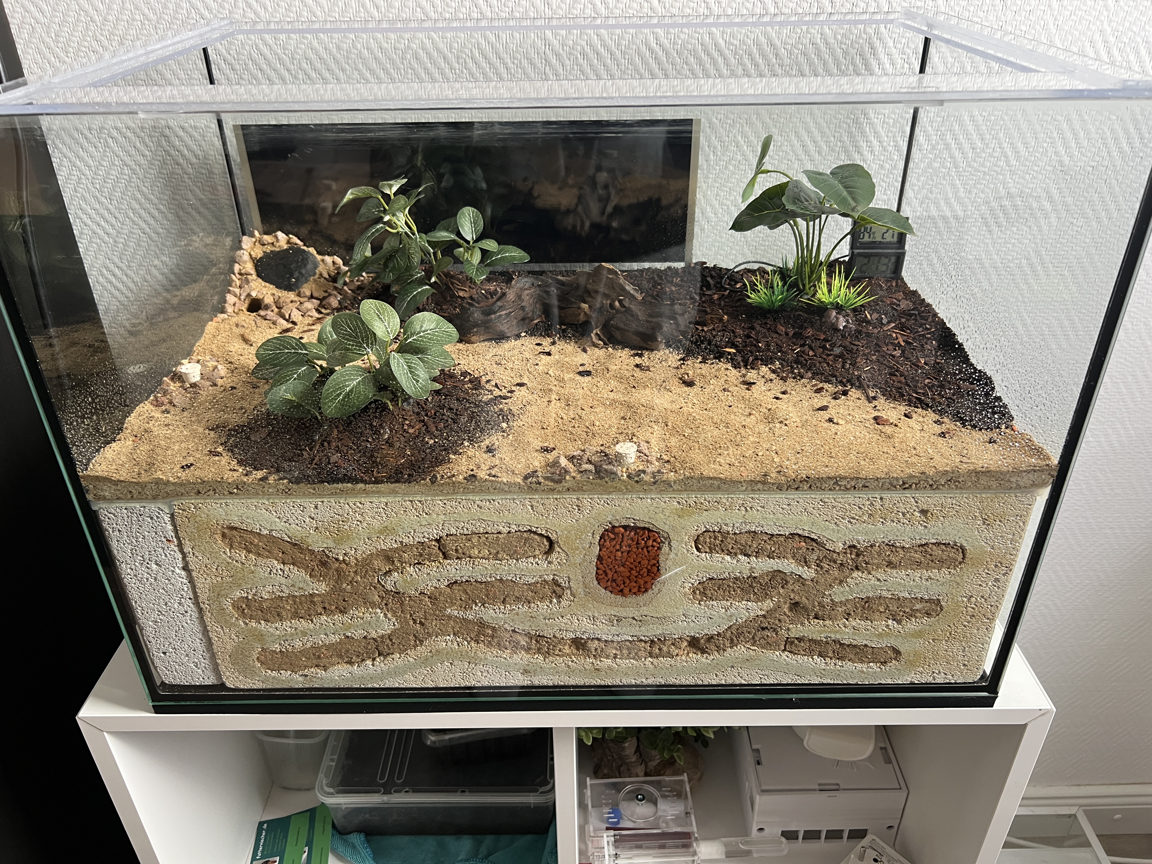 Auch dein Vorhaben bzgl. Aquarium und Ytong passt sehr gut - ich bin selbst ein Liebhaber von Aquarien mit internen Ytong Nestern und darĂŒber liegender Arena.