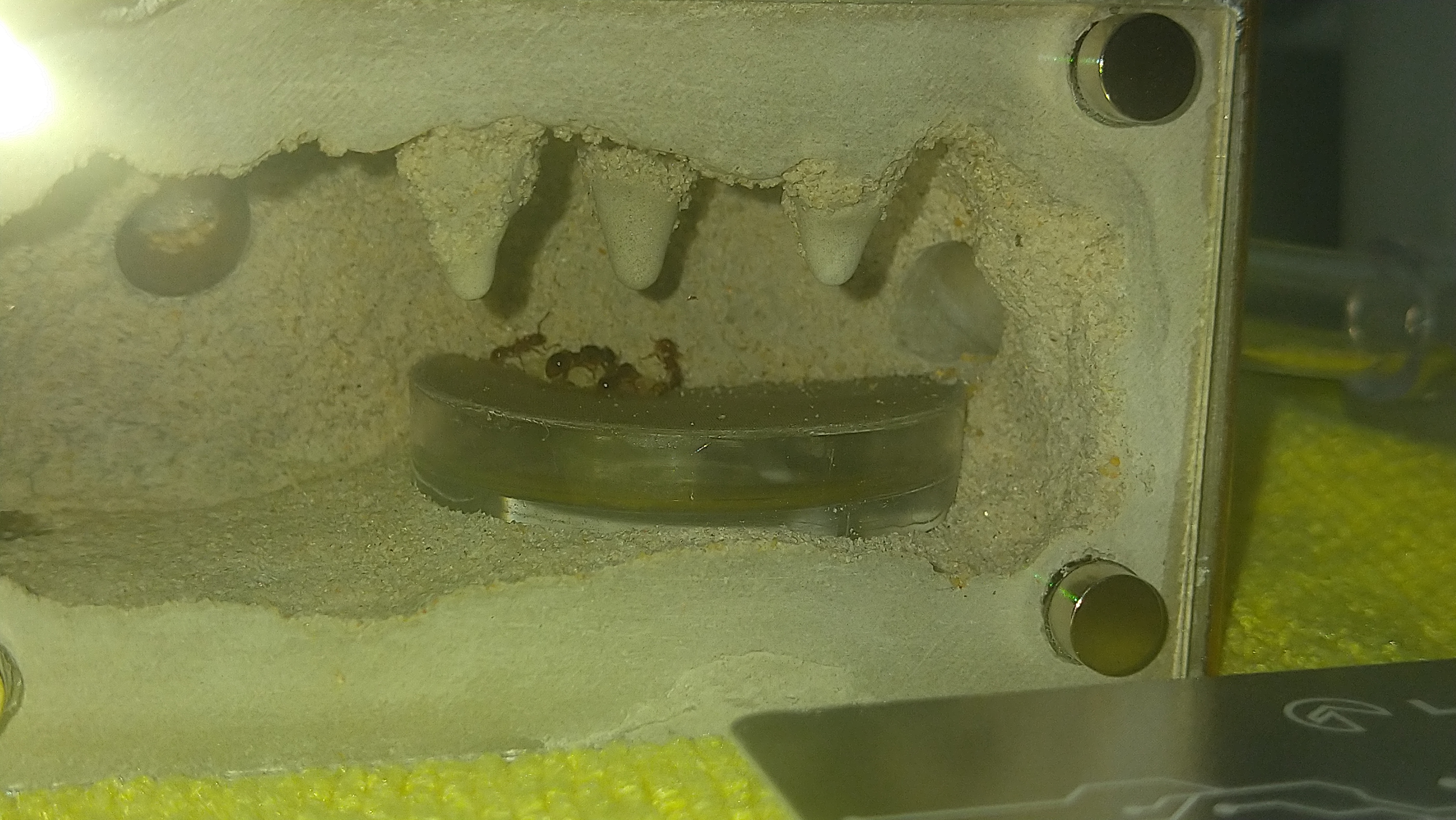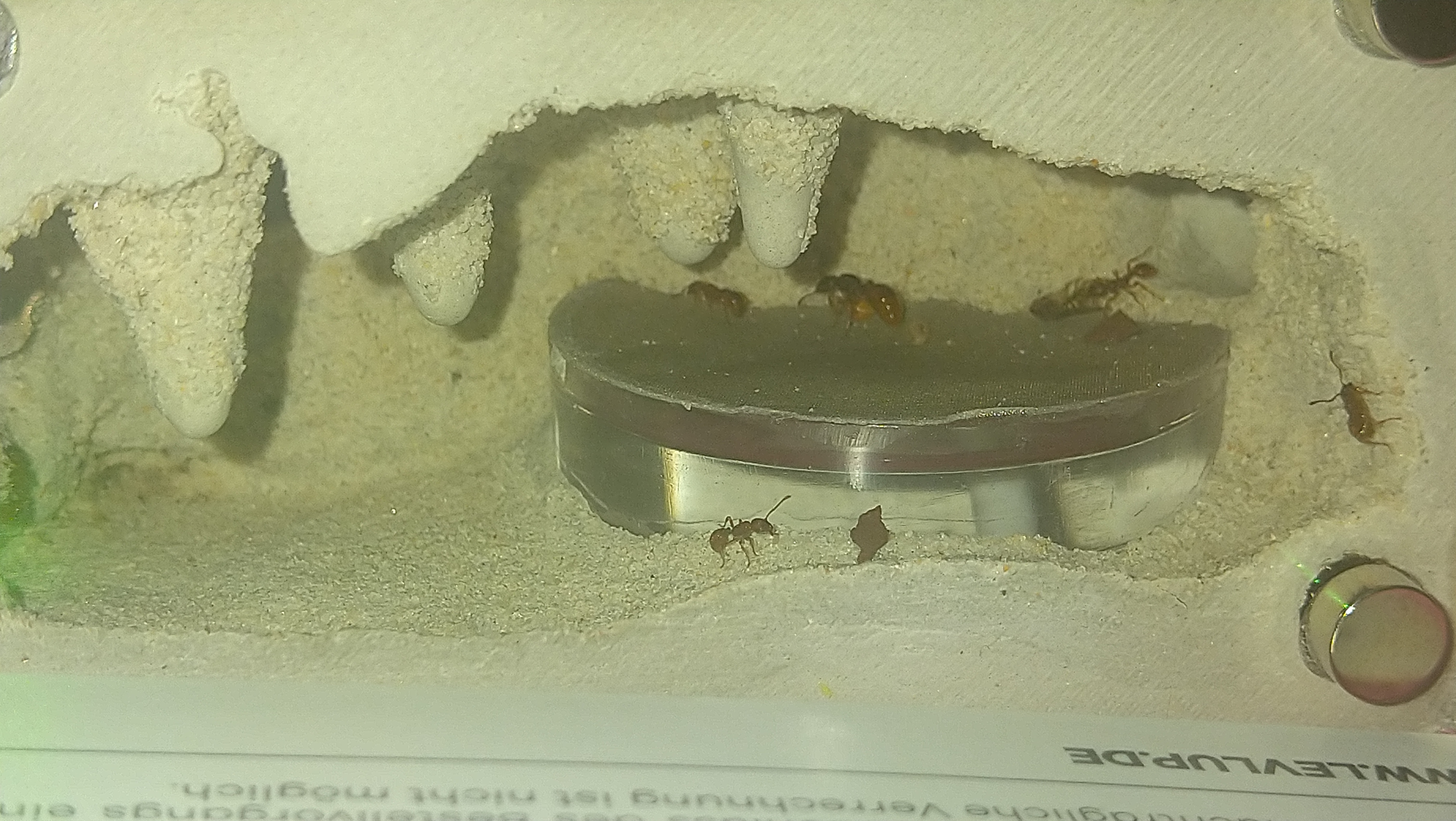 Beide Kolonien erleben gerade ihren "zweiten Frühling" ich habe an den Haltungsbedingungen nichts geändert. Doch plötzlich wird sich auf jegliches Futter gestürzt das ich anbiete. Beide Kolonien haben jetzt 8Arbeiter und sind richtig aktiv die letzten Tage.