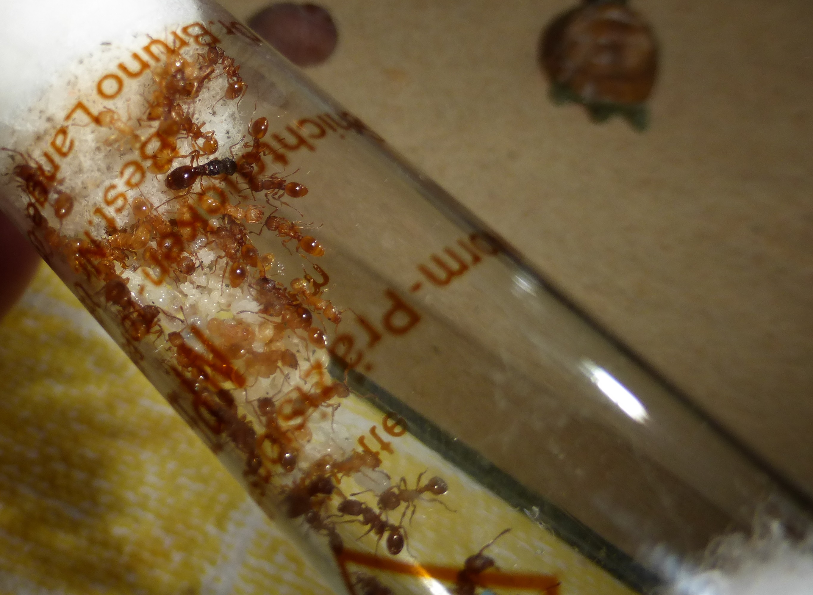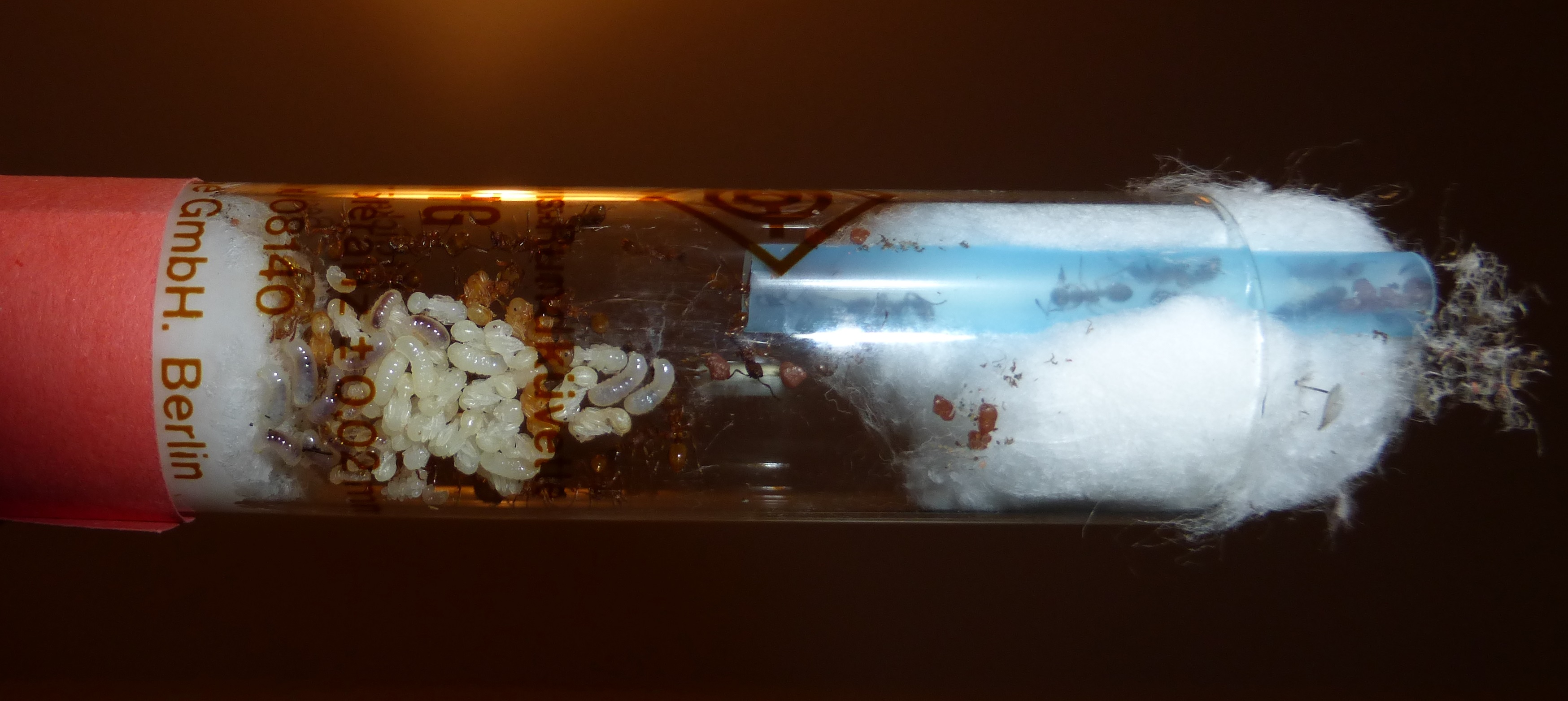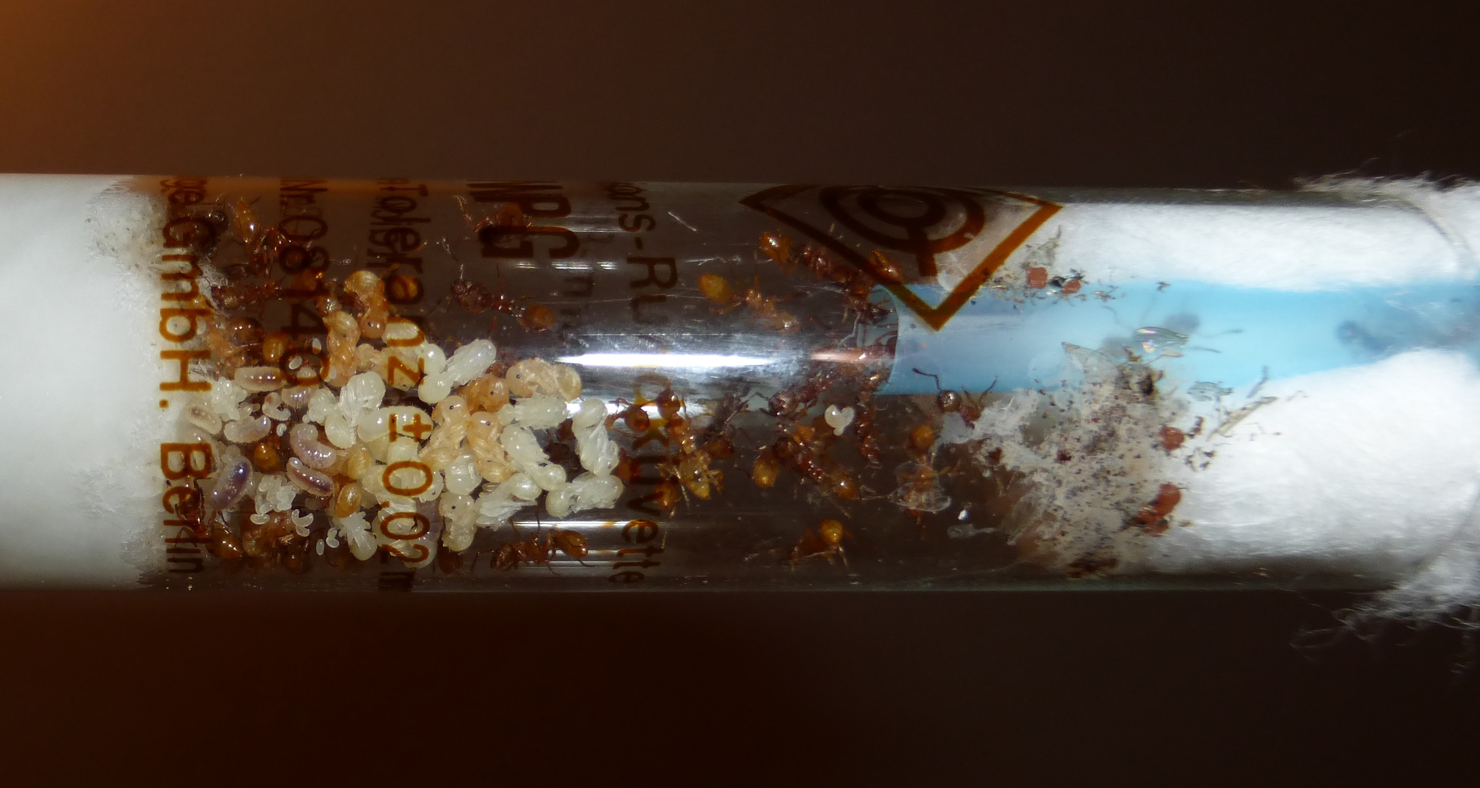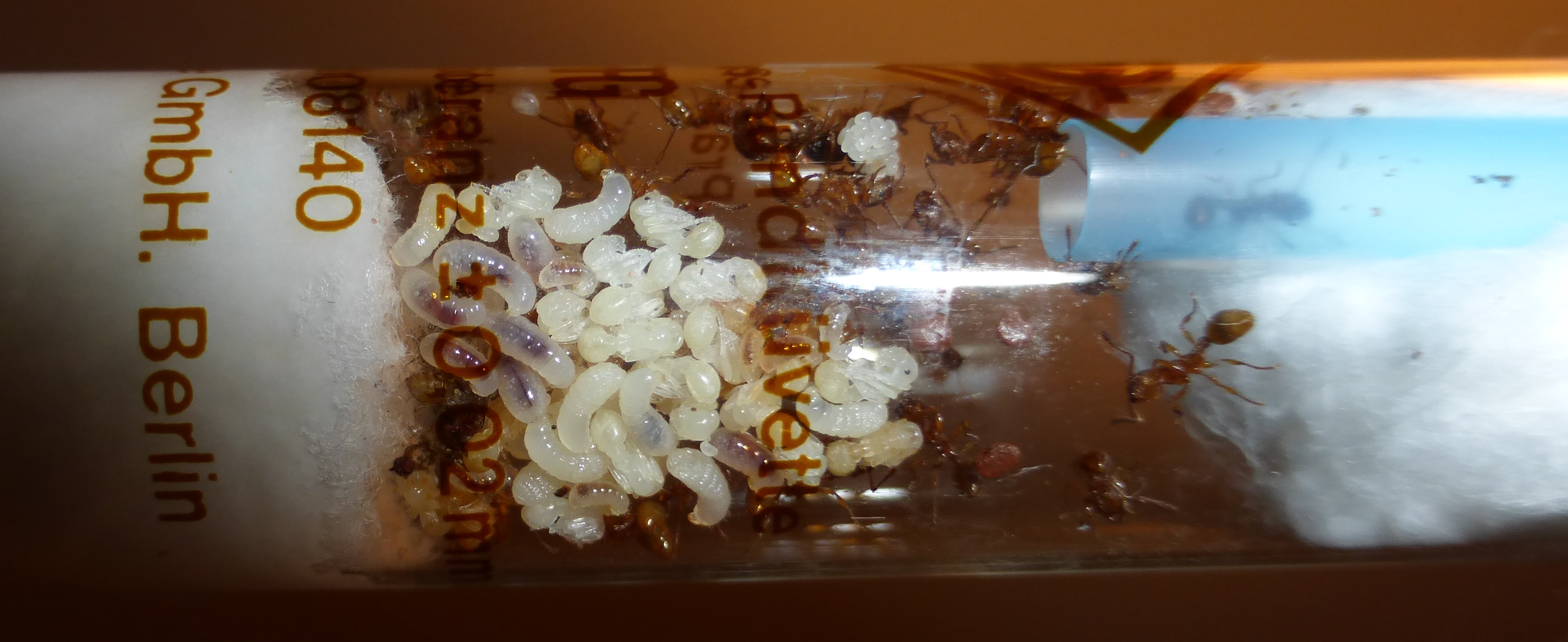 Und hier sind die Ameisen, in ihrem Reagenzglas.