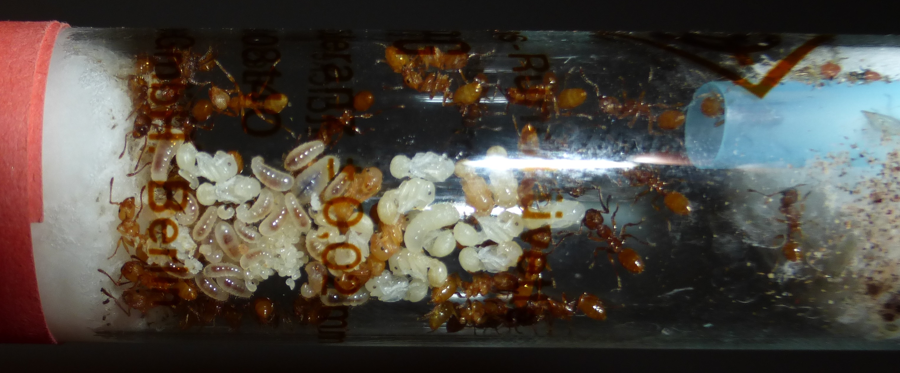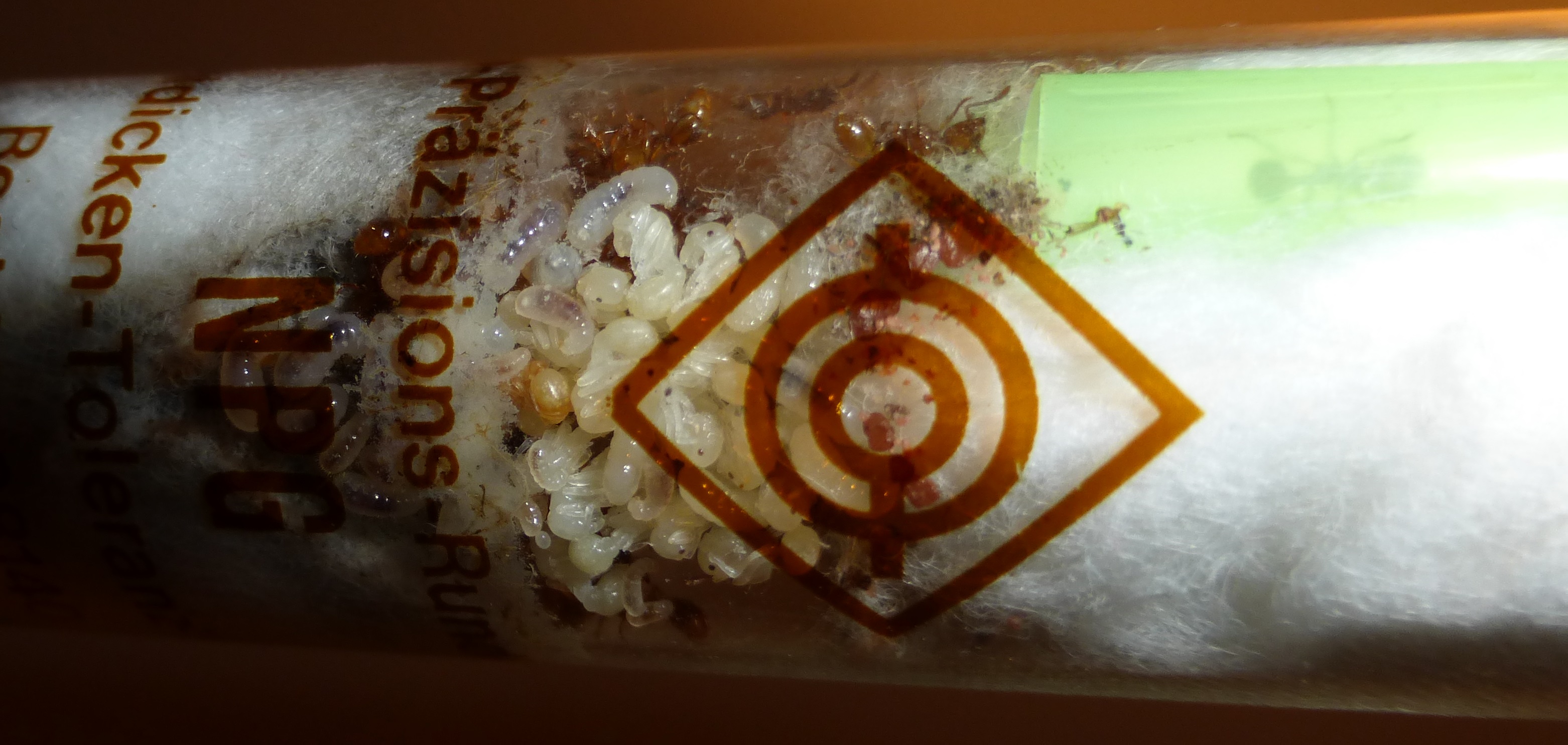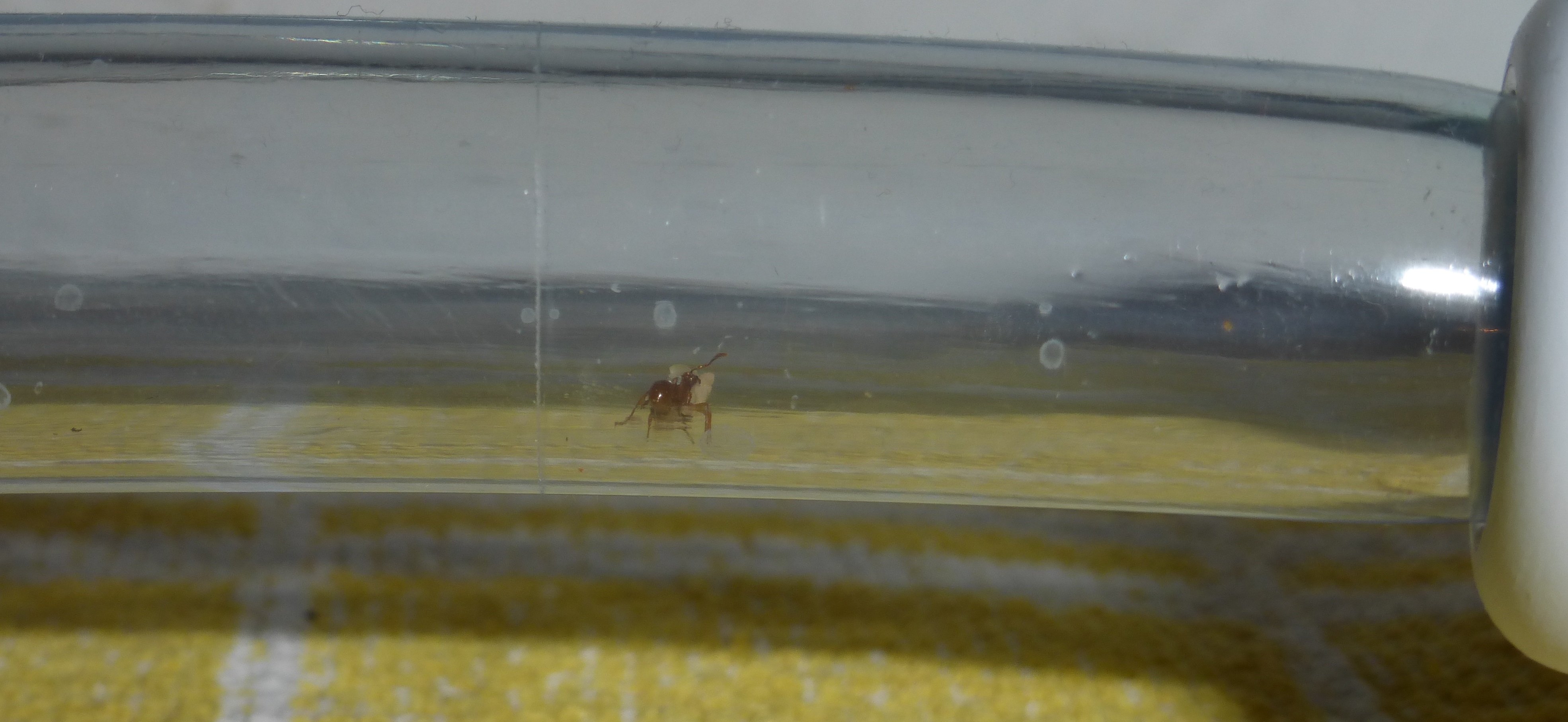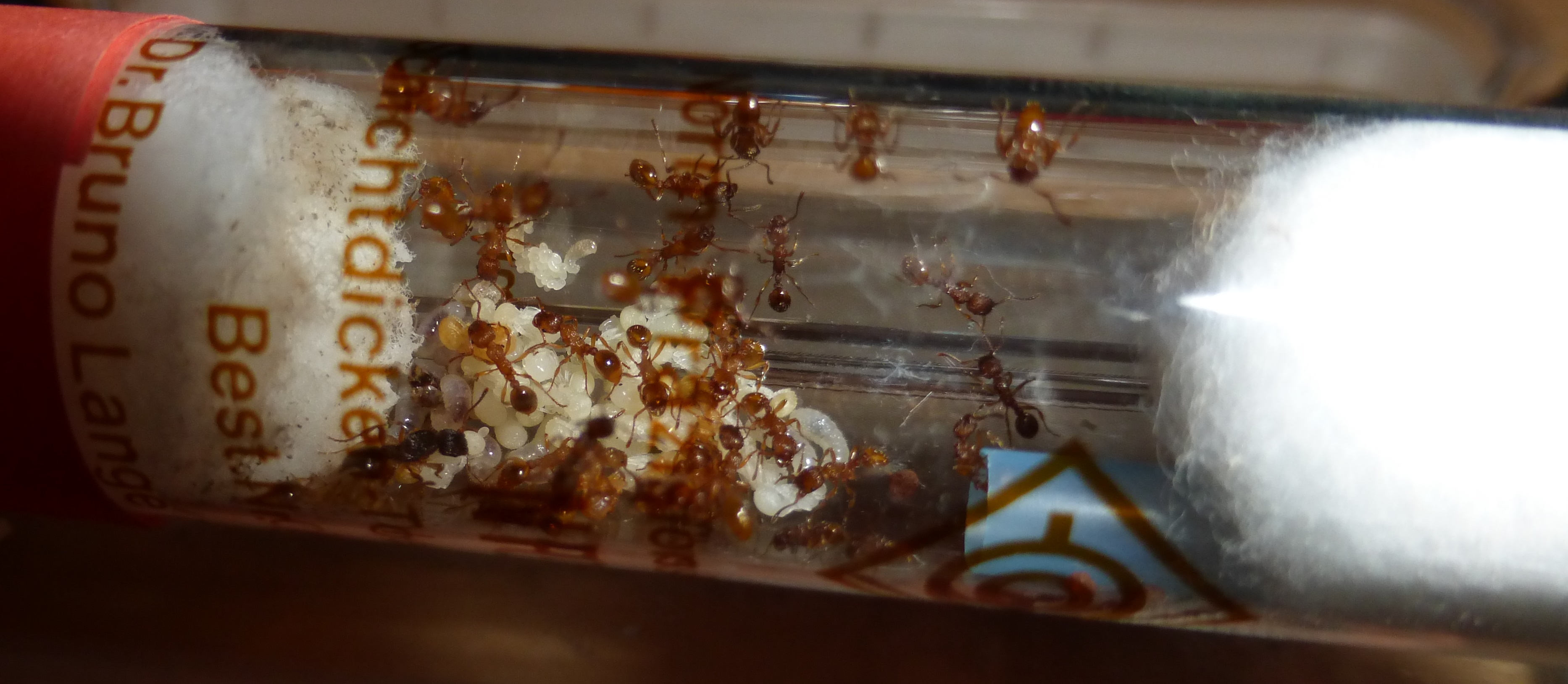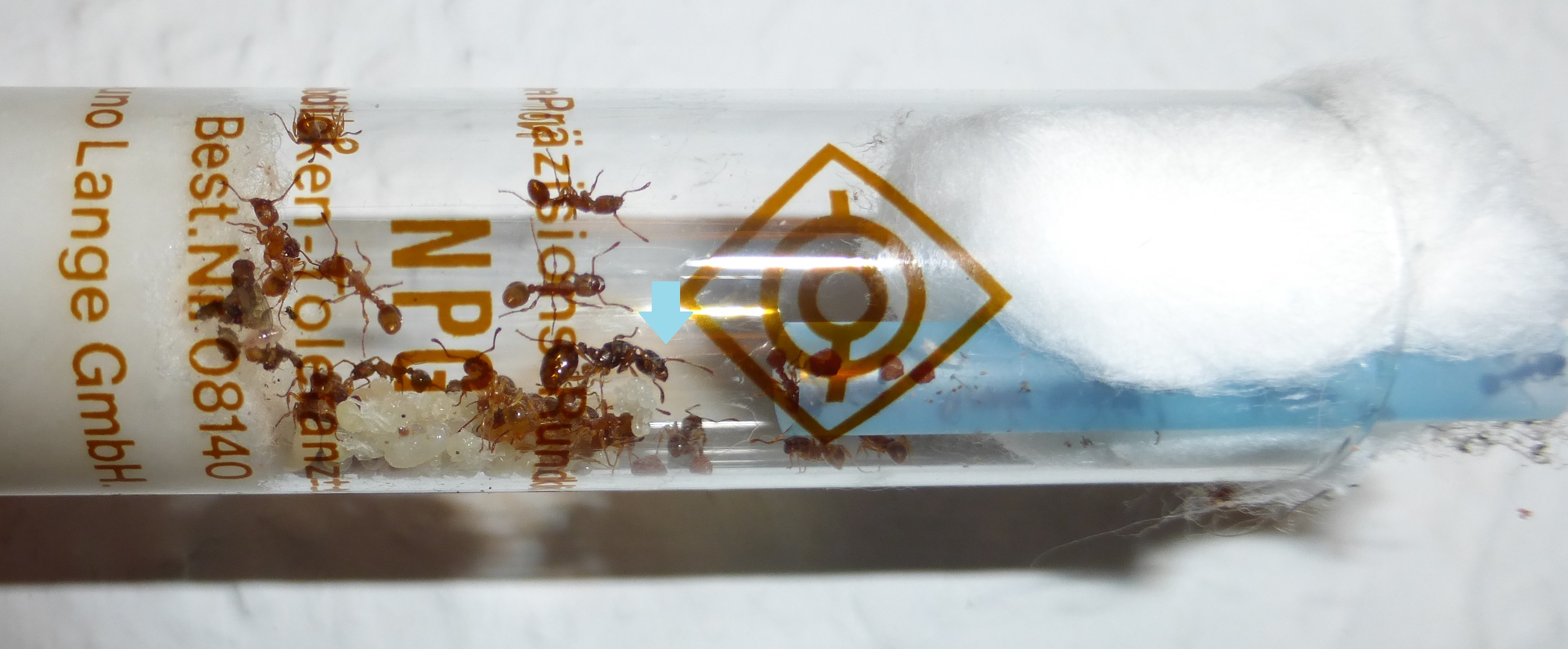Und hier sind die Ameisen, in ihrem Reagenzglas.
