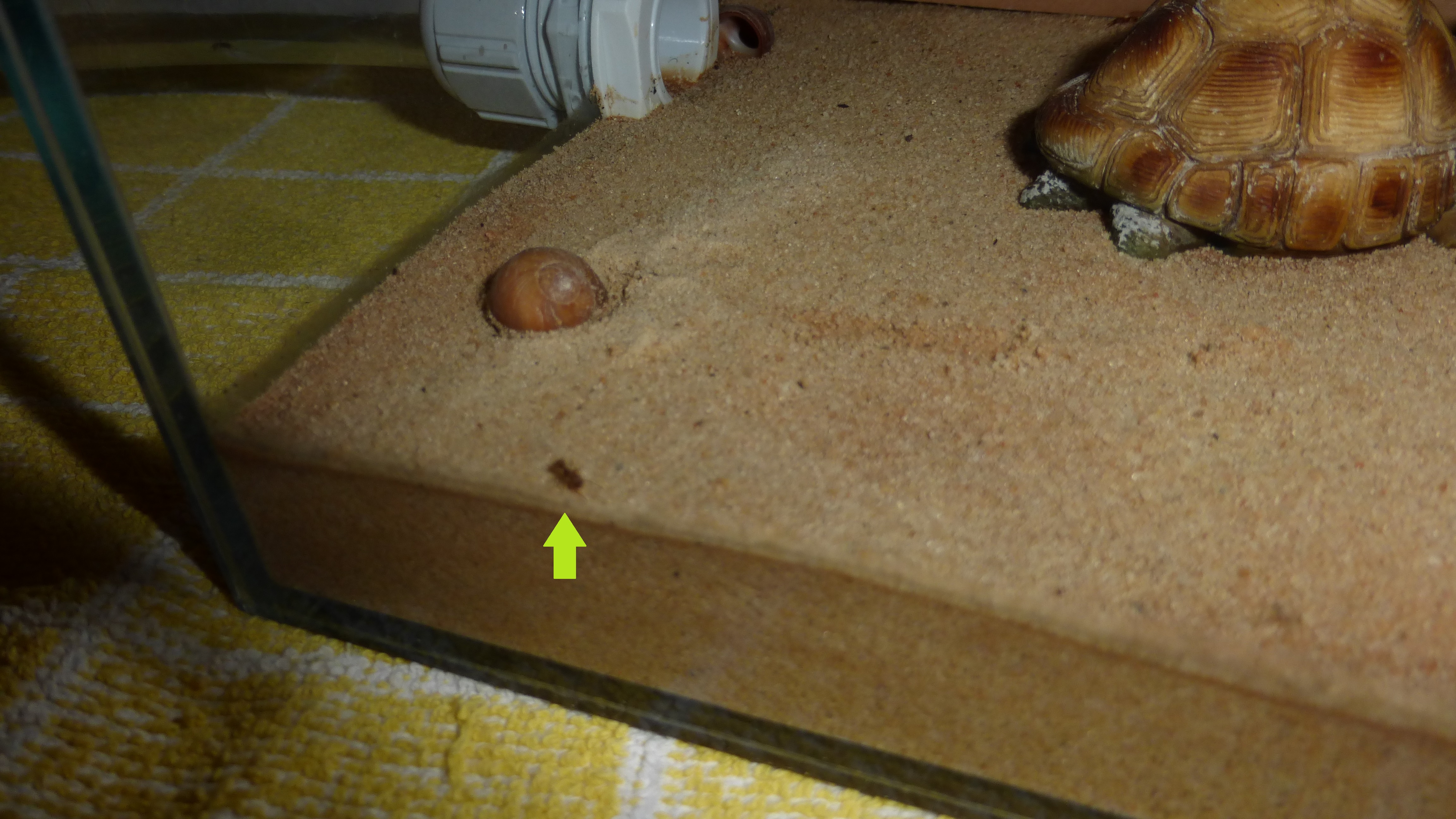 Es sind gelbe Aquariumsteinchen als Drainageschicht.