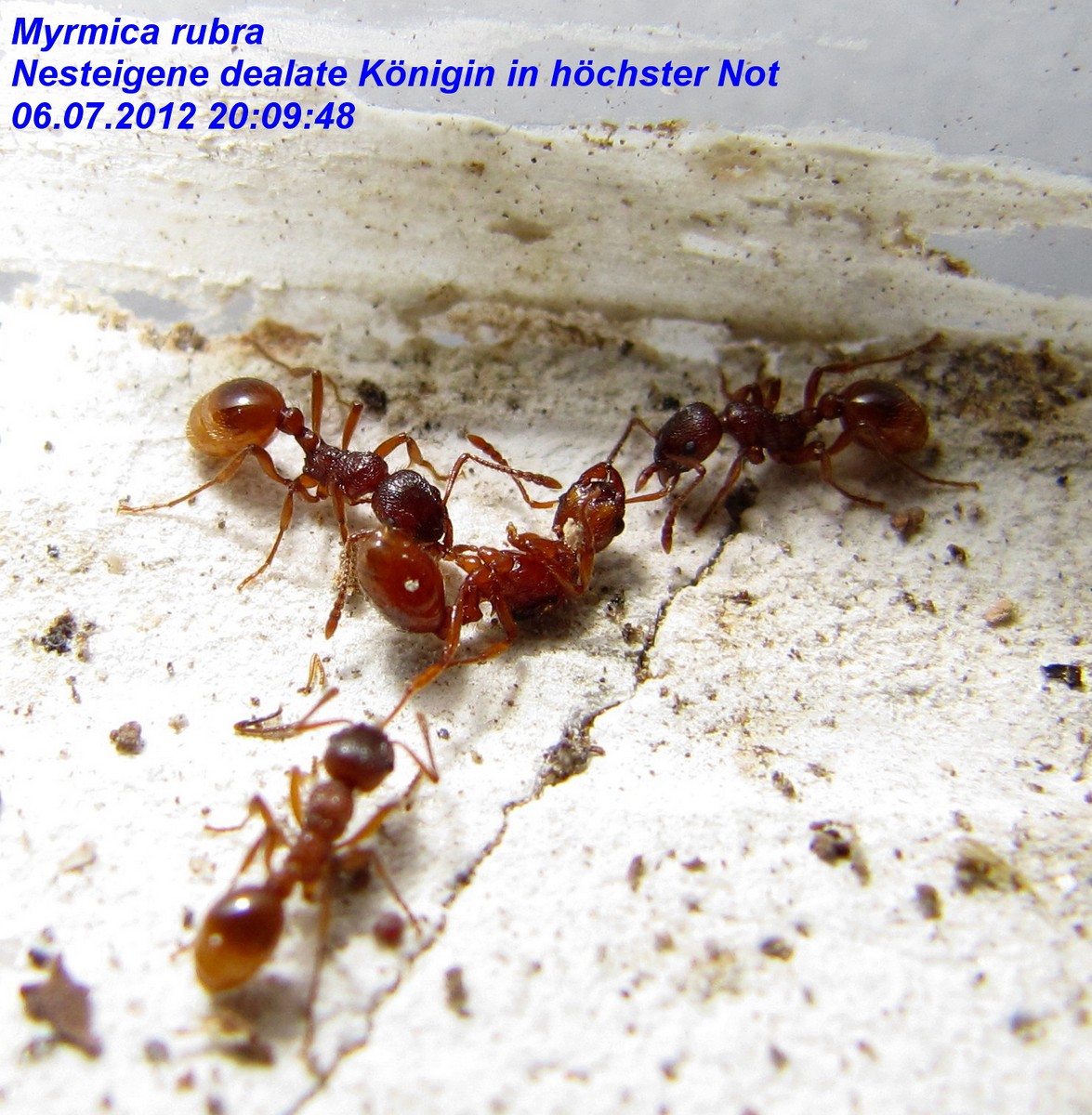 Königinnen von Myrmica rubra bei anderen Nestern der Art aufgenommen werden.