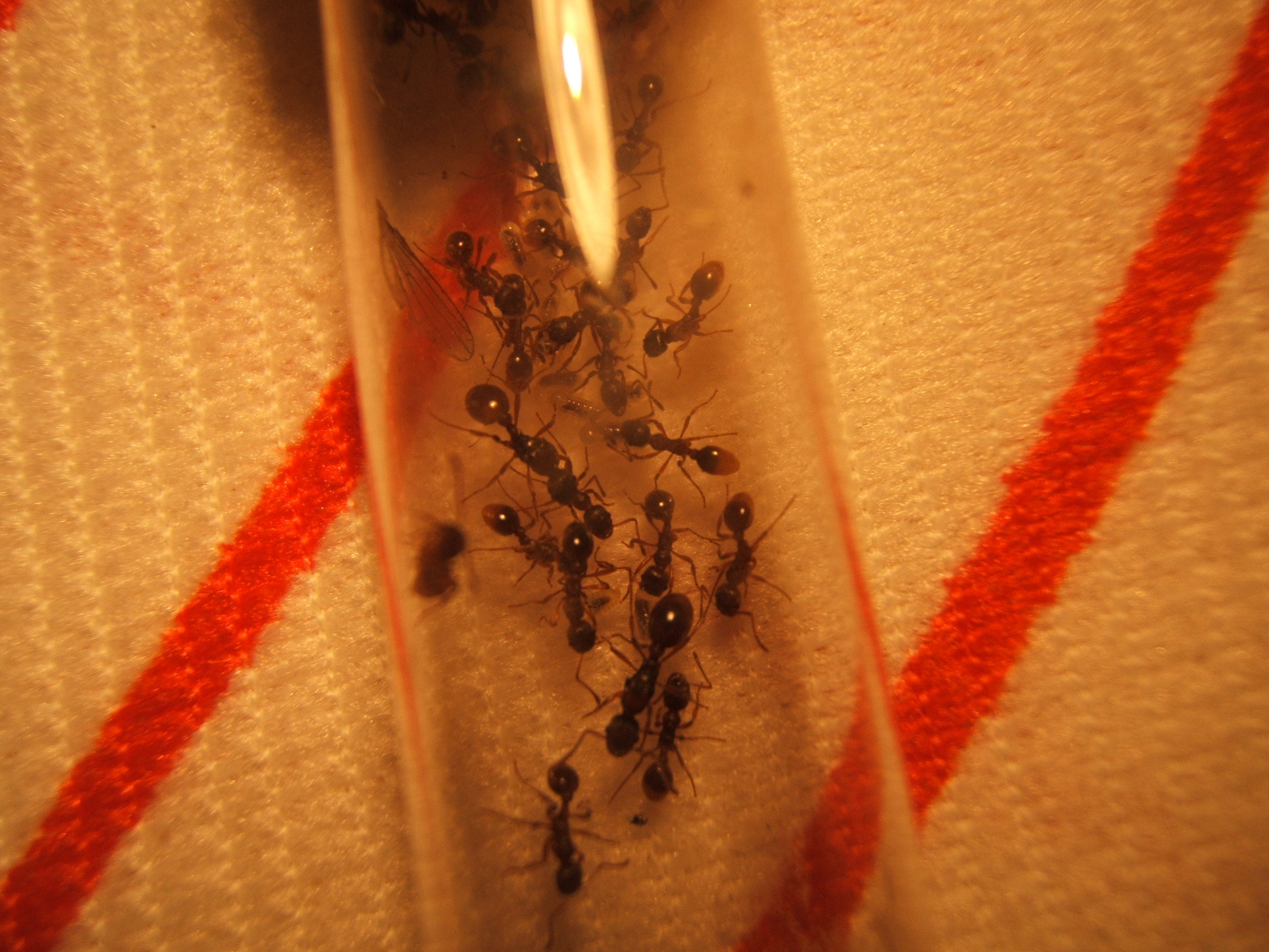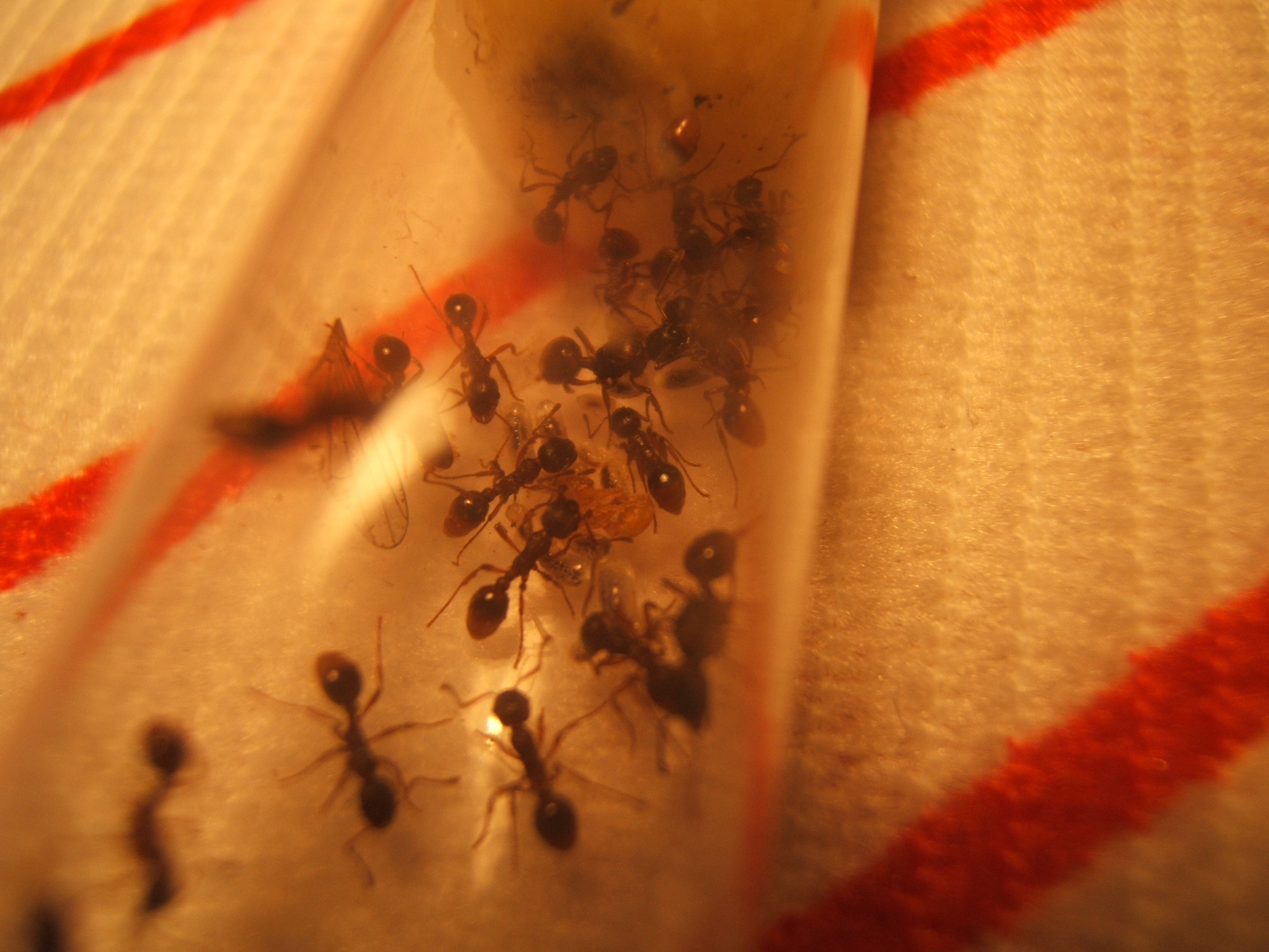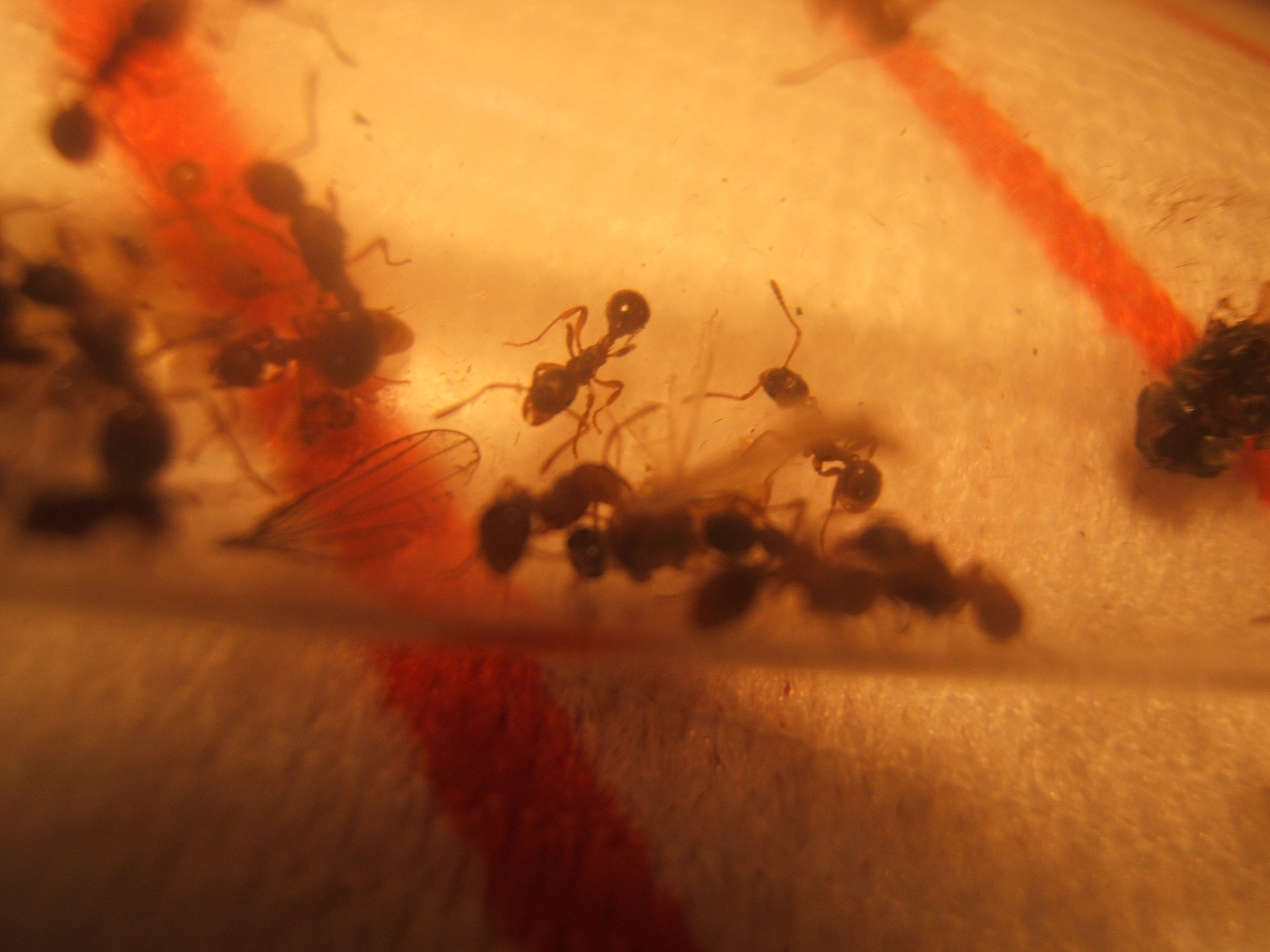 Hey Leute ich weiß nicht ob ich es noh schaffe zu Posten ohne Bilder zu hinterlassen.Mit Hilfe von Skazi hab ich die Bilder etwas bearbeitet.hoffe es gefält euch!Auf den Bildern Seht ihr wie sie einen kleiner Falter zerlegen den ich heute morgen gefangen hab.Auf den anderen seht ihr von mir die entpuppte Ameise!Ja es muss heute morgen gewessen sein den gestern Abend war sie noch eine