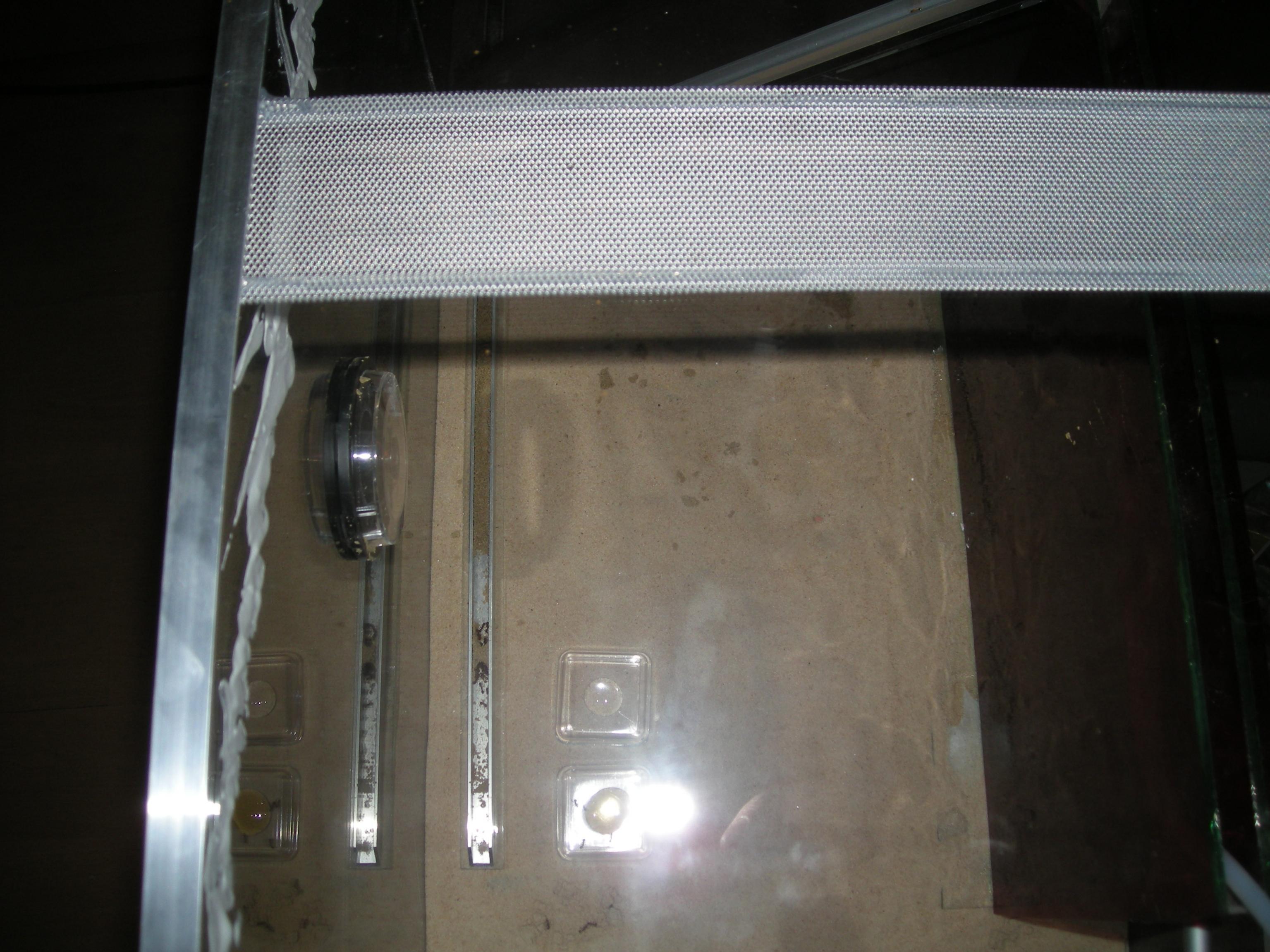 Der Farmdeckel funktioniert sehr gut als Verbindung zum Arenaboden. Da das neue Nest noch sehr feucht ist, kann ich sie dort mehrere Tage nun in Ruhe lassen, ohne das ich durch den Schlauch bewässern müsste (und damit riskieren würde, ihn zu bewegen, was möglicherweise Tiere einklemmen würde).