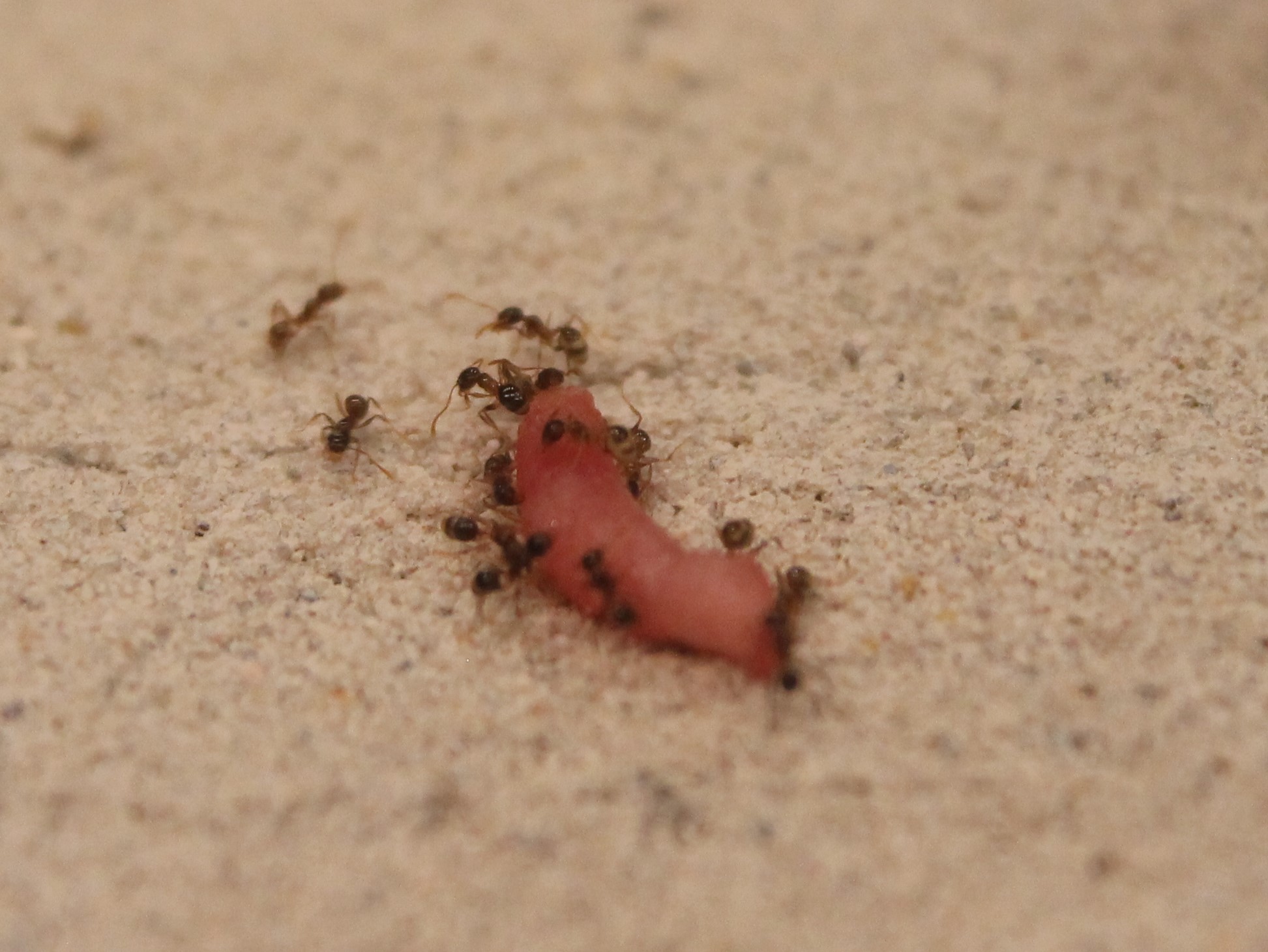 Pfui Spinne! dachten sich meine Camponotus rufoglaucus feae. Den ganzen Tag über (zumindest was ich so sah) kam mal eine und begutachtete die Beute ohne näheres Interesse.