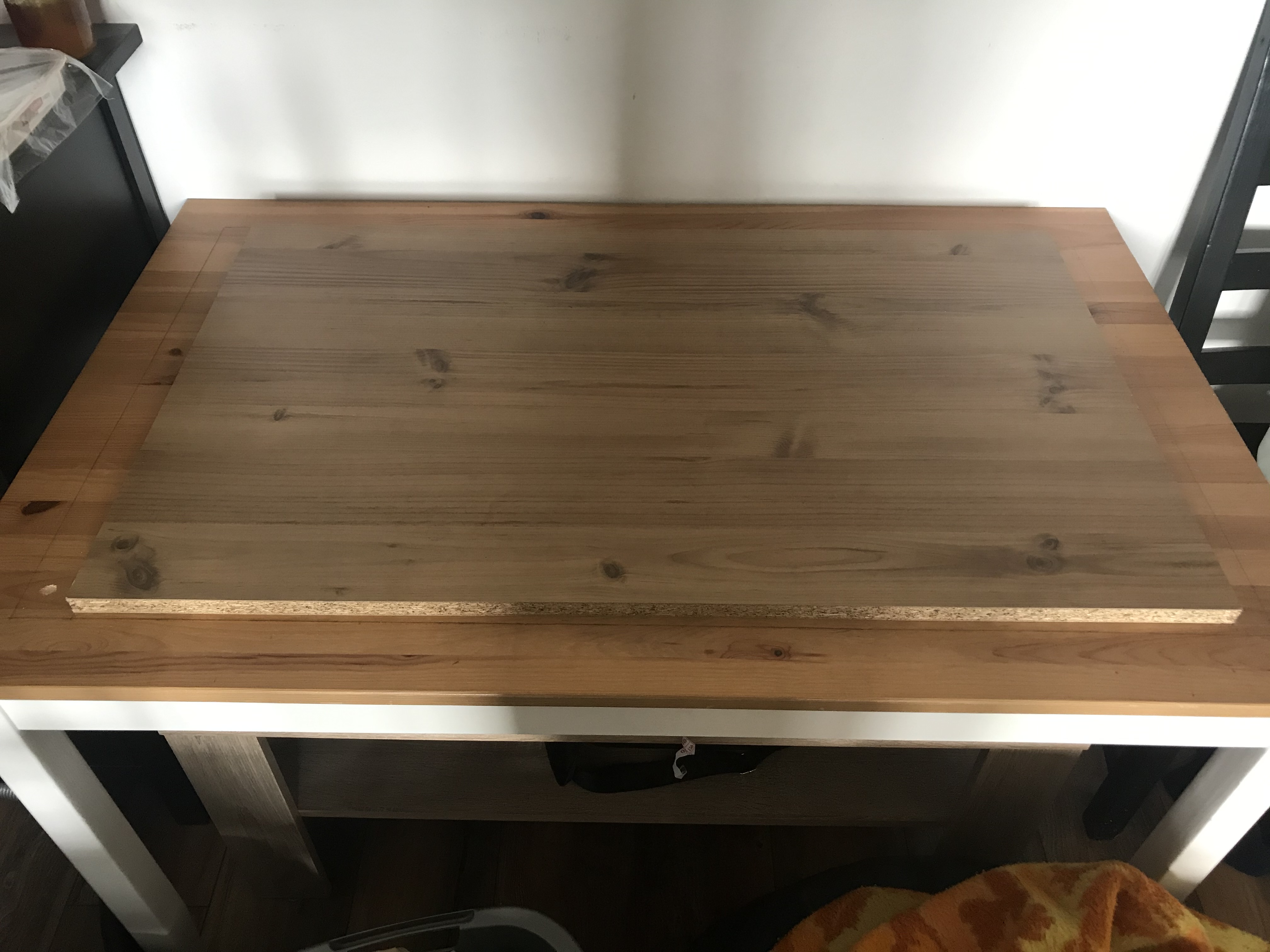 An den Tisch werde ich eine weitere Holzplatte montieren, um diese Holzplatte herum werde ich U-Profile als Wassergraben verlegen.