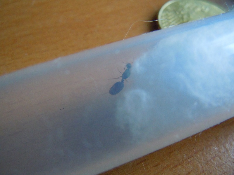 Ich muss mich verbessern. Es ist keine Tetramorium spec. sonder eine Solenopsis fugax. Da sich diese beiden Arten anschceinend sehr ähneln, habe ich gestern nochmal die Reagenzfläser nebeneinander gelegt und (mithilfe eines USB-Mikroskops) genau verglichen und für mich sehen die gleich aus. Die beiden Videos lade ich auch noch irgendwann hoch, blöderweise kann das Mikroskop nur Zeitrafferaufnahmen und ich muss die irgendwie langsamer machen.