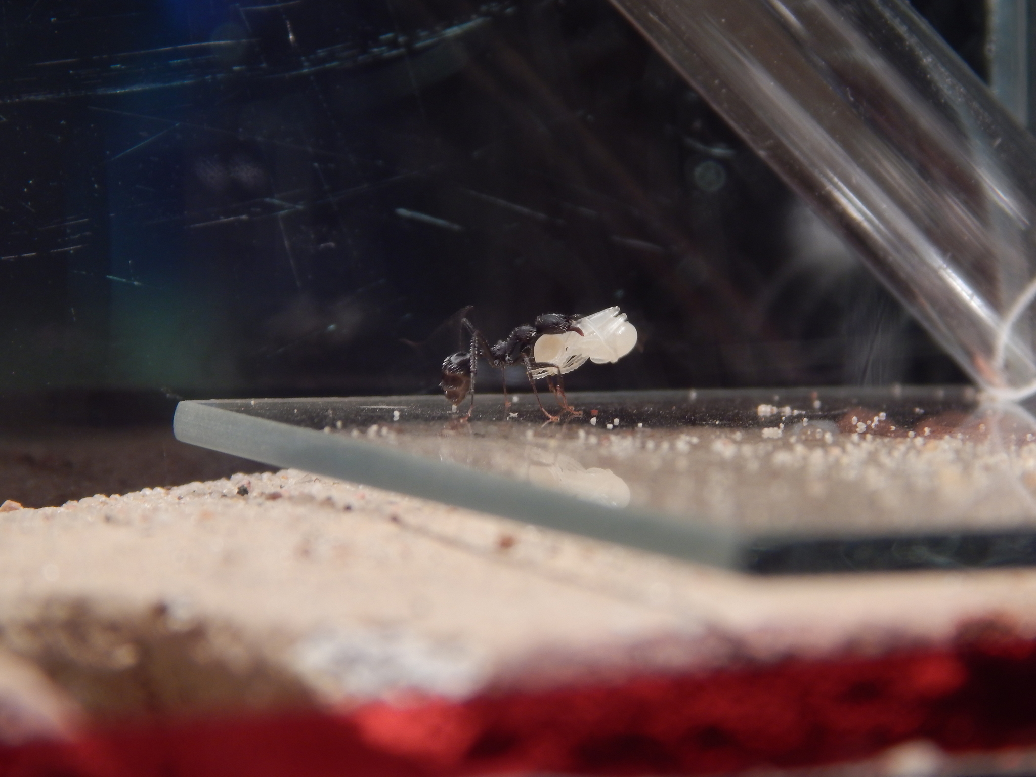 So habe ich mir das mit den Ameisen auch vorgestellt doch bin ich froh das ich mit der Lasius niger angefangen habe denn die Erfahrungen die ich gesammelt habe machen es mir doch recht einfach den Aphaenogaster senillis in ihren Bedürfnissen entgegen zu kommen. Auch meine Lasius niger entwickeln sich anscheinend weiter denn heute 14.6.15 habe ich einmal kurz in das RG geschaut und aus den Eiern sind doch