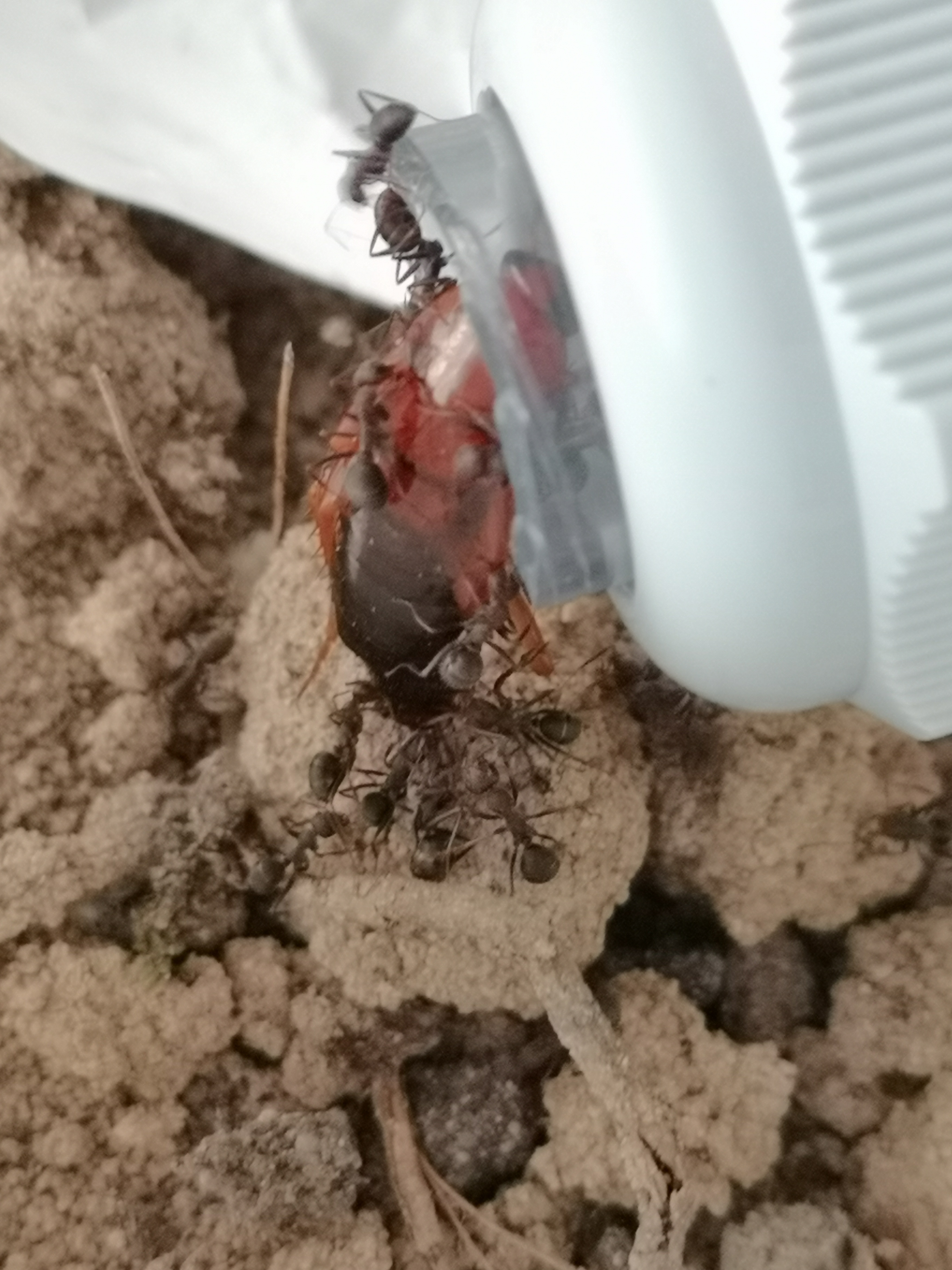 Heute gab es eine sub-adulte Schokoschabe welche schnell entdeckt wurde. Ich finde, dass die Iberoformica subrufa echt schnell rekrutieren können. Es ist bisher die 2. Schokoschabe welche ich verfüttert habe, Mehlwürmer werden auch gerne angenommen.