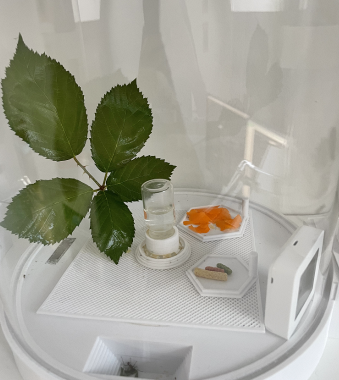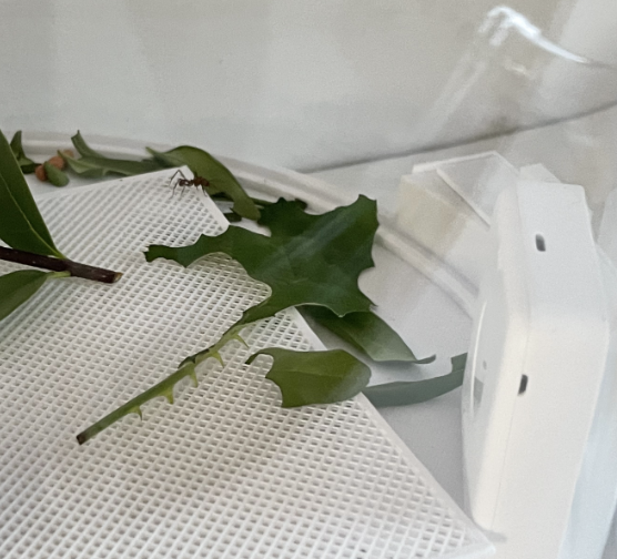 Aktuell geht es den MĂ€dels sehr gut. Sie haben nun angefangen auch das "alte" Brombeerblatt welches vom HĂ€ndler mit kam und im Nest als Dach genutzt wurde zu zerschneiden. Jetzt kann man gut die