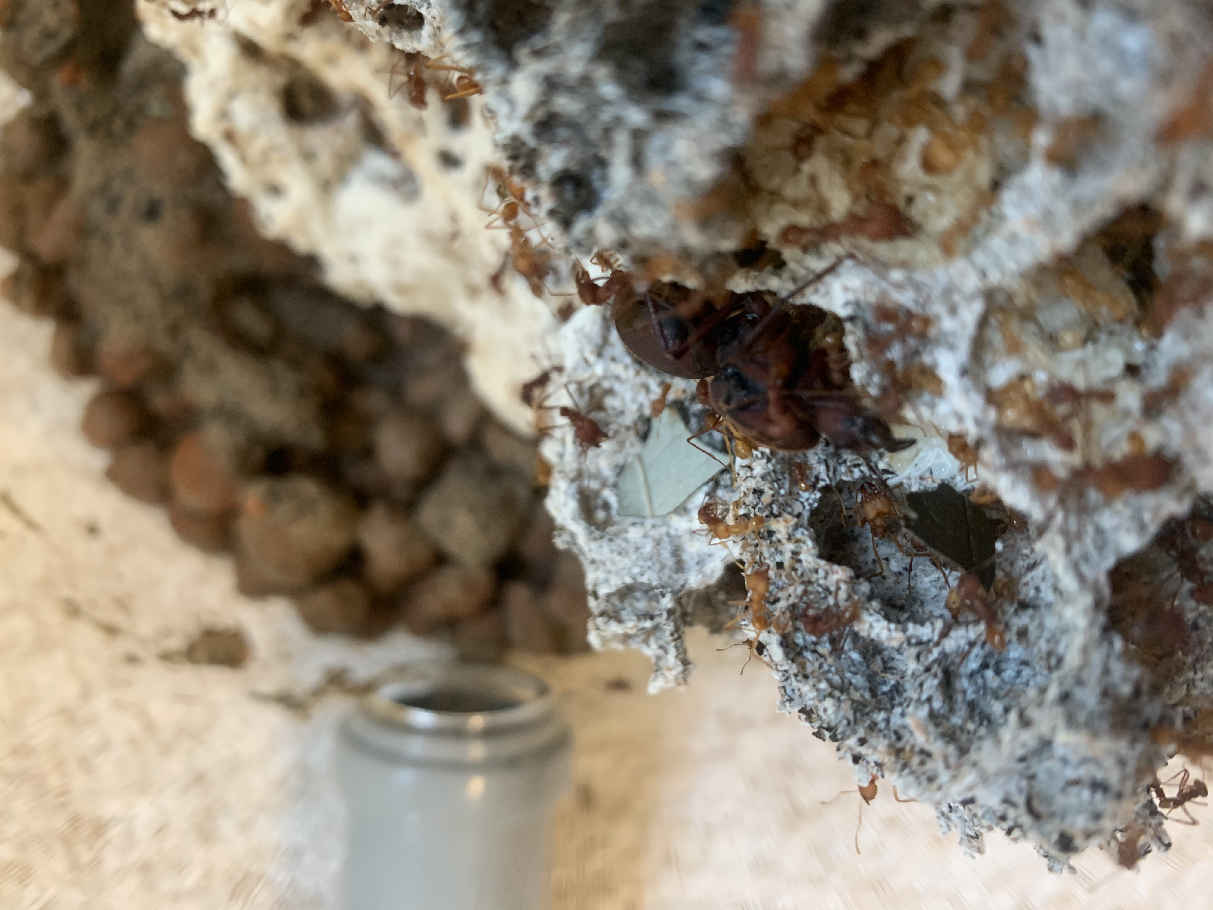 Meine Atta entwickeln sich wie ich finde prächtig und es gibt kaum Probleme. Die Aktivitäten der Ameisen sind meist in der Dämmerung/Nacht, daher kann ich sie selten beobachten, ohne sie zu stören.