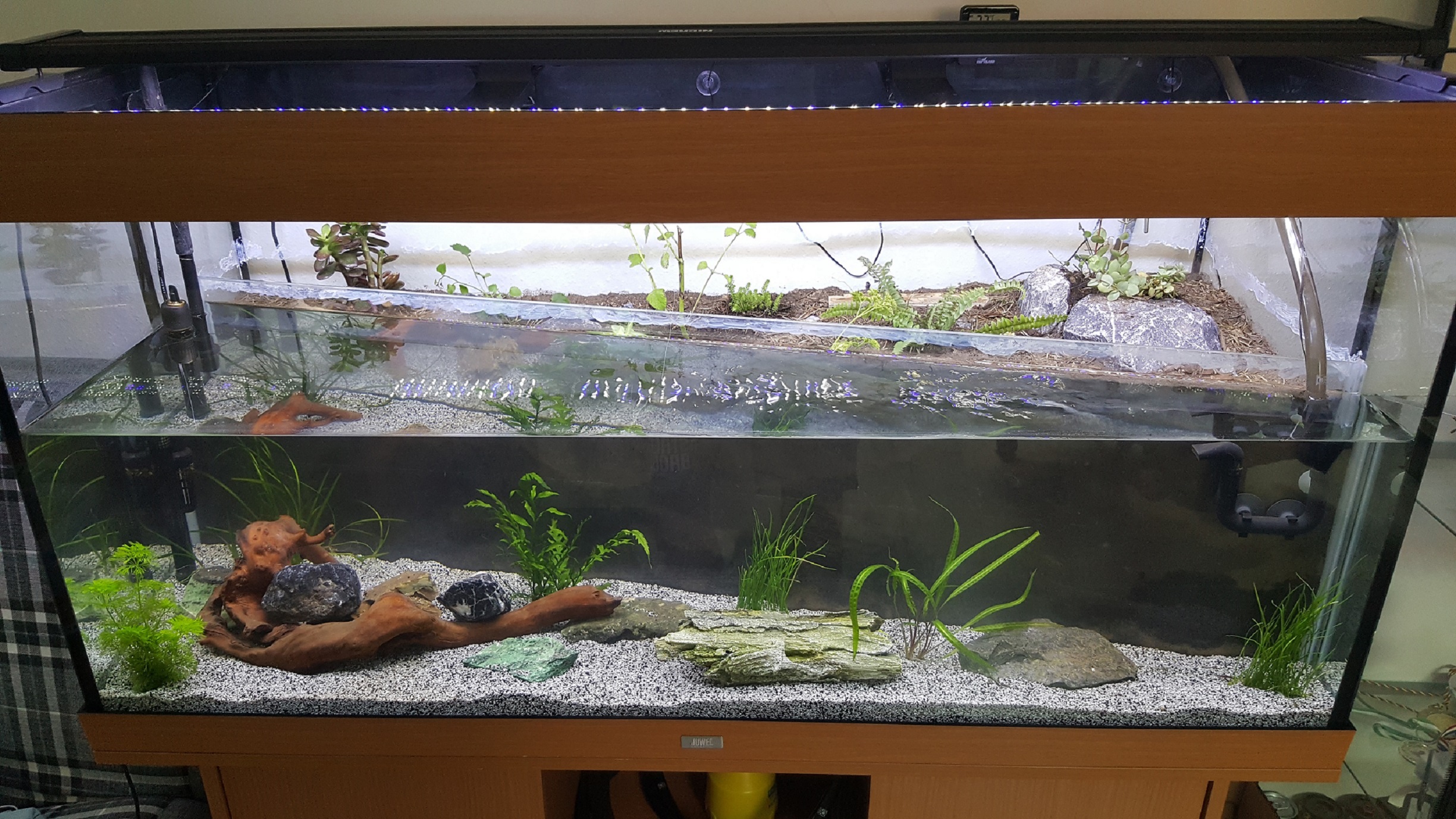 ich möchte mir ein Paludarium, also teils Terrarium, teils Aquarium, als Zuhause für meine kleine neu erworbene Kolonie Camponotus japonicus einrichten. Ich hatte dies schon mit einer Kolonie Camponotus cf. turkestanicus vor, wozu ich schon einen Haltungsbericht gestartet habe, leider ist die
