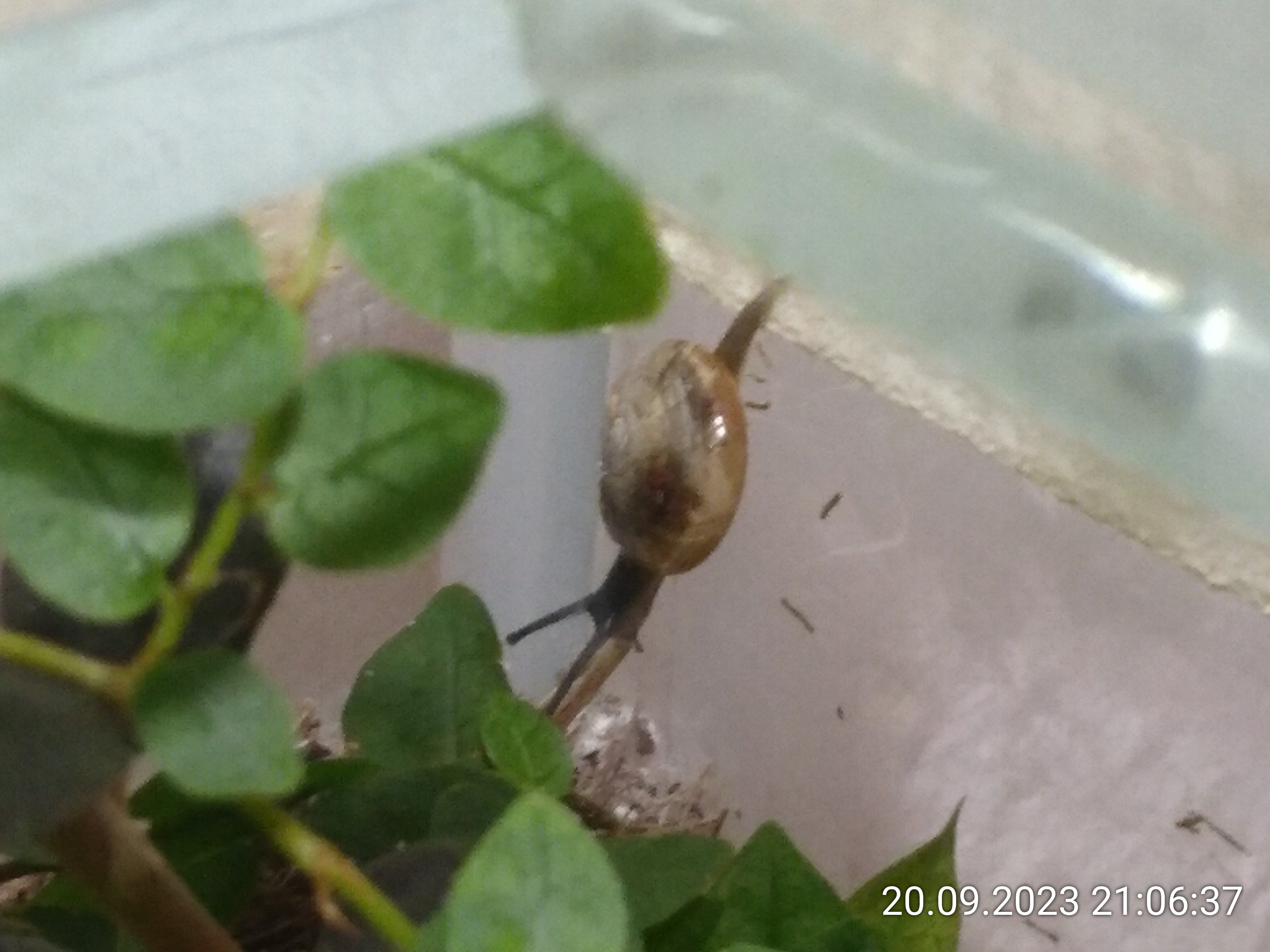 Und damit zu ihren Mitbewohnern. Habe die groĂe Schnecke mal wieder gesehen. Die kleineren finde ich regelmĂ€Ăig am Deckel.