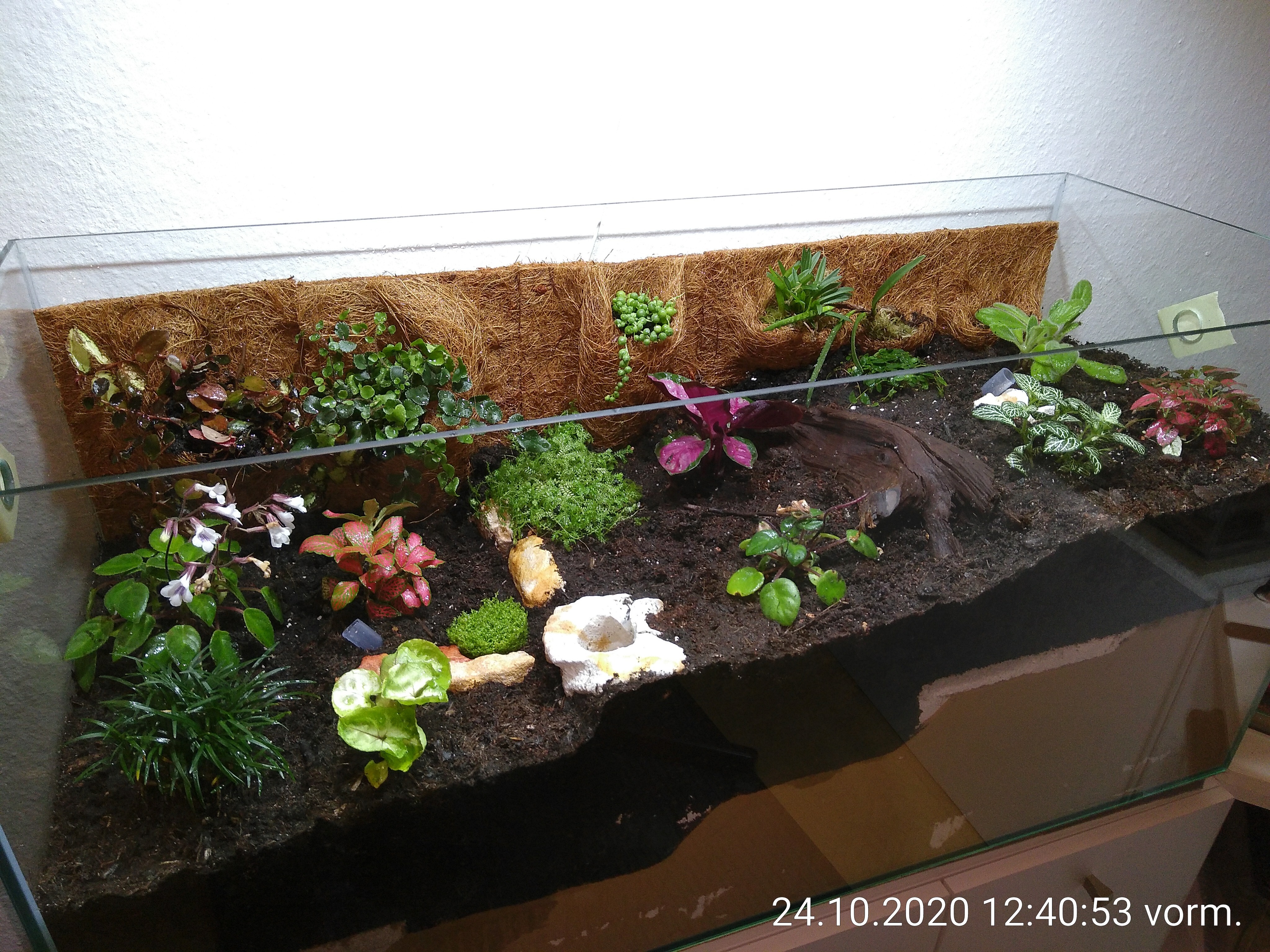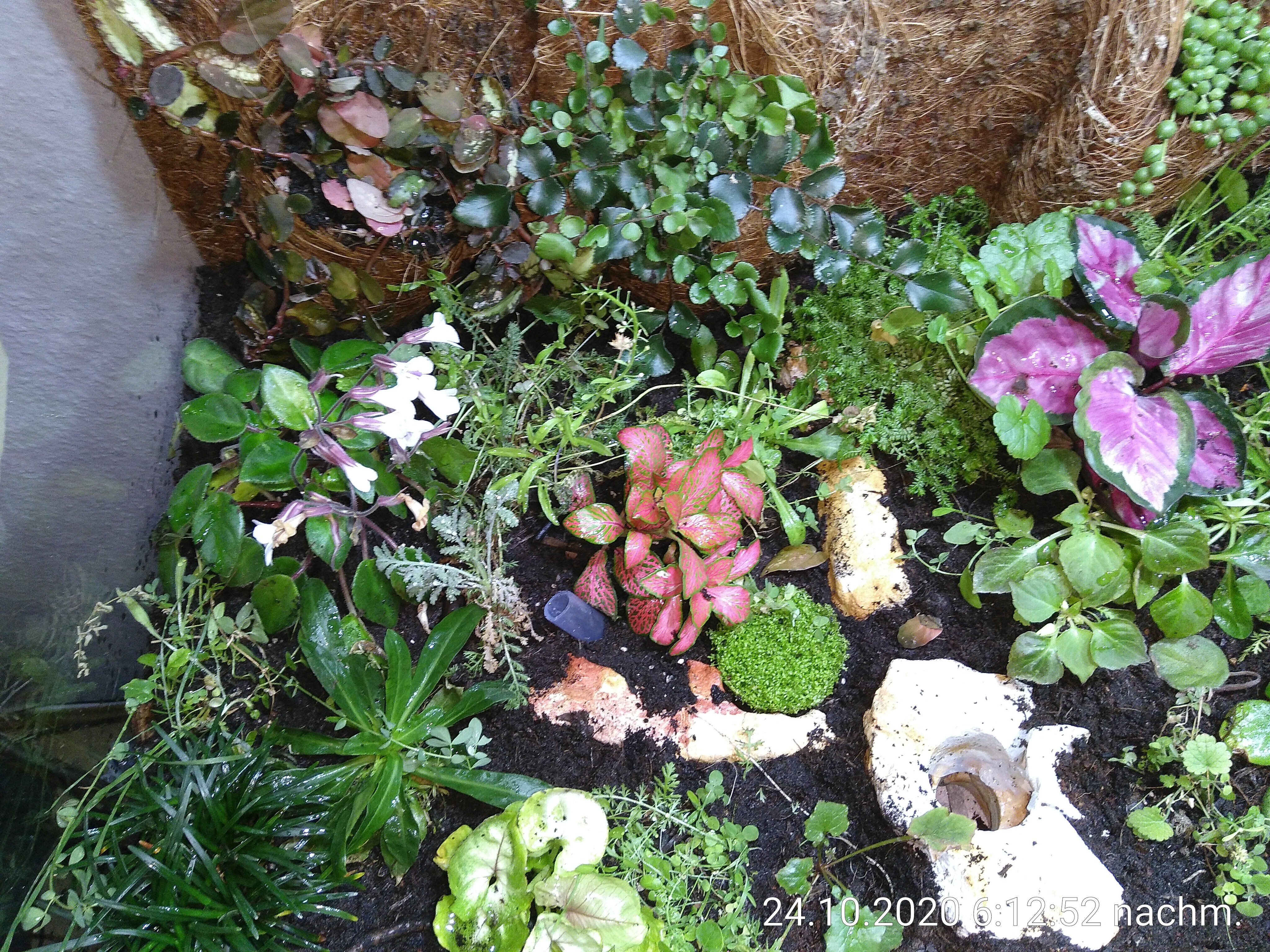 Aus dem hübschen Garten ist ein wilder undurchdringlicher Dschungel geworden. Von der braunen Kokosmatte an der Rückwand ist fast nicht s mehr zu sehen. Oder auf biologisch: Wer schneller wächst, bekommt mehr Licht und bleibt. Und: Wem die Bedingungen nicht passen, der soll gehn!