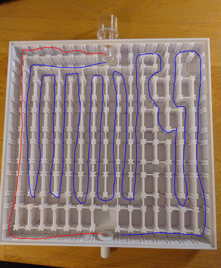 Ich hab verstanden, was du meinst. Sind sie ohne Irritation durch die alte Spur schneller am Ziel? Dafür wären dann vier Durchläufe und drei Reinigungen nötig. Was glaubst du, wie ich das reinigen soll? Mit Essigwasser und Zahnbürste? Manche Wände sind so locker, dass sie beim Umdrehen rausfallen und zum Ausspülen und Trocknen wird sich das nicht vermeiden lassen. Ich muss also nach jeder Reinigung auch noch wieder den Ausgangszustand herstellen. Das könnte ein Advents-Lockdown-Projekt werden.