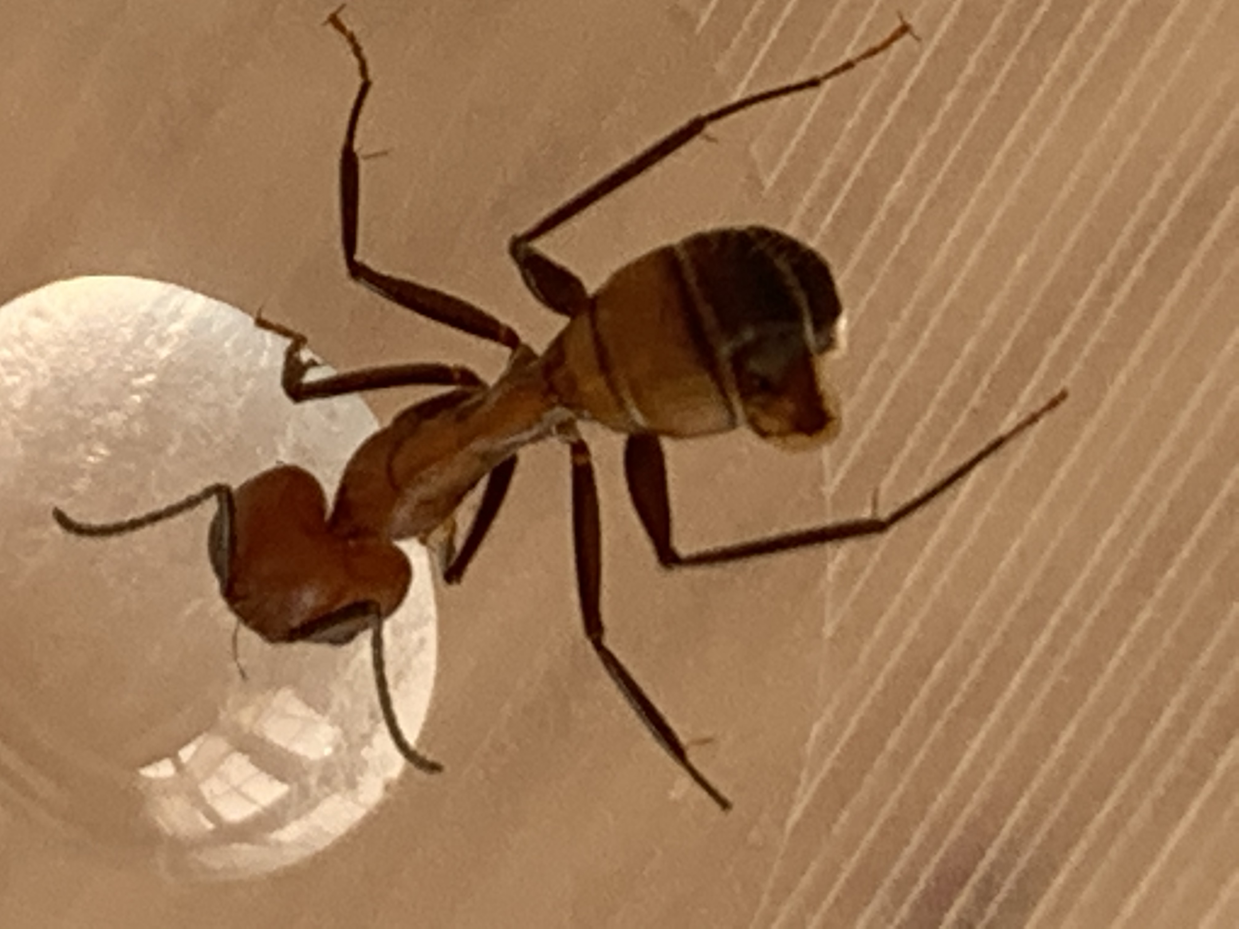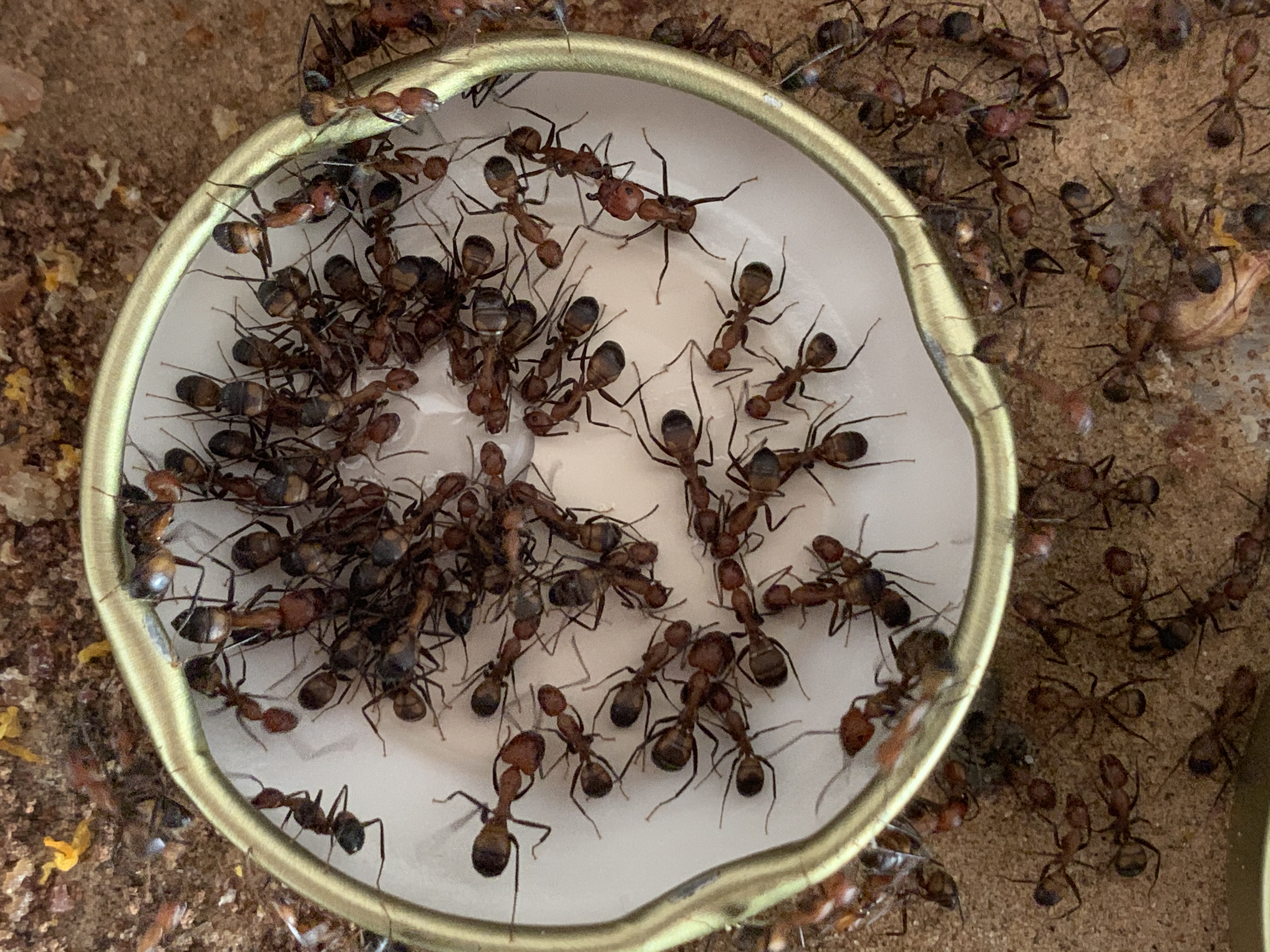 Ich habe eben meinen Camponotus nicobarensis auf einen kleinen Deckel zwei Verschiedene Tropfen gegeben.