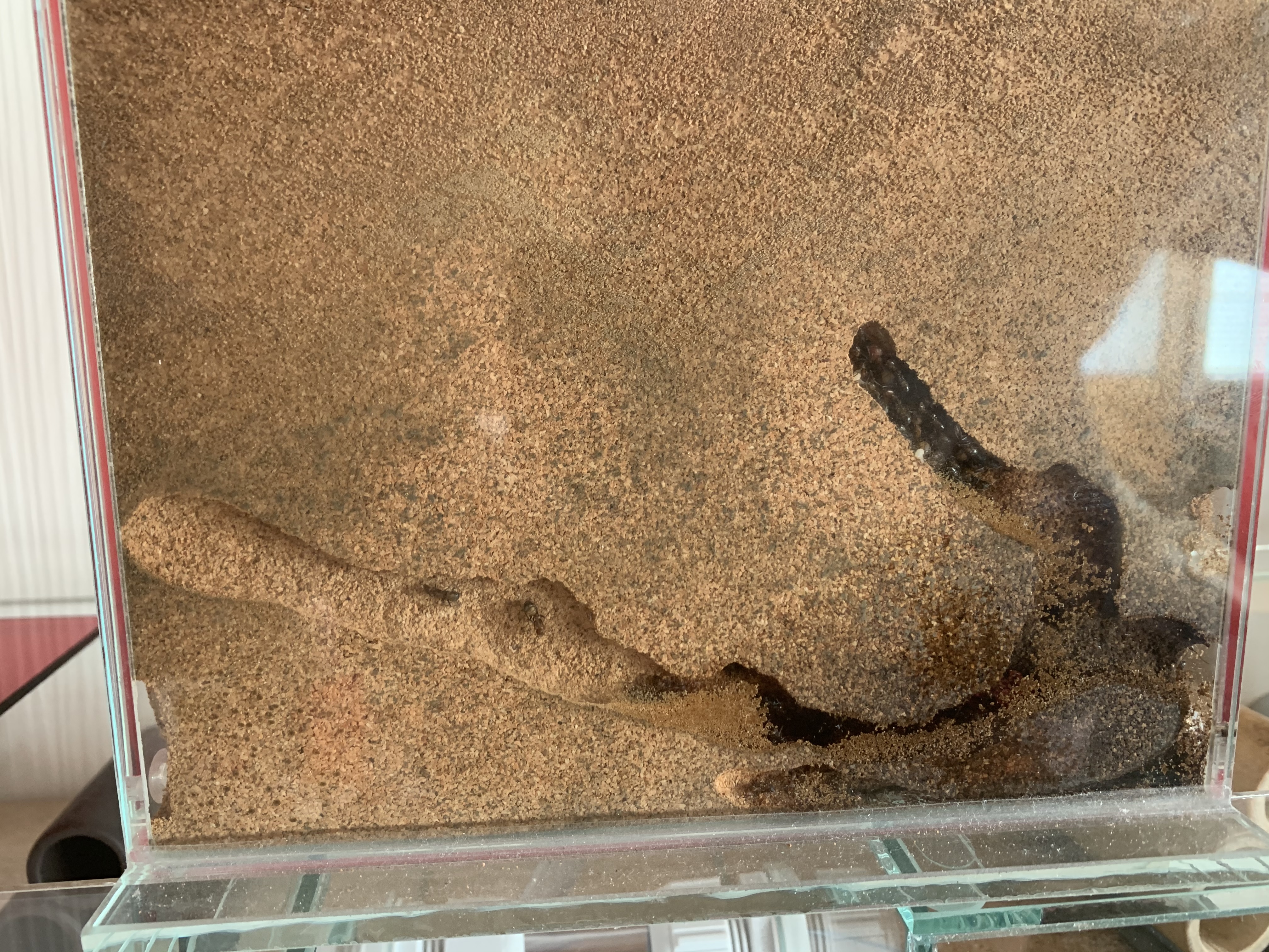 Wie ihr unschwer erkennen könnt graben meine Camponotus nicobarensis, sie sind also stetig (im Hintergrund/Versteckten) am Graben!