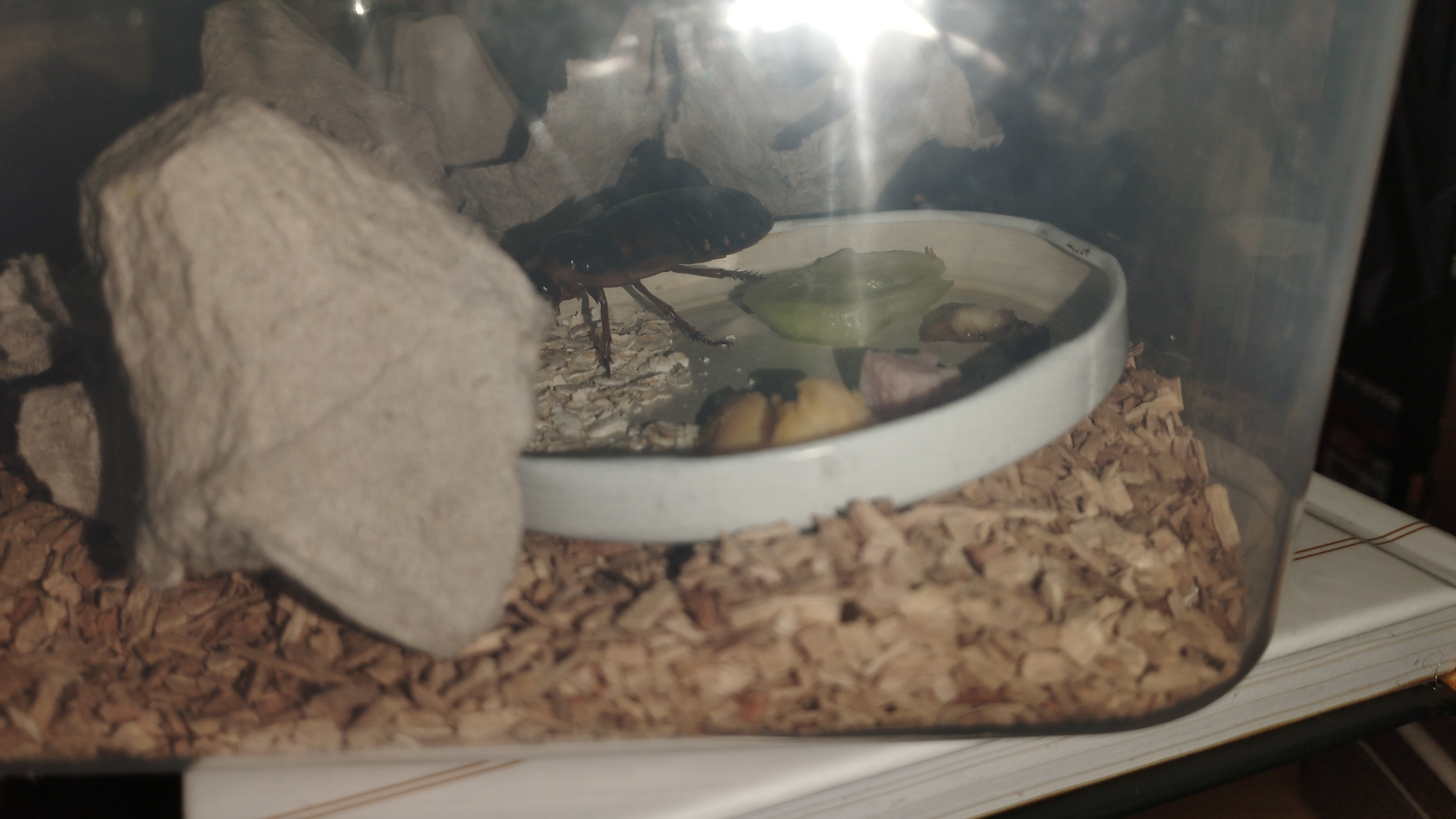 - Habe es sogar Mal geschafft, die Schaben bei der Nahrungsaufnahme abzulichten. Wenn es dunkel wird, trauen sie sich schon raus :D