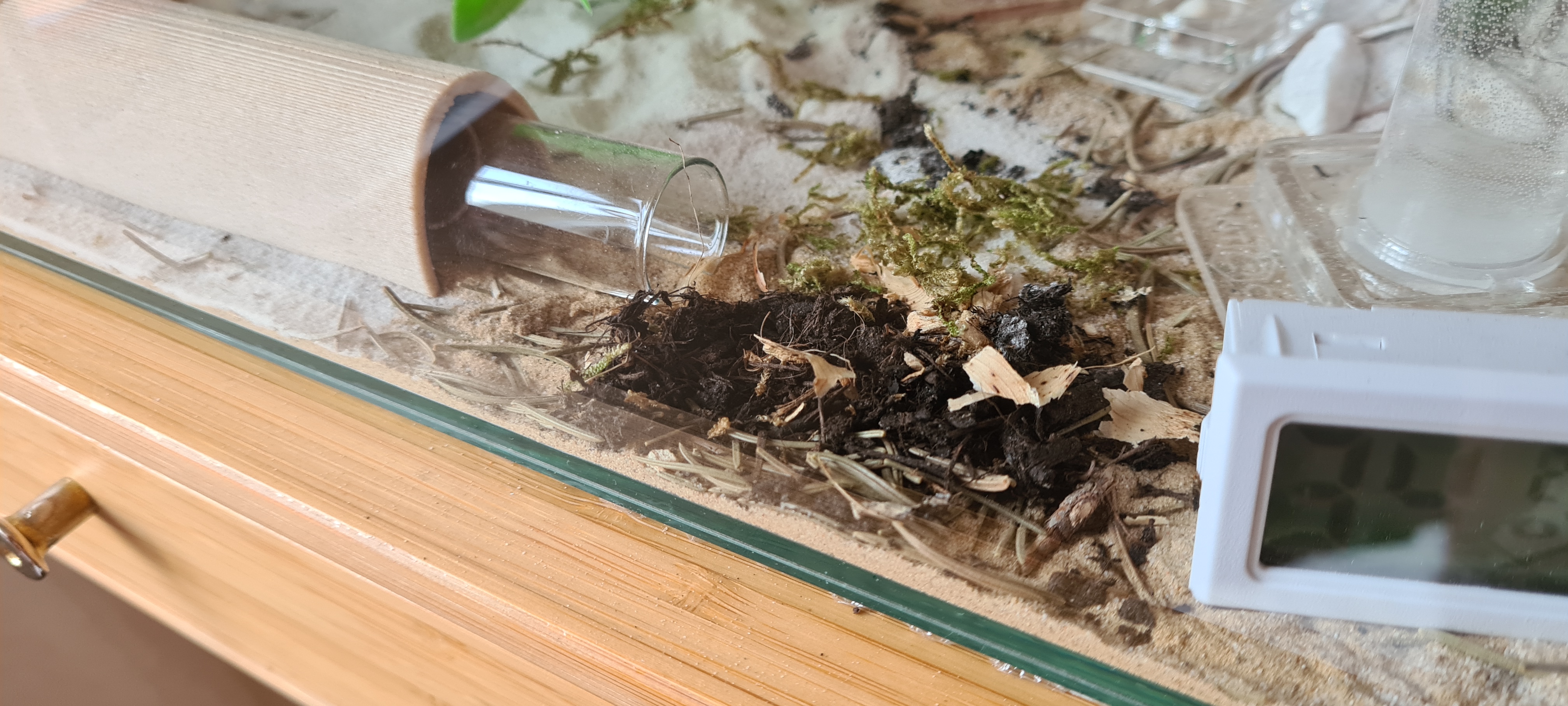 Diese Phase, wenn nur wenige Arbeiterinnen vorhanden sind und man hin und wieder mal eine beim vorsichtigen Erkunden erwischt, ist mit das Beste an der Ameisenhaltung. Später, wenn sie viele sind, mag es zwar mehr Action geben, aber es gibt für mich kaum was besseres als ein paar Pygmäen beim Eintragen einer zu großen Fliege zu beobachten.