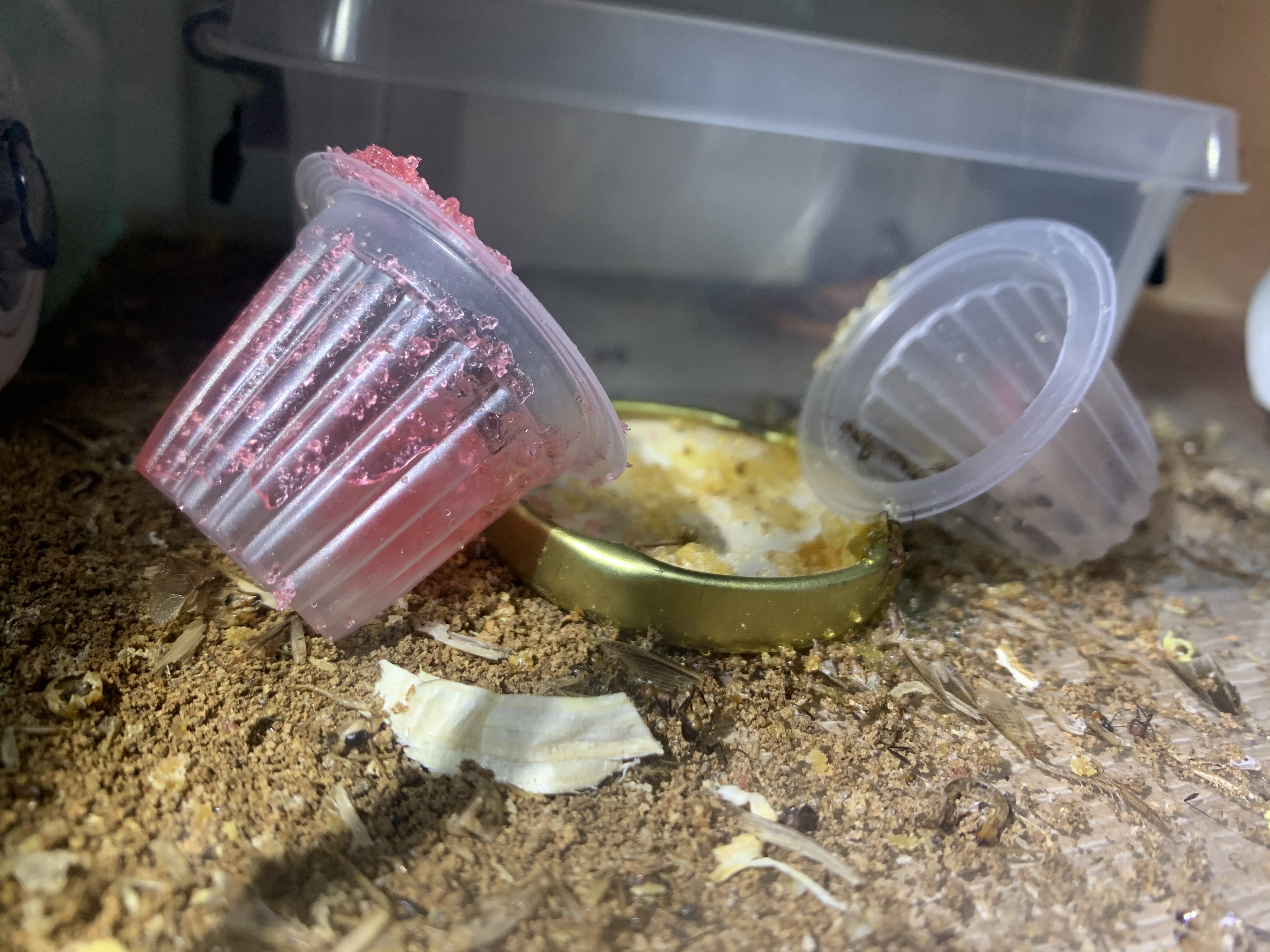 Ich habe den Camponotus nicobarensis am 23.12.2020 ein zusätzliches gelbliches Jelly hingelegt, dieses mögen sie lieber als das rötliche (rechts) welches schon ca.2Wochen drin liegt.