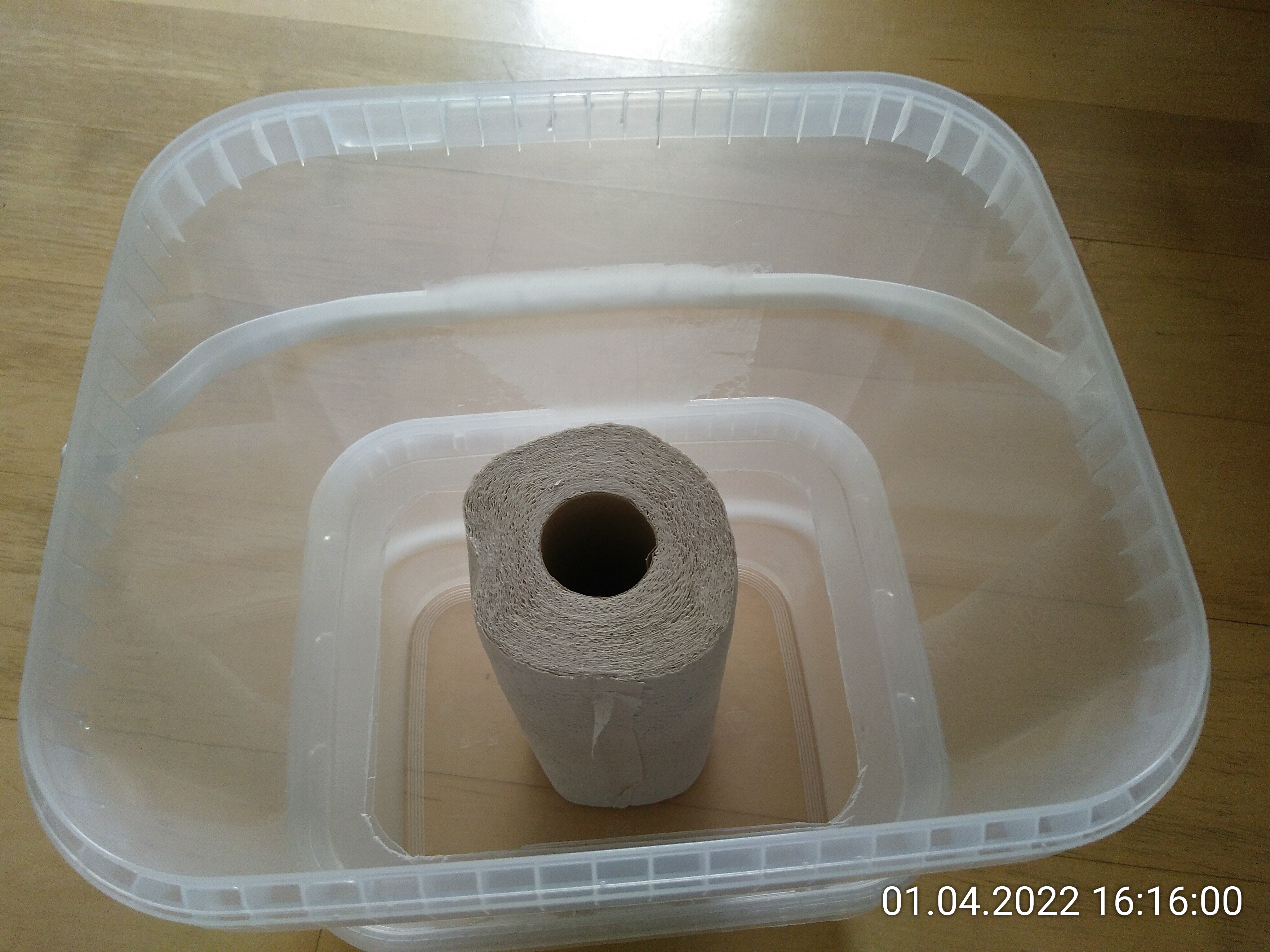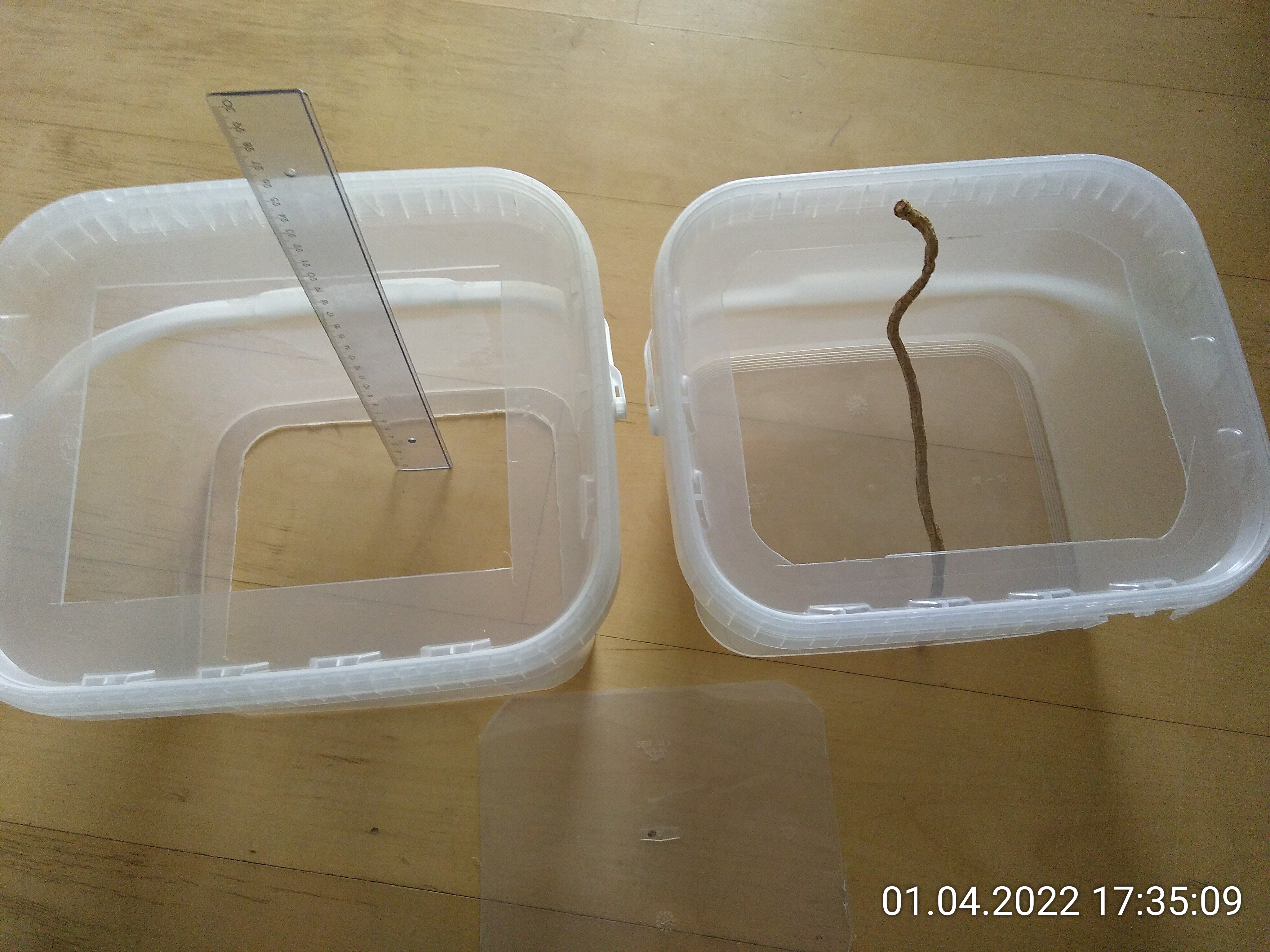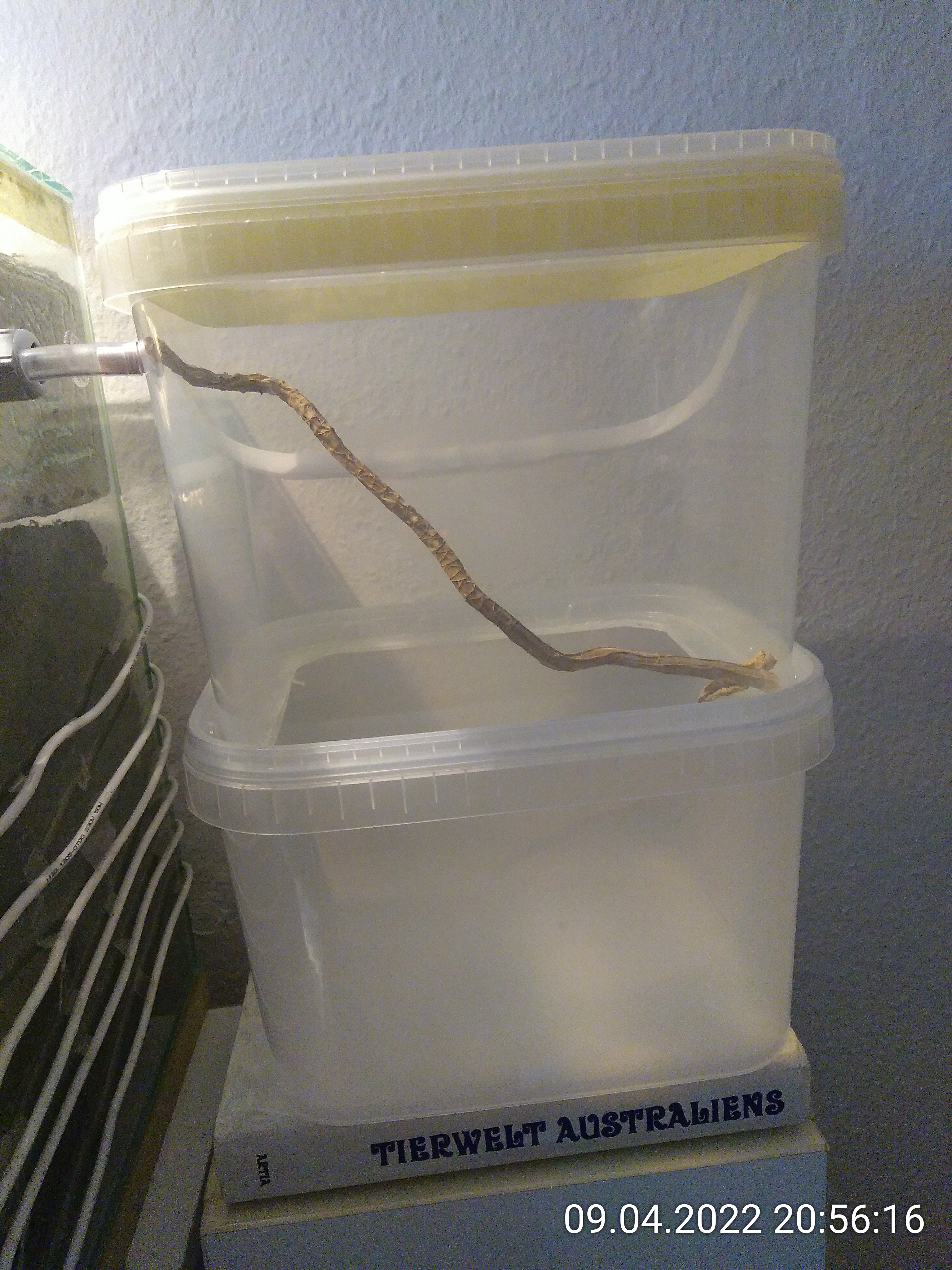 Das erste Mal in diesem Jahr. Zum Einfangen nutze ich eine Tupperdosenfalle. Ich lege den Deckel mit einem Köder aus Obst o.ä. auf den Rücken und die Dose oben drauf. Dann lege ich etwas zwischen die beiden Teile, um den Deckel an einer Seite leicht anzuheben. Nach einer Weile werden sich einige am Köder einfinden. Dann muss man, ohne Luft zu verwirbeln, vorsichtig die Stütze wegziehen und schnell den Deckel zudrücken. Dann kurz ins Gefrierfach und fertig ist ein kleiner Snack für Zwischendurch. Morgen mache ich noch ein bis zwei Durchgänge und dann sind sie wieder weg