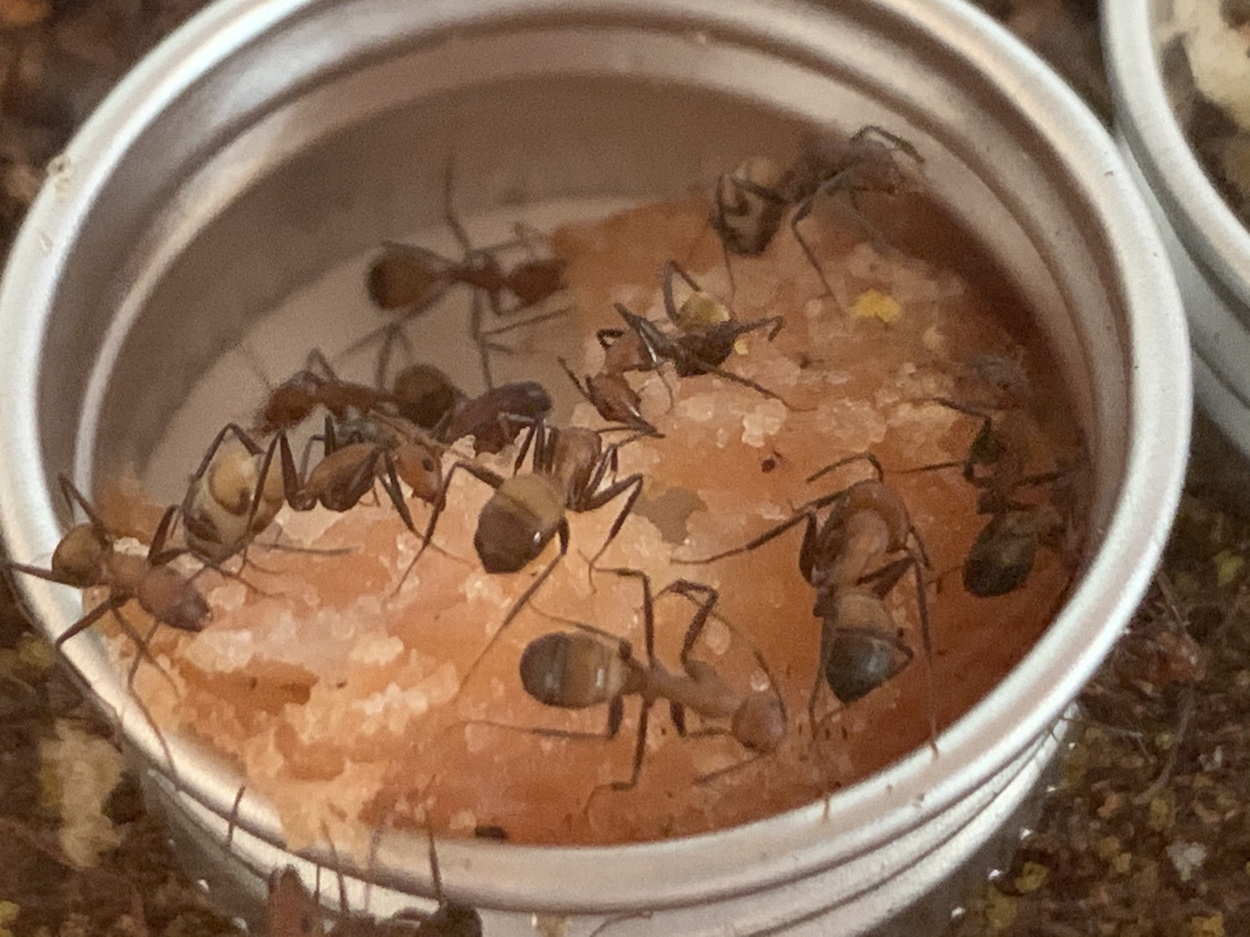 Die wollten in meinen Augen nur das Öl wegputzen. Ob es den beiden Ameisen geschadet hat kann ich nicht beurteilen, denn in den Arenen tummeln sich zuviele Ameisen, den Überblick verliert man so zwangsläufig!