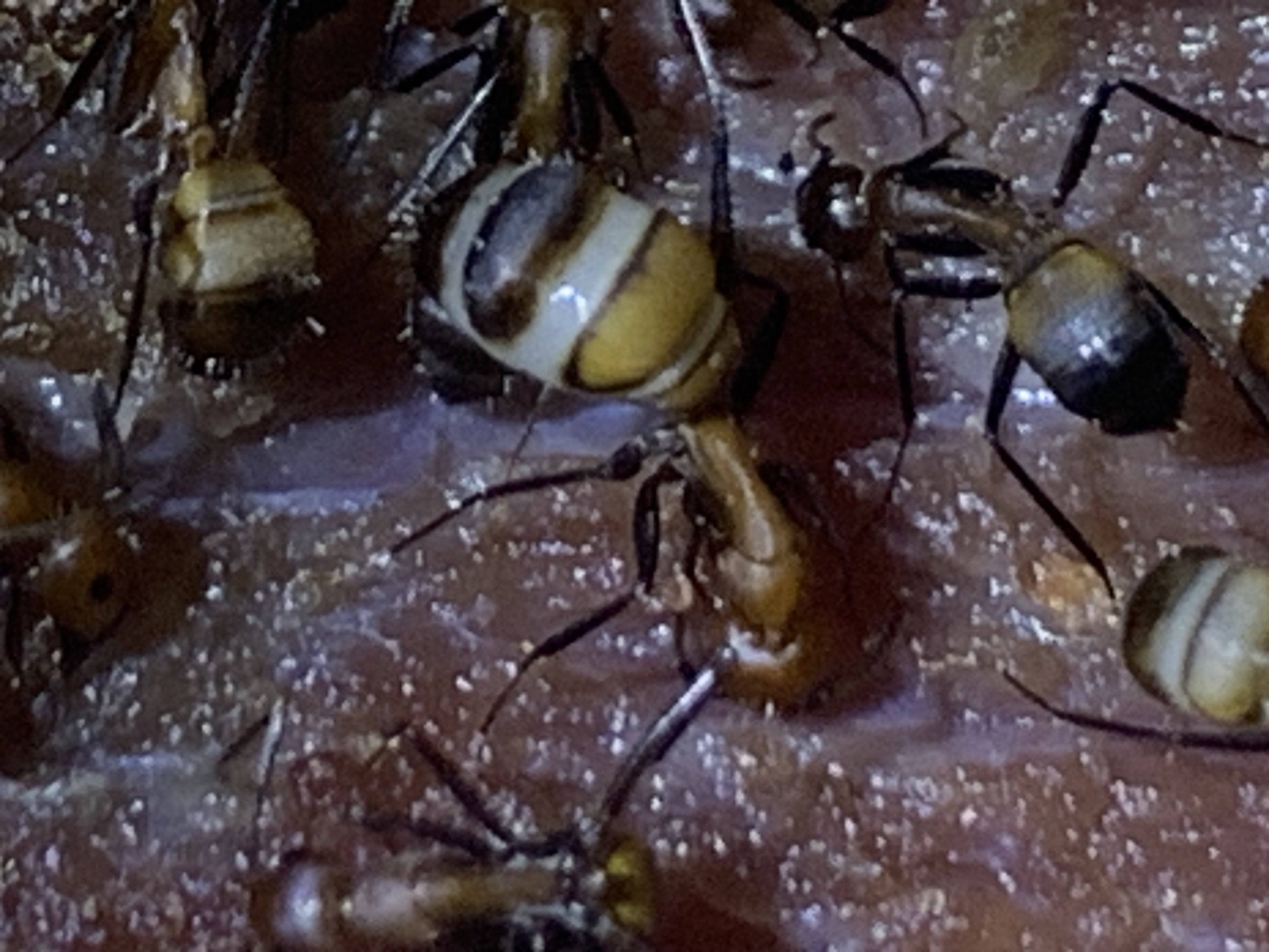Camponotus nicobarensis ist momentan etwas Ruhe eingekehrt. Sie sind zwar nicht in Winterruhemodus, aber weil sie ja seit zwei Monaten nun mehr Platz haben verteilen sie sich besser, darum sieht es auch aus als ob sie alles nur in Ruhe machen!
