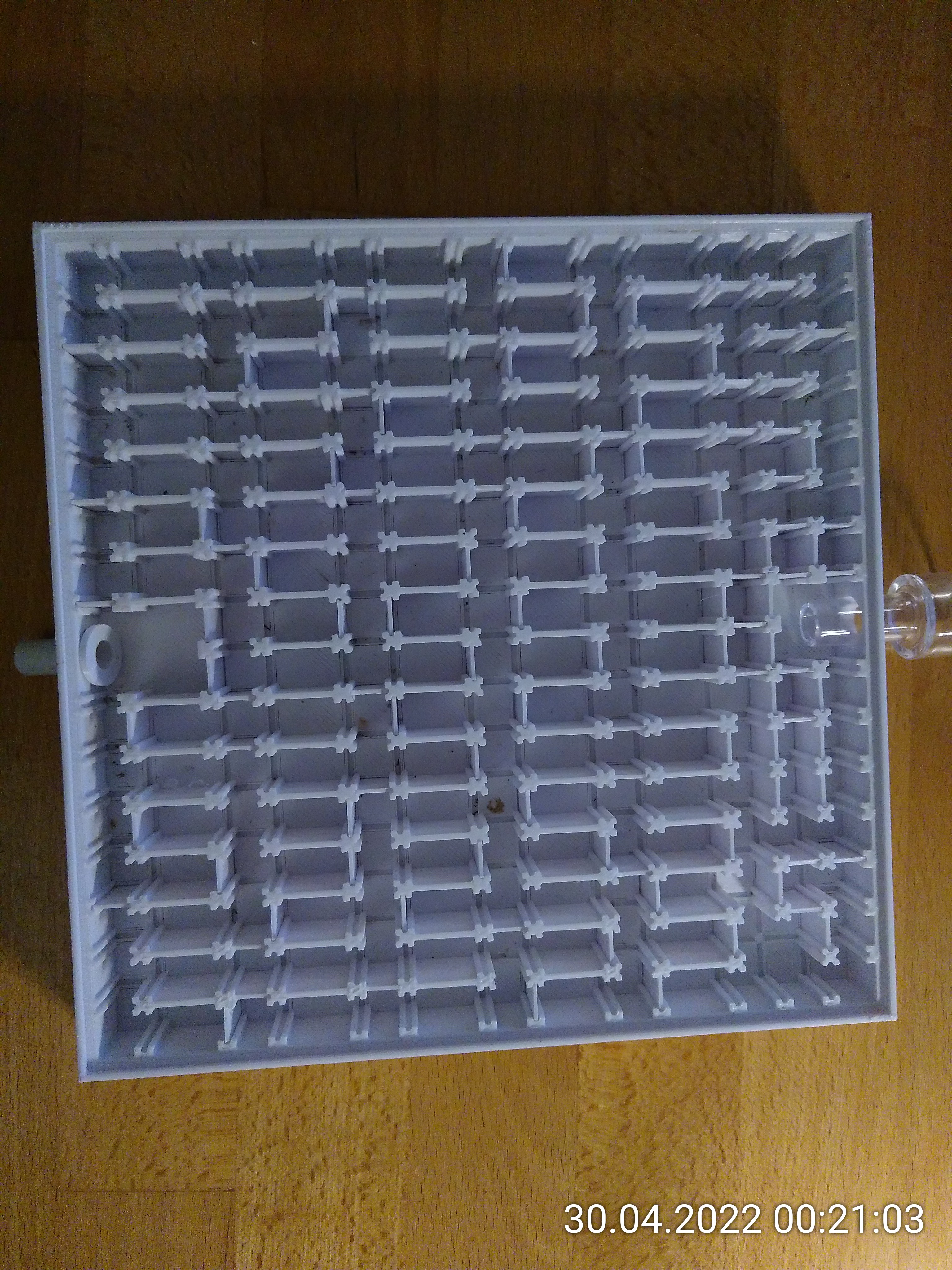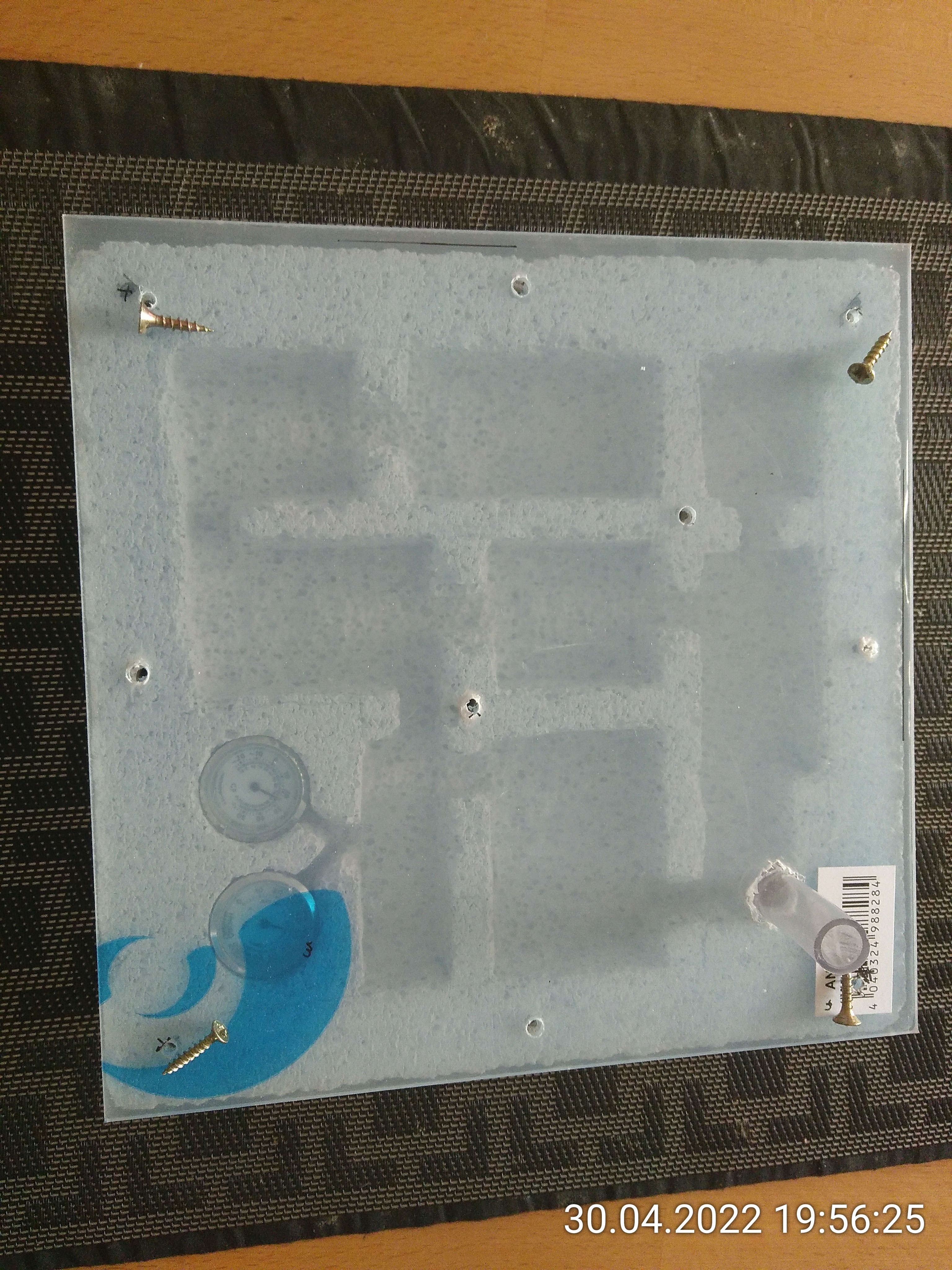 Die Ecke unten links wird der Eingang. Den Bereich muss ich noch ausarbeiten. Der Rest ist quasi fertig. Der nächste Schritt ist die Bearbeitung der Plexiglasscheibe. Bohren also. Danach kann ich eigentlich schon alles zusammenbauen und testen.