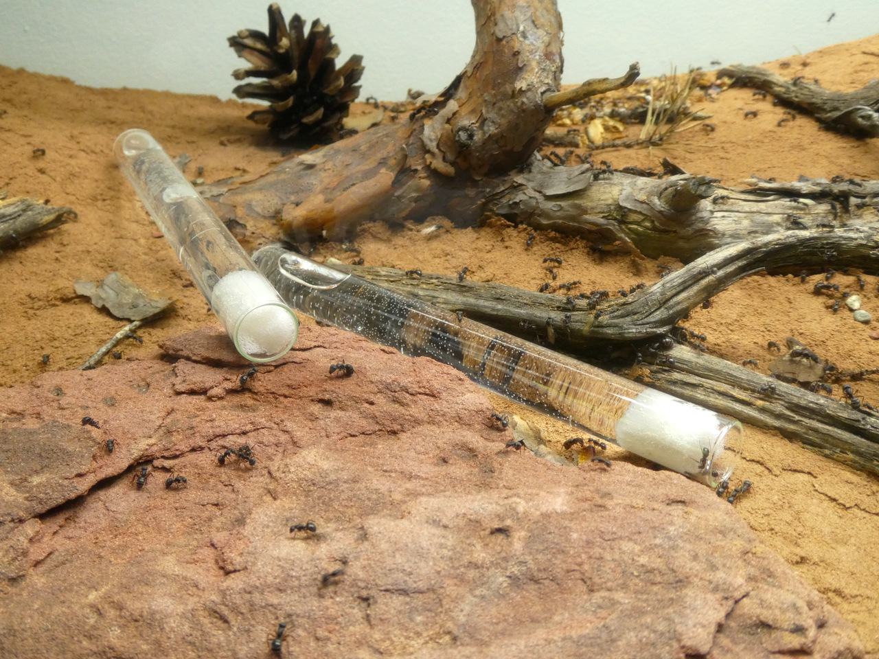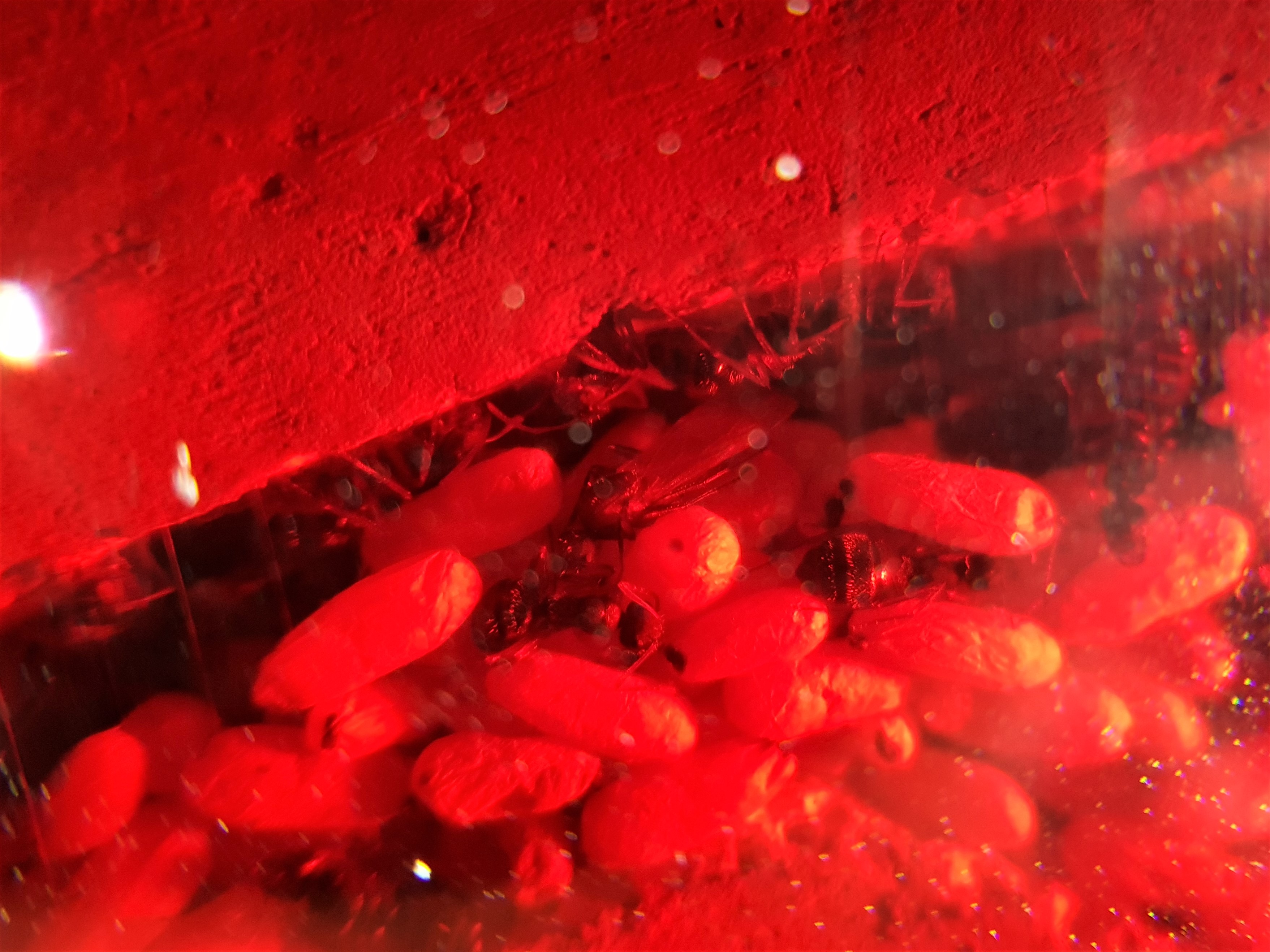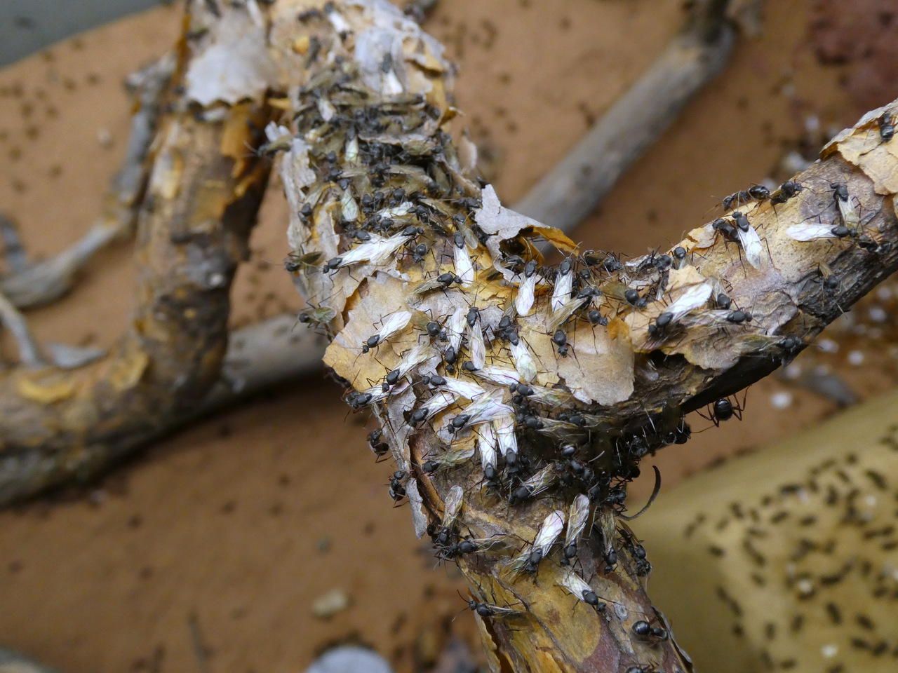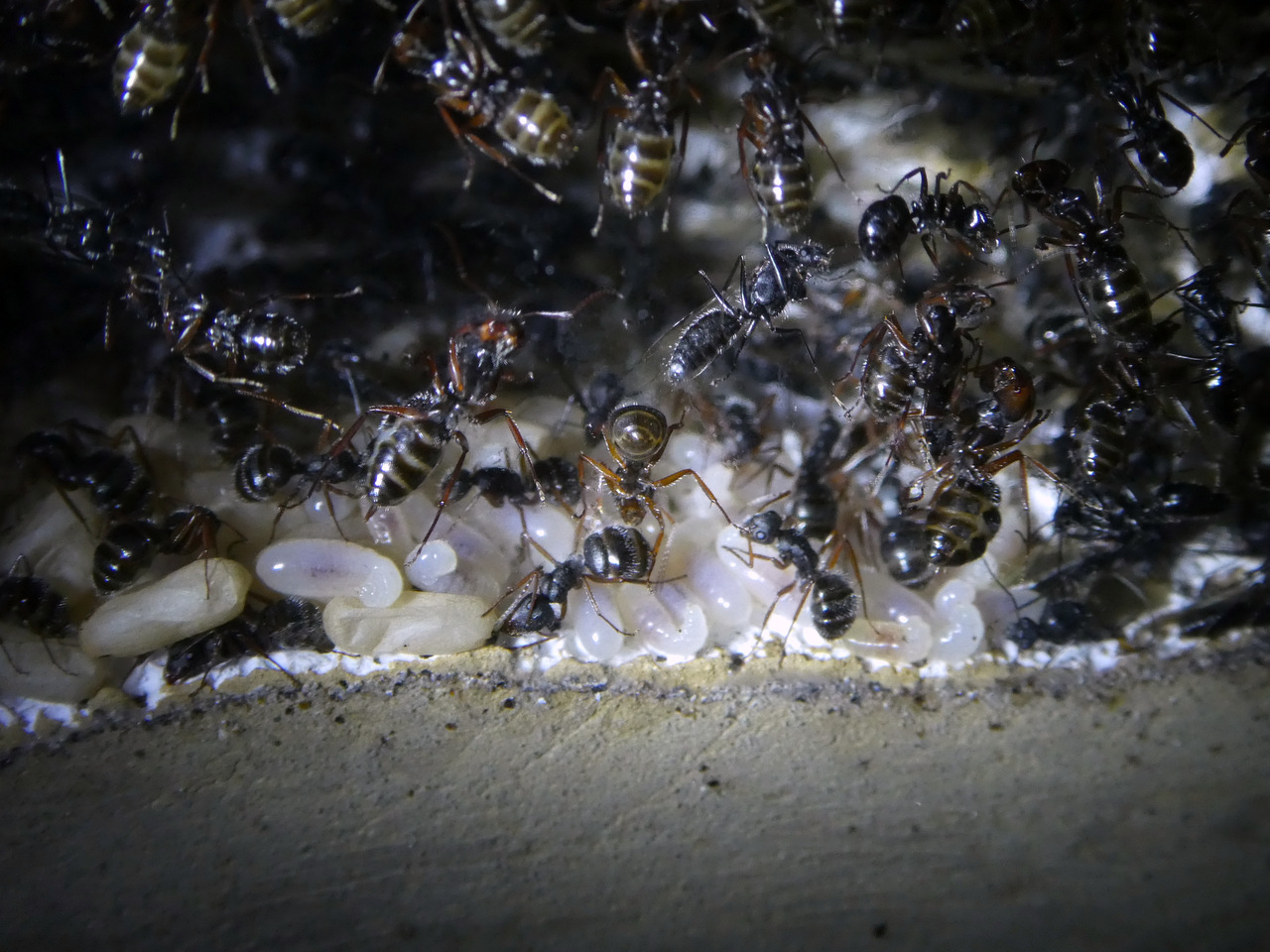 Im Hintergrund ein paar wütende Arbeiterinnen in Angriffshaltung! Sehr temperamentvolle Ameisen.