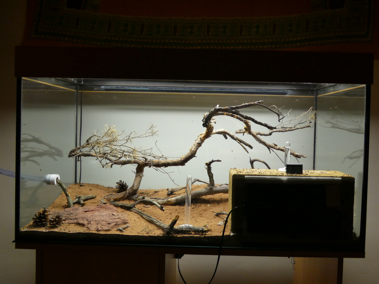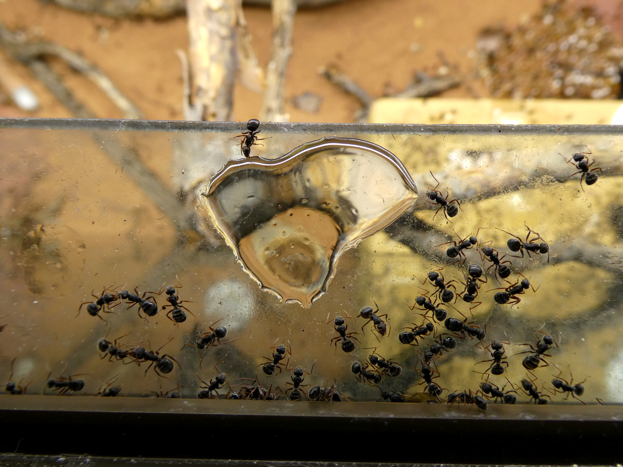 Löffel und einem Stück Papier den Müll raus, verfrachtete zwischendurch Ameisen aus dem Behälter wieder zurück ins Becken und nach