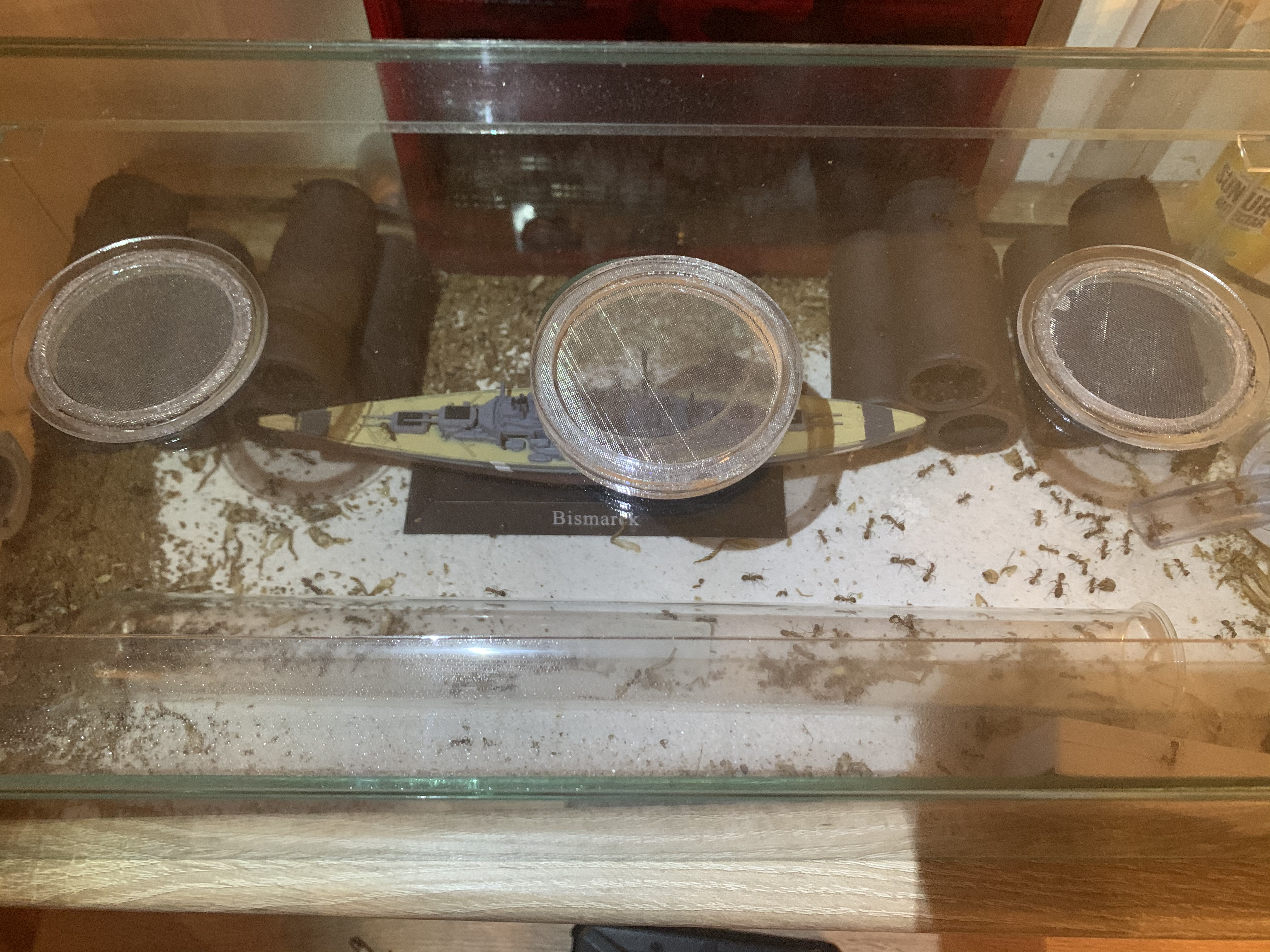 Leider kann ich meiner Schwigermutter so nicht meine Ameisen zeigen, ich denke ich wĂŒrde ihr bestimmt jede einzelne von meinen Camponotus nicobarensis vorstellen, nur damit ich vom allgemeinen Gemecker ablenken könnte! Meine Schwiegermutter hat die Ameisen noch nie gesehen. Sie weiß, das ich Ameisen halte (sie sagt zwar immer „zĂŒchte“, ist ihr aber nicht beizubringen, dass man Ameisen nur hĂ€lt und nicht zĂŒchtet) aber welches Ausmaß das nun angenommen hat weiß sie noch nicht, sie waren letztes Mal im Mai 2019 hier bei uns in der Schweiz und da hatte ich noch keine Ameisen!