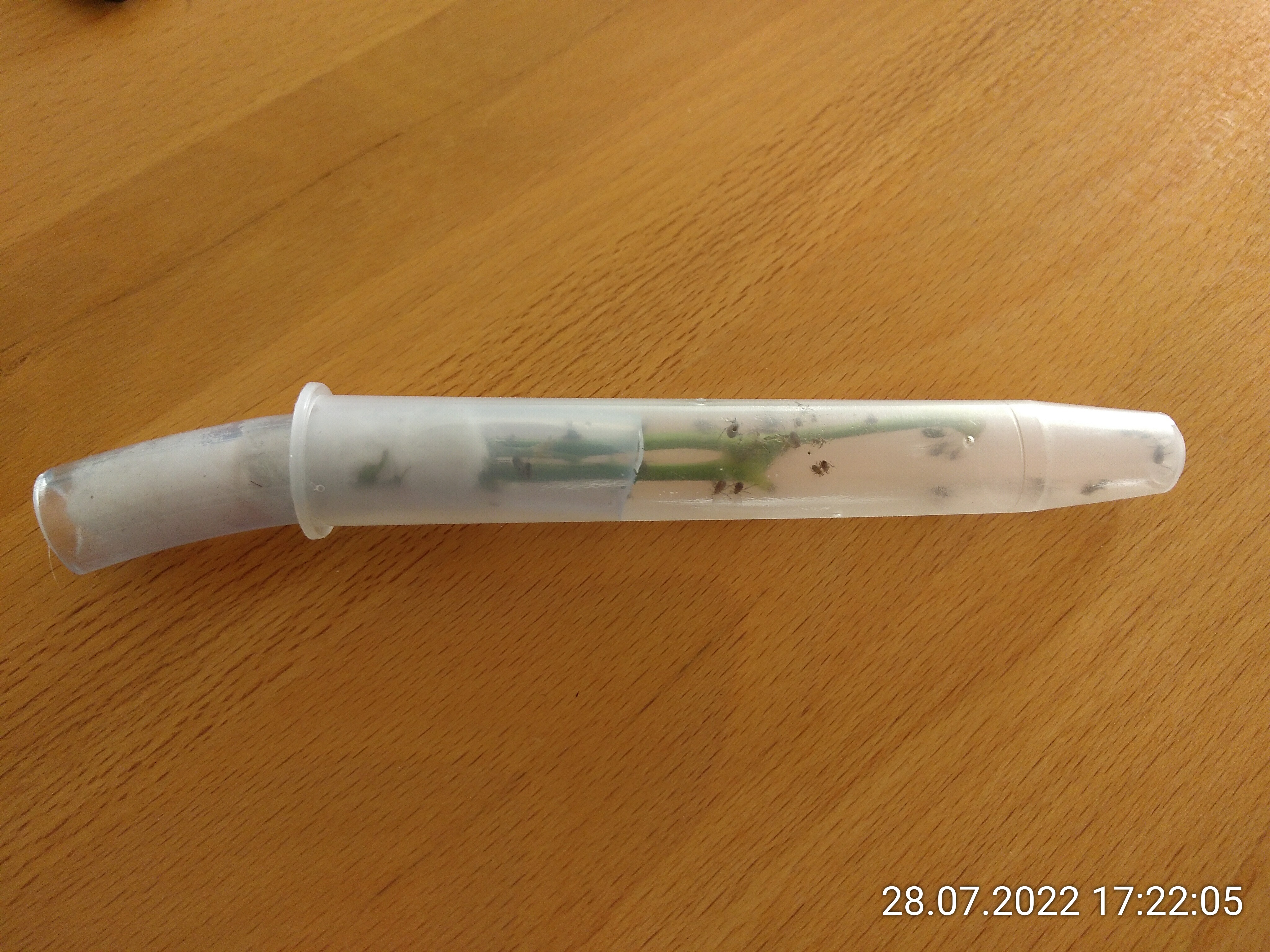 Sehen die 4 Läuse nicht äußerst "vollständig" aus? So gar nicht zerquetscht... Unter der Lupe war dann schnell klar, mindestens eine davon bewegt sich noch. Darum kümmere ich mich dann im Anschluss. Um sie nicht zu verletzen, plane ich, sie mit ein paar Tropfen Wasser herauszuspülen.