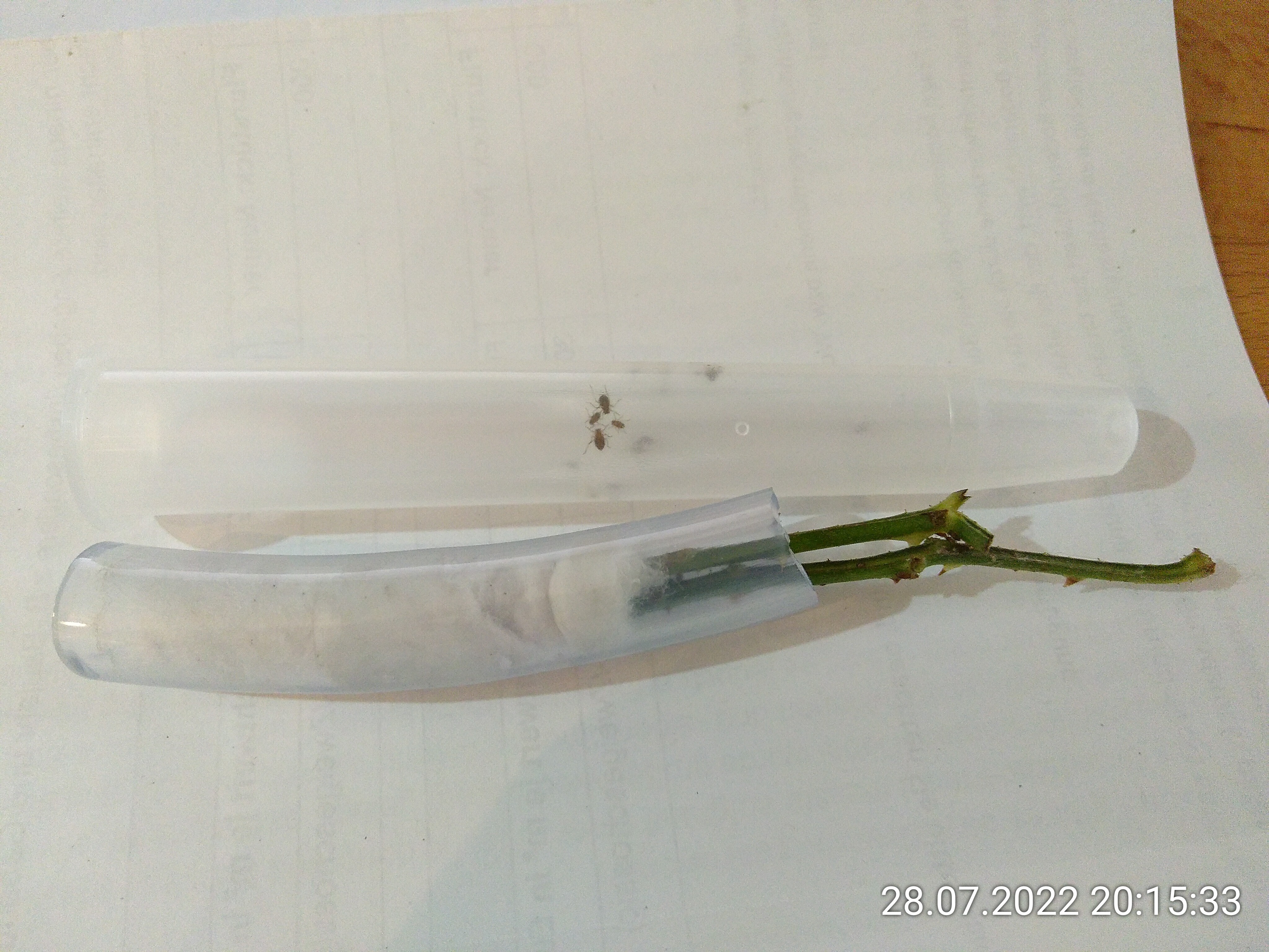 die Läuse sind da! Heute Nachmittag sind sie angekommen. Ich habe gleich die Verpackung geöffnet und die Teile auf die Rose gelegt, mit direktem Kontakt dazu.