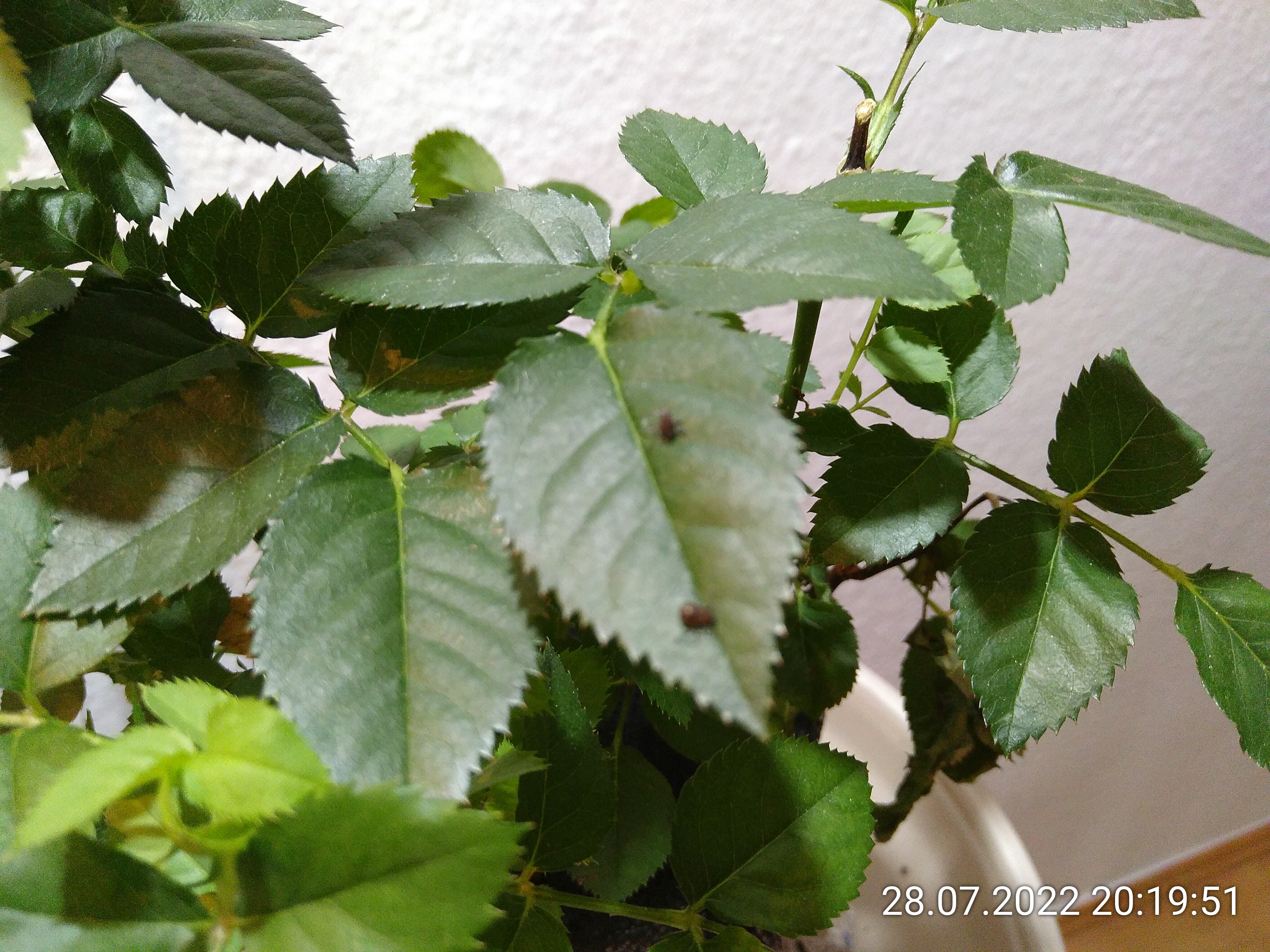 Also, zählen wir doch mal nach. Mindestens 5 sitzen schon unten am Stamm, bzw. wandern in dessen Nähe herum. Vier habe ich auf die Rose gesetzt. Mindestens eine von denen im RG lebt noch. Das sind mindestens 10 lebende Läuse. Plus evtl. die eine von letzter Woche. Die habe ich übrigens nie wieder gesehen. Jetzt lasse ich sie erstmal in Ruhe und hoffe, dass sie sich wohlfühlen. Die Lasius werden auch nicht verhungern oder verdursten, Süßes und Wasser haben sie ja. Sie dürfen gern noch ein bisschen aufpassen...