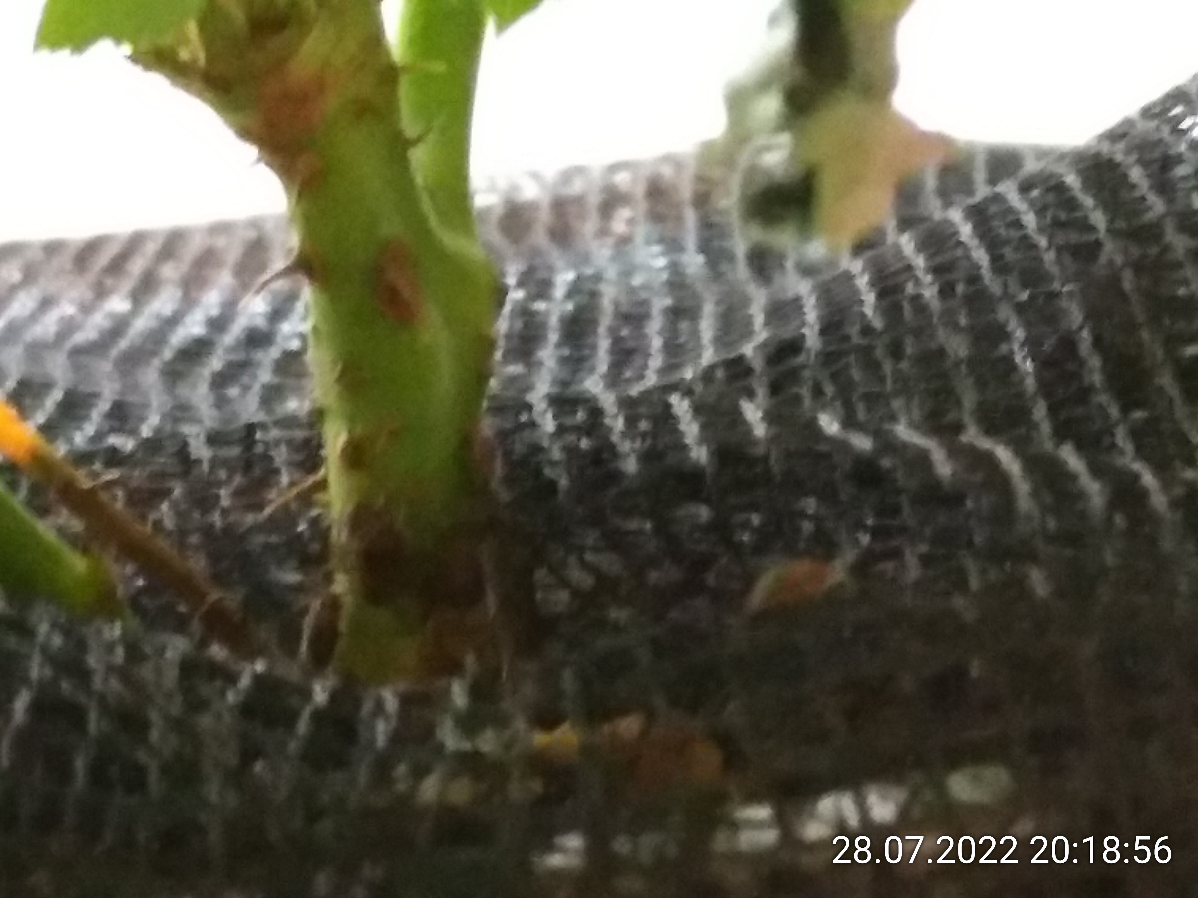 Die Läuse sind mit ein paar beschützenden Ameisen (Lasius niger?) gekommen. So weit ich das erkennen konnte, hat von denen maximal eine nicht überlebt. Eine andere habe ich tot im Wassergraben gefunden. Die restlichen sind "verschwunden". Ich vermute mal irgendwo unter dem Fliegendraht. Für diese kleinen Ameisen ist der kein Hindernis.