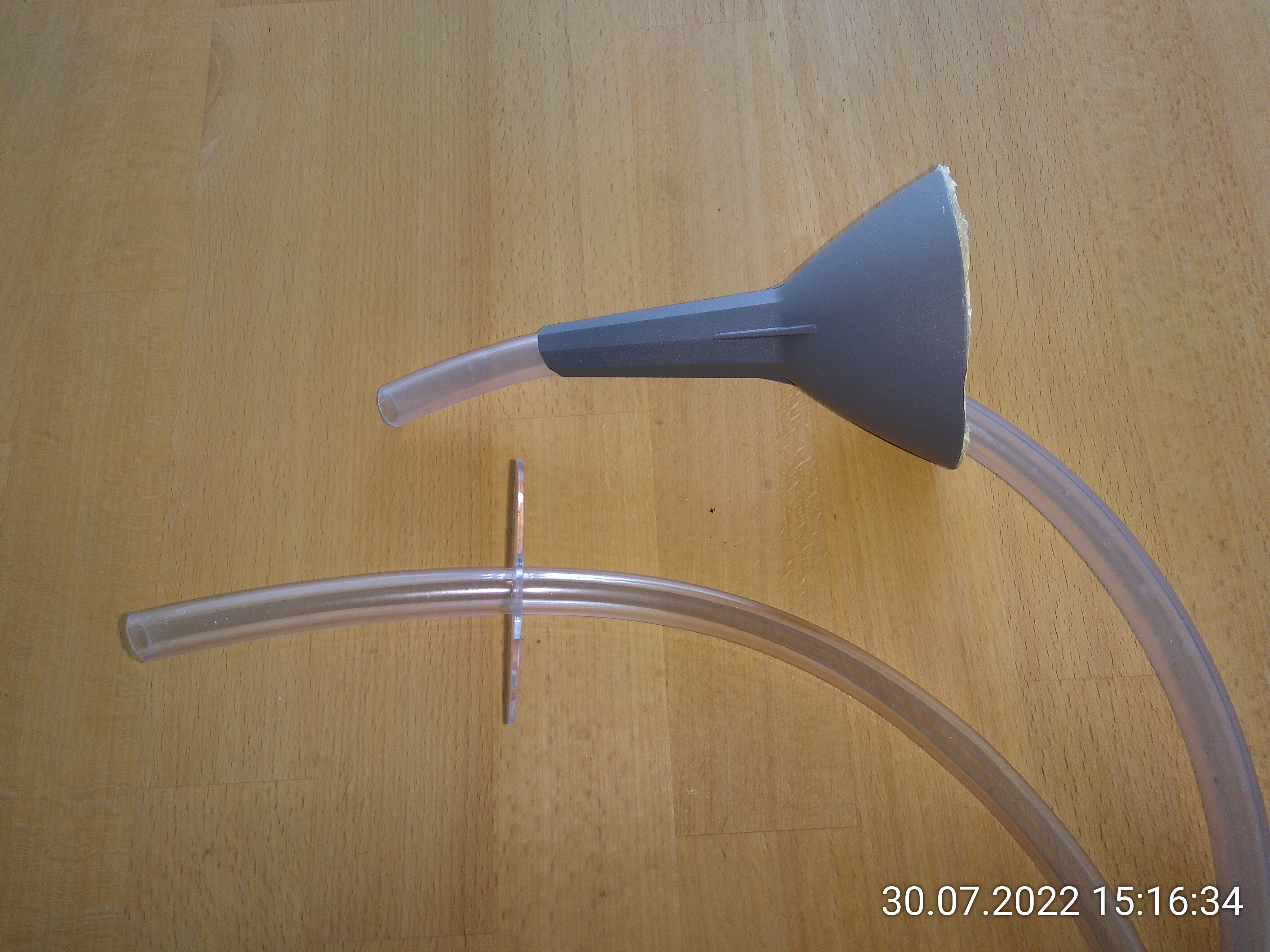 da Joschis Garten in ein paar Tagen bereit für die Nicos ist, habe ich mir nochmal Gedanken über den Zugang per Schlauch gemacht. Der Trichter dürfte zwar funktionieren, blockiert aber auch einen Teil des Lichts und sieht nicht besonders schön aus. Ich glaube, ich habe eine bessere Lösung gefunden.