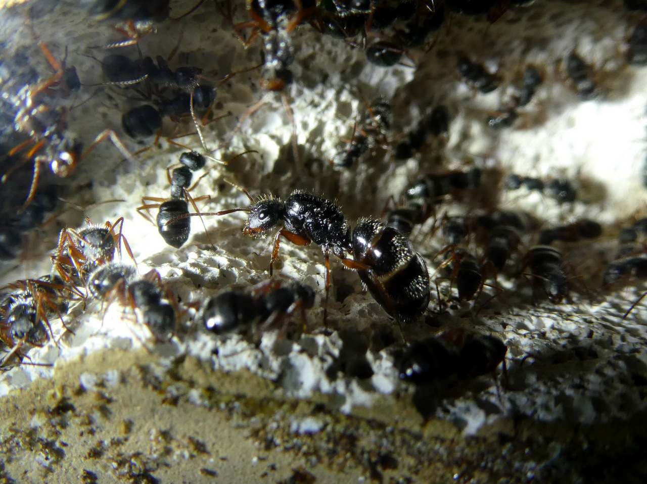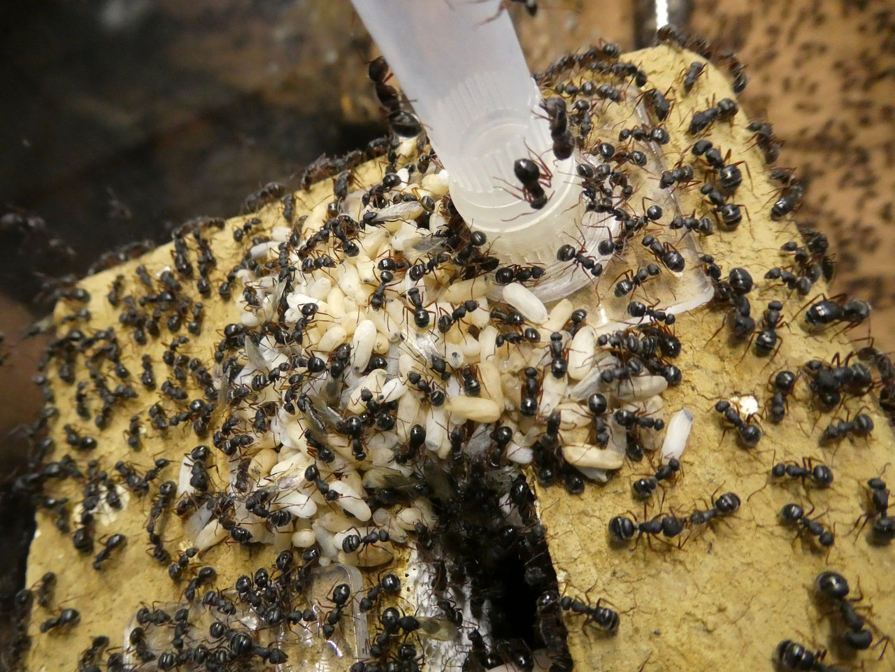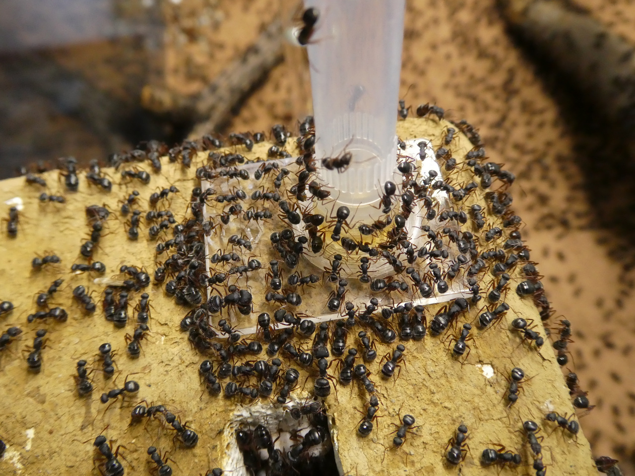Bei der Prozedur kommt richtig zur Geltung, wie aggressiv diese Ameisen (zumindest ab einer gewissen Koloniegröße) sind. Es wird jede Menge Säure
