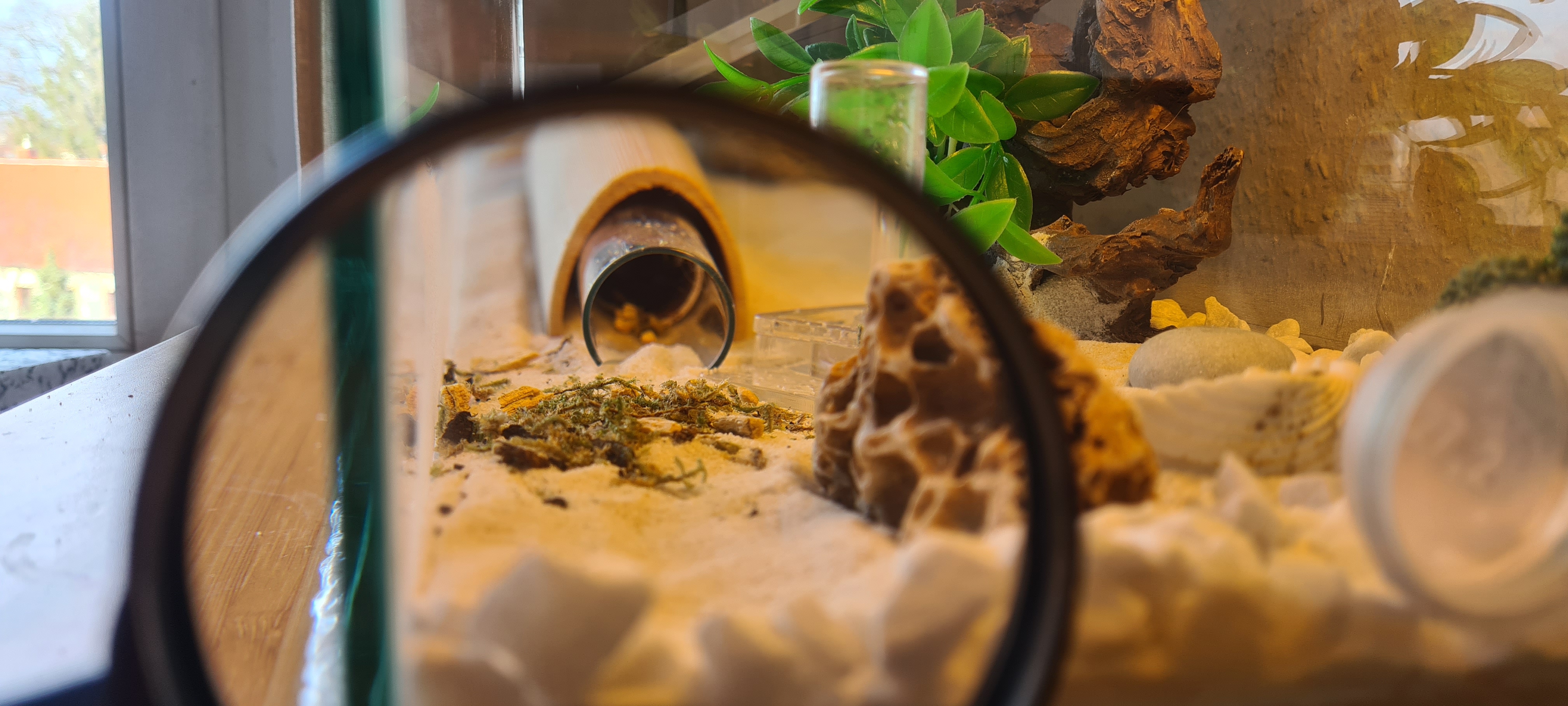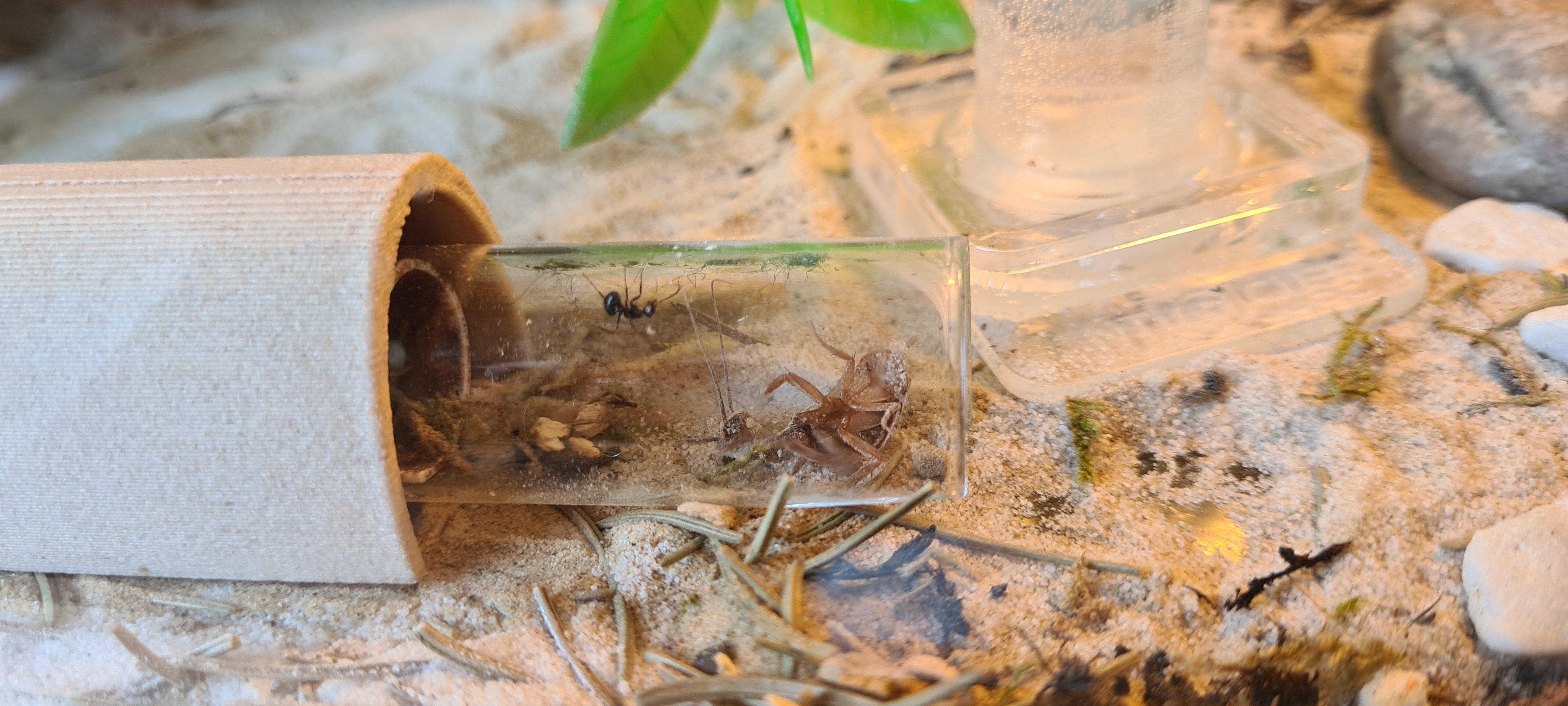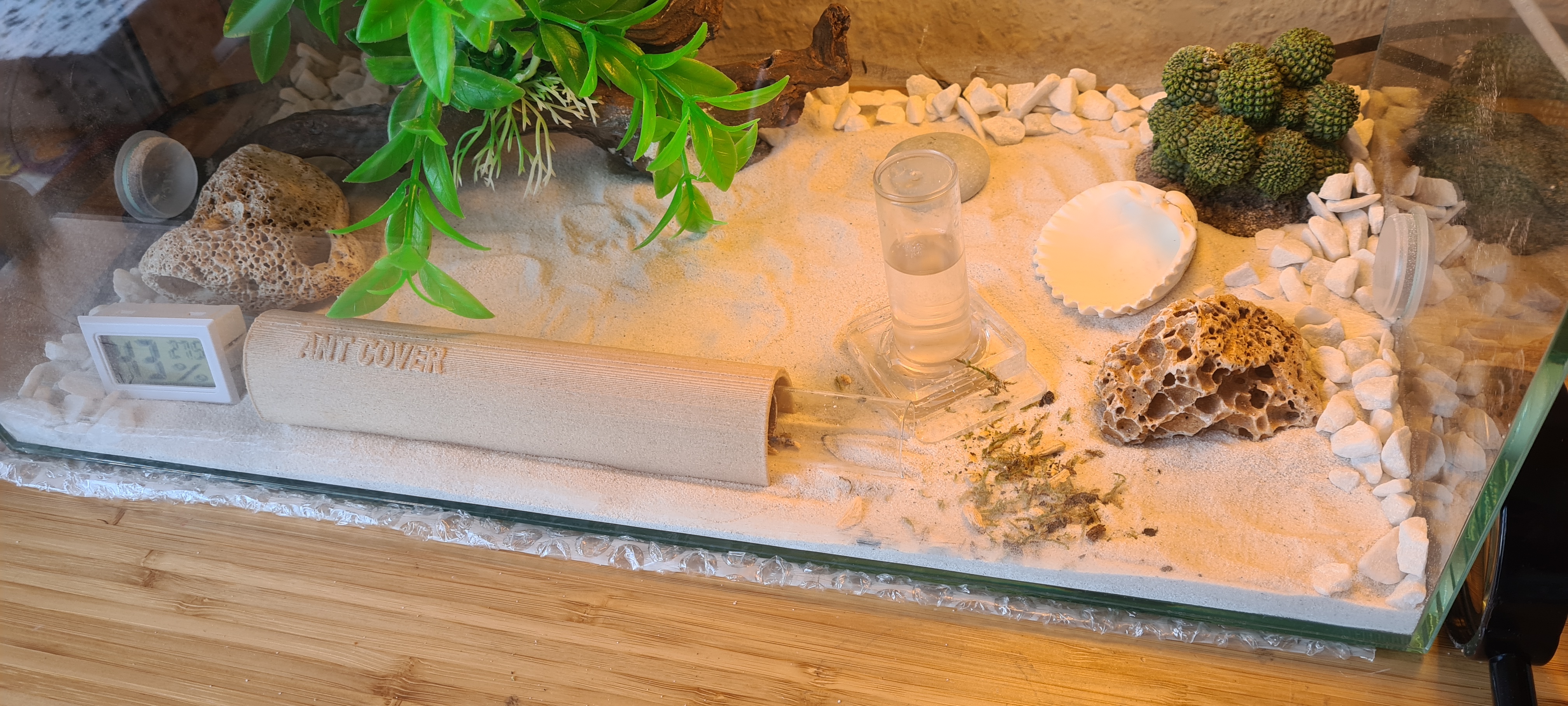 Ich habe gestern mal das Formicarium etwas umgestaltet. Hab mal helleren Sand genommen.