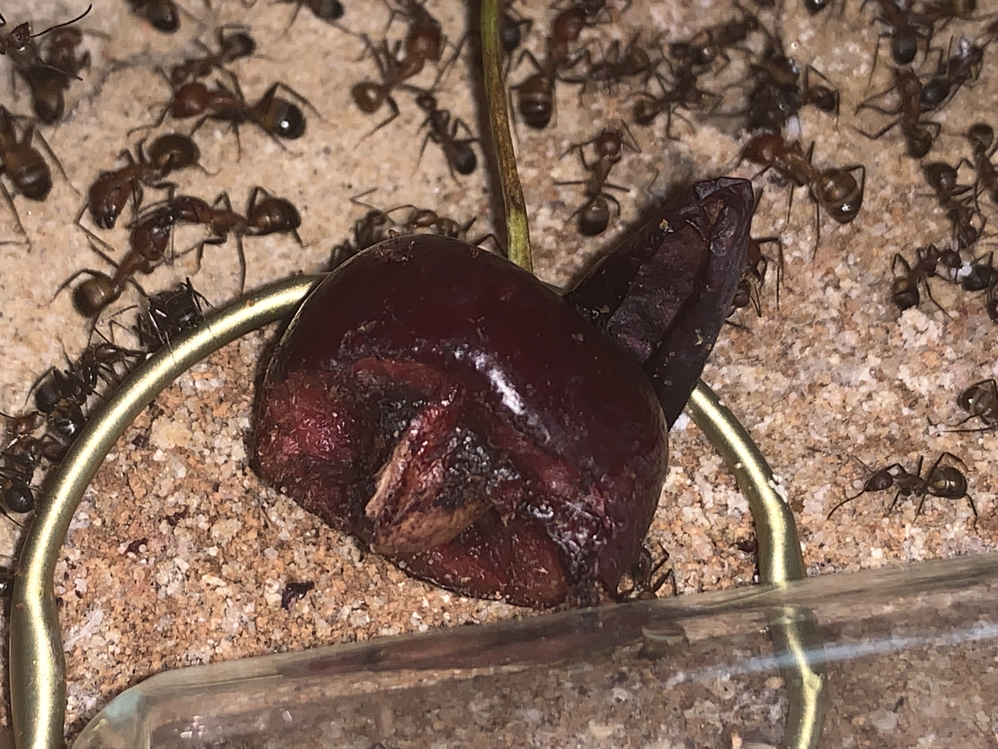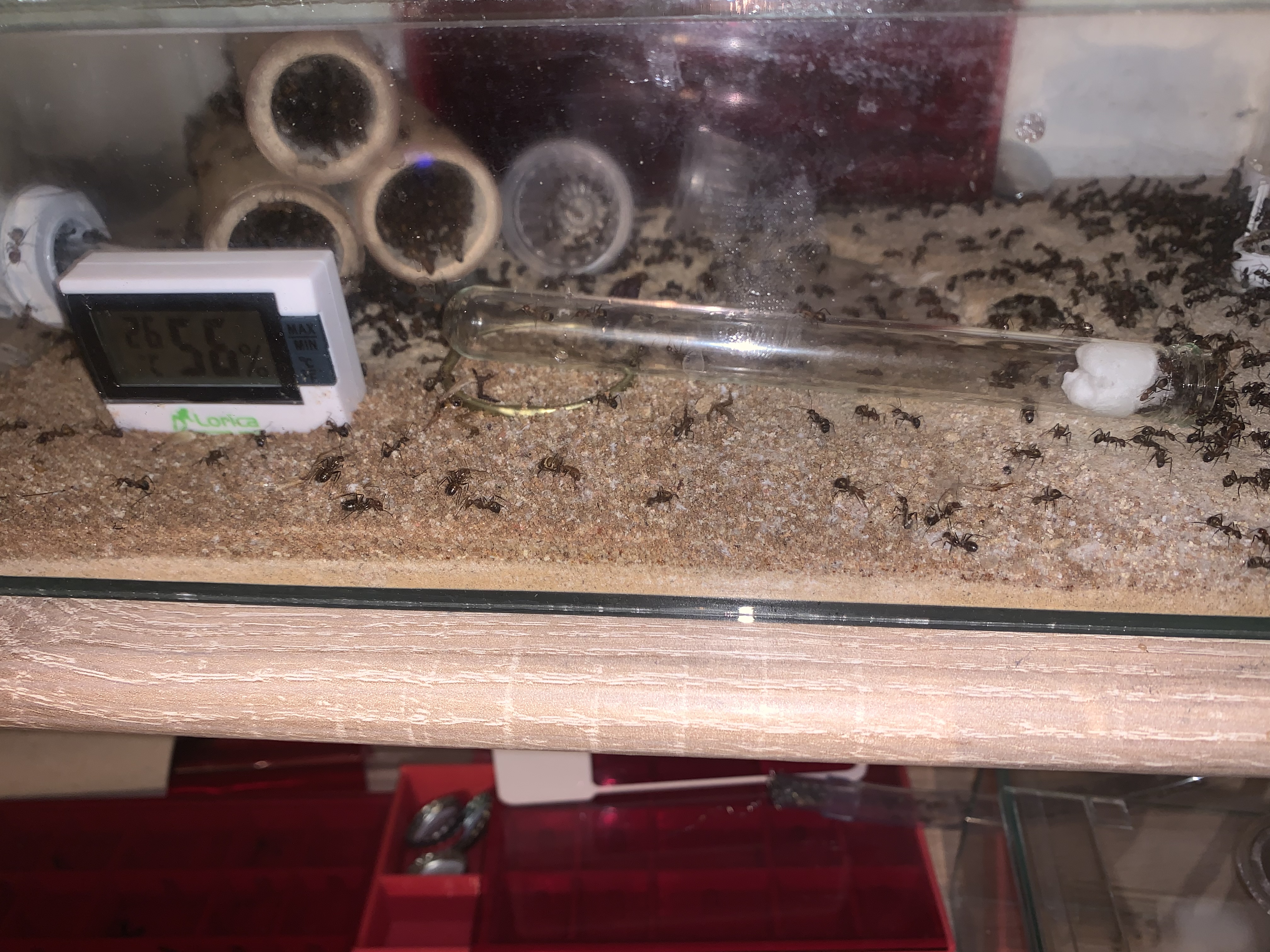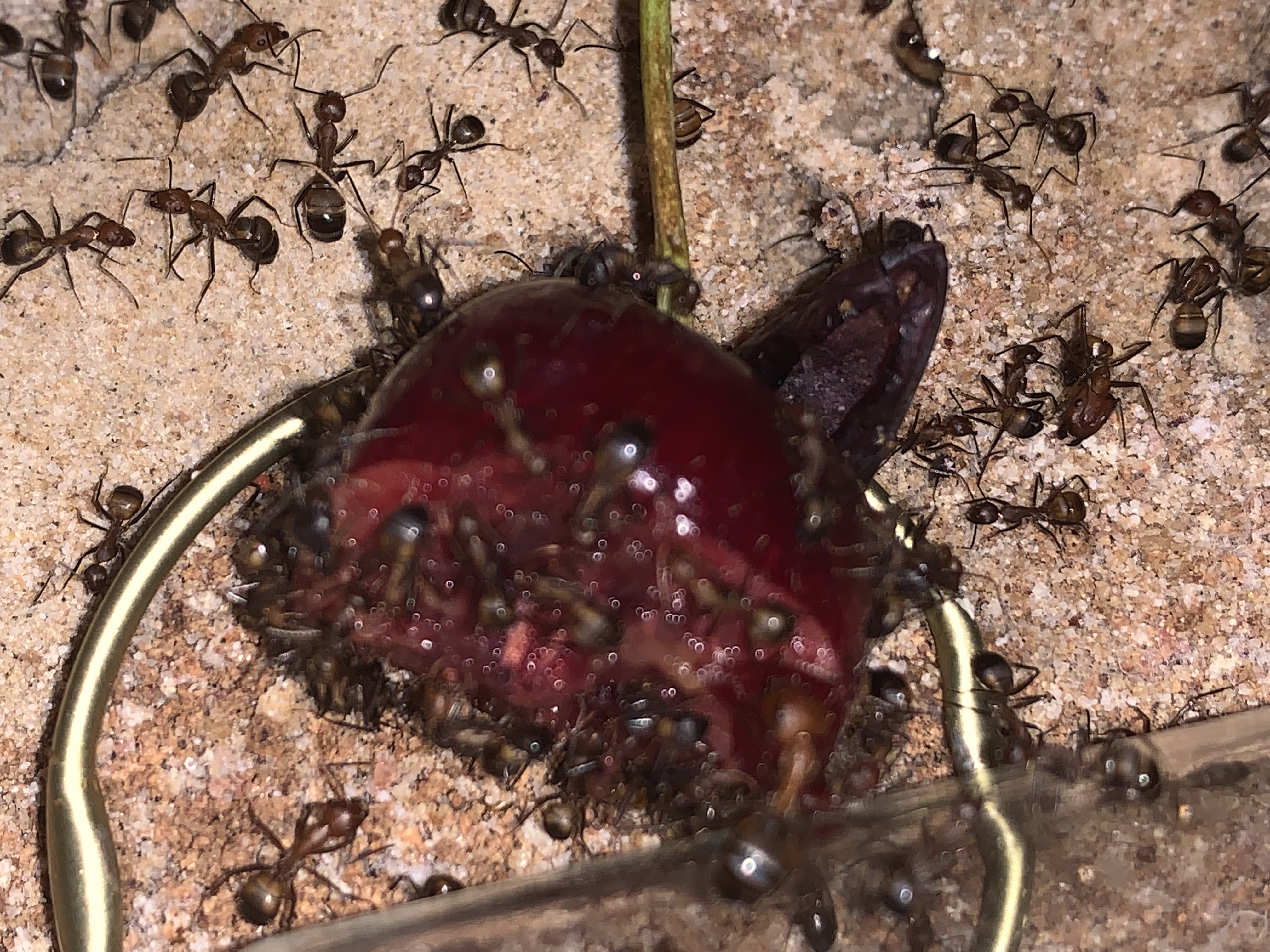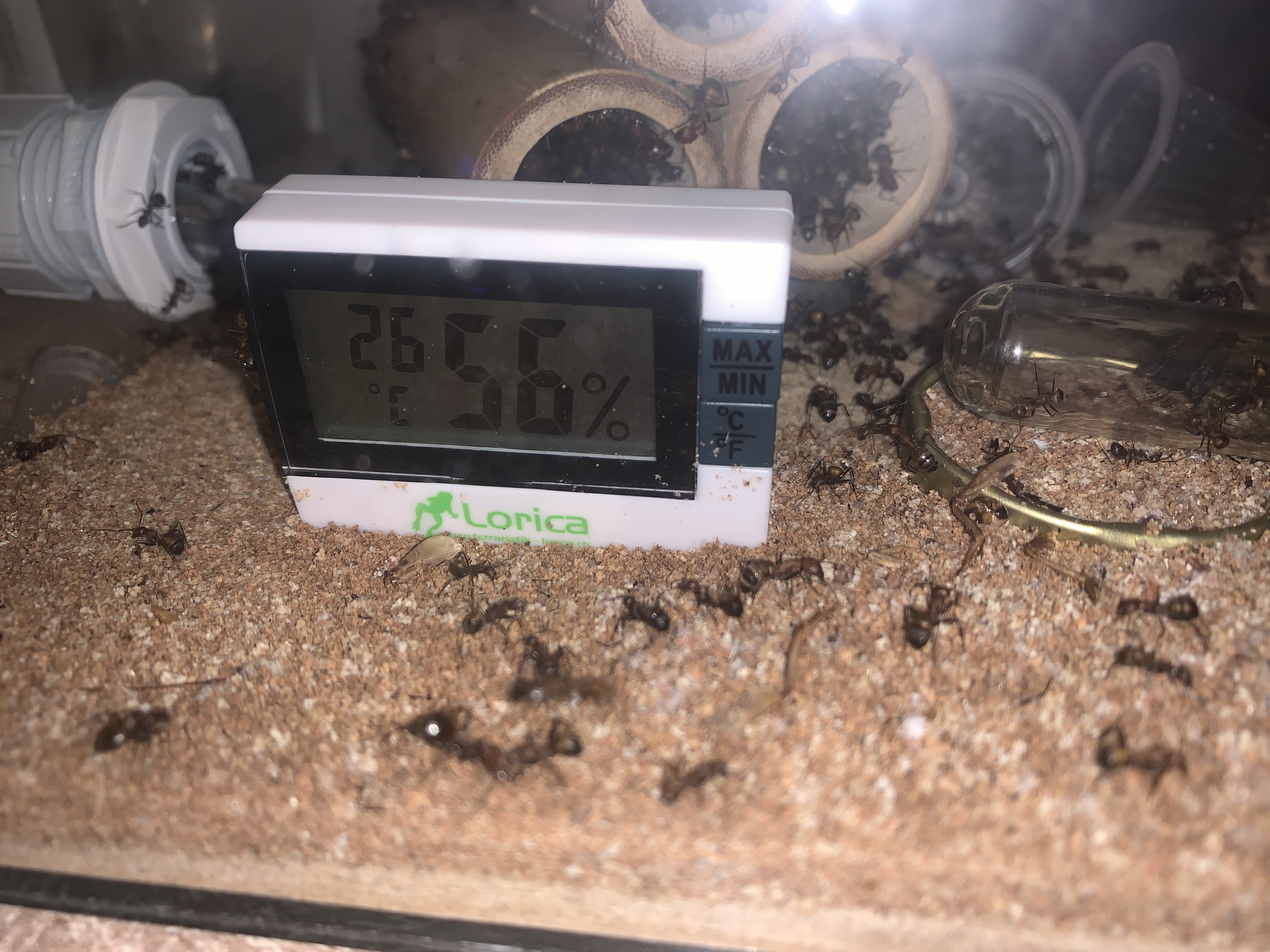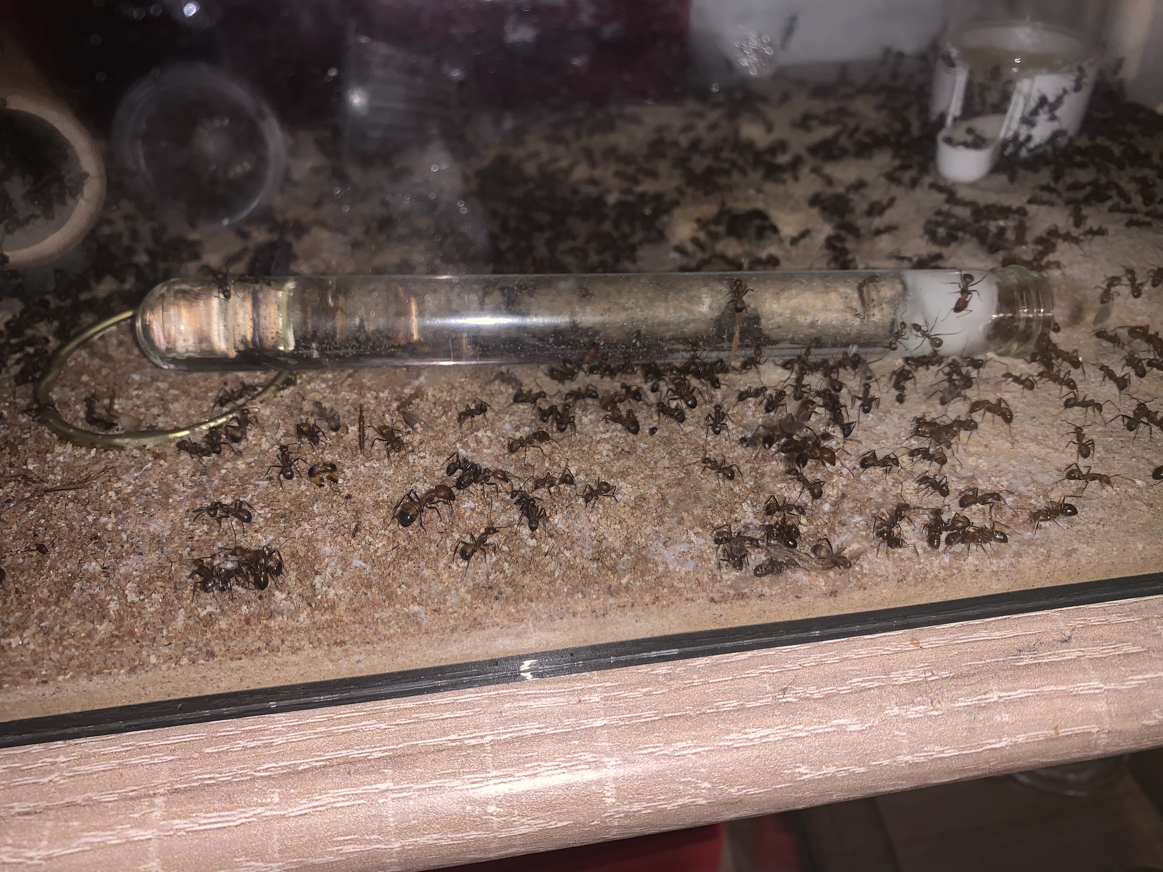 Du kannst mit dem Pinsel zusammen fegen? Da werde ich fast neidisch. Wenn ich das mache verbeisen sich meiner Messor alle in den Borsten. Ich kann sie dann nur noch unter Wasser halten wenn ich den Pinsel retten möchte. Bei meinem ersten Pinsel dachte ich, lege ich ihn in die Arena bis sie das Interesse verlieren. Kurze Zeit spĂ€ter sah ich zick Arbeiterinnen mit Pinselborsten durch die Arena rennen. Teilweise abgebissene oder am StĂŒck rausgerissene