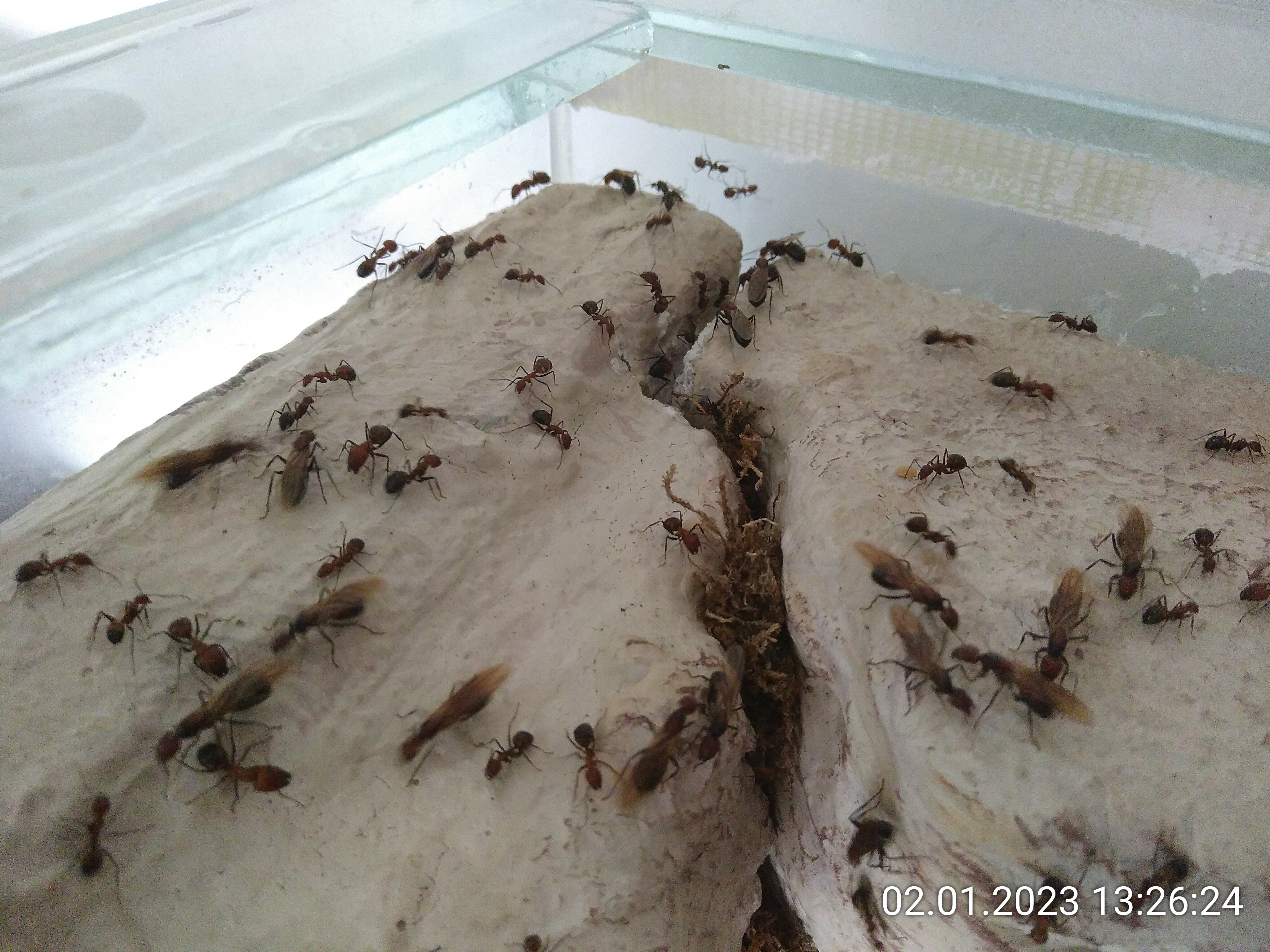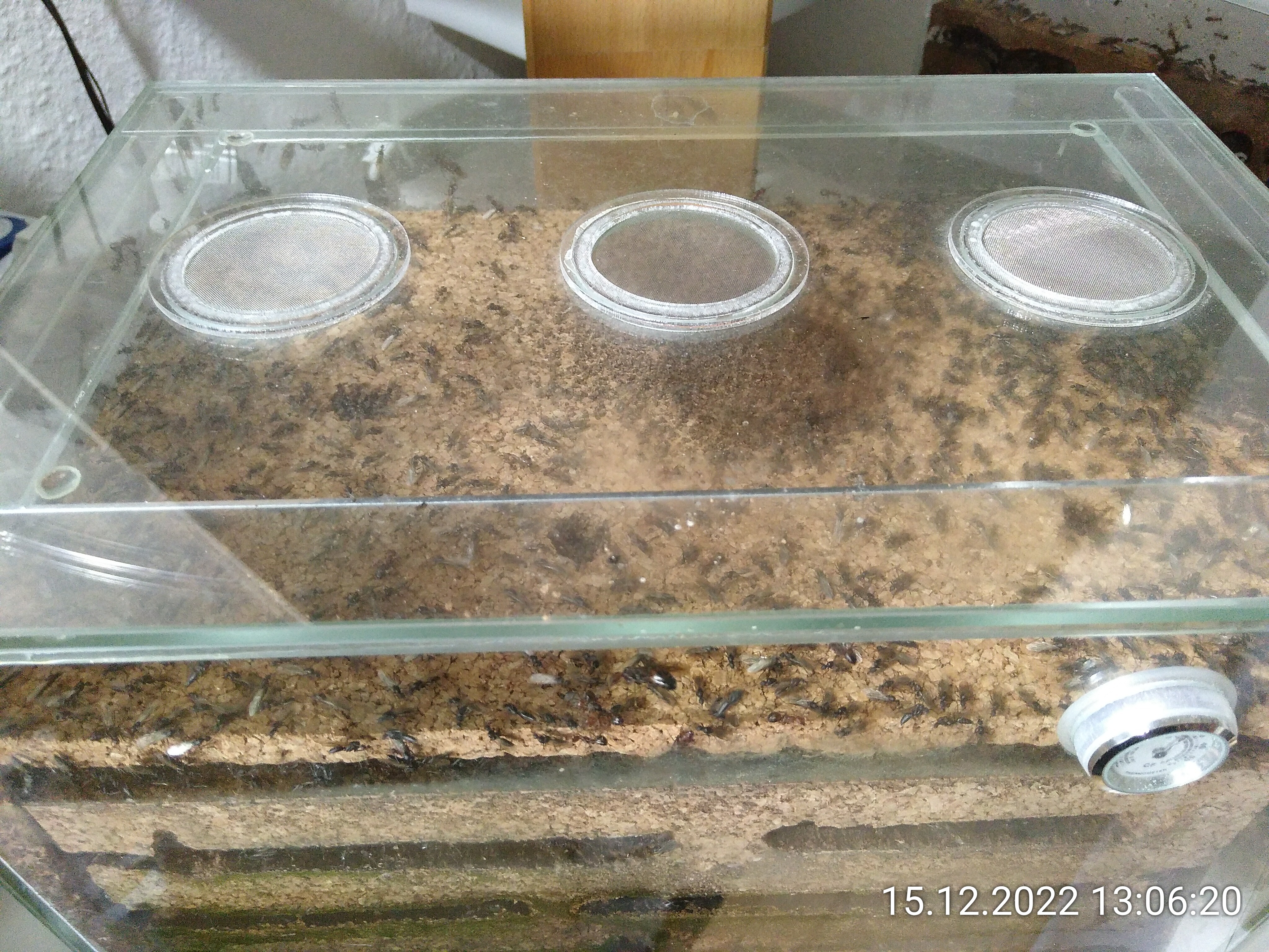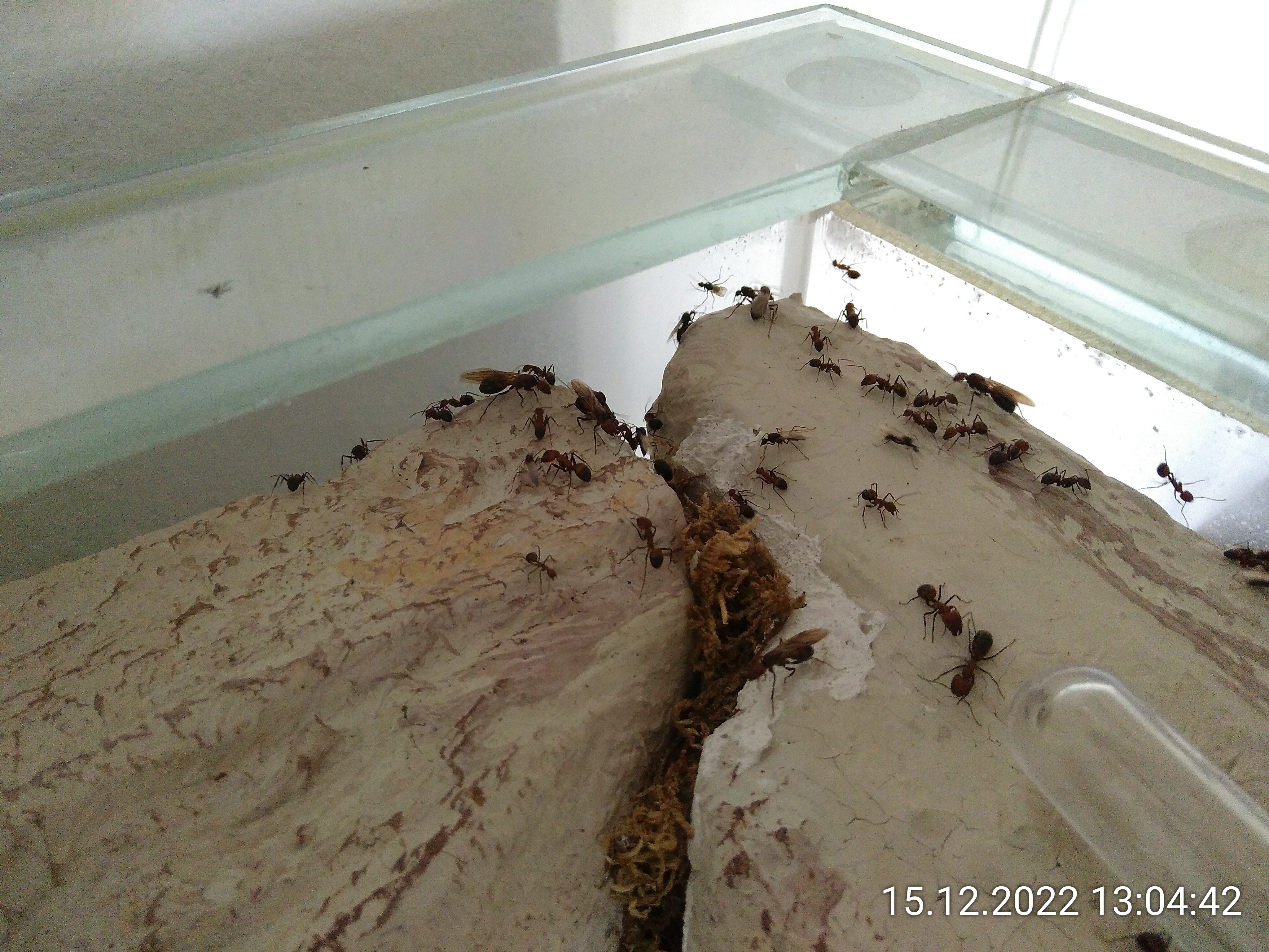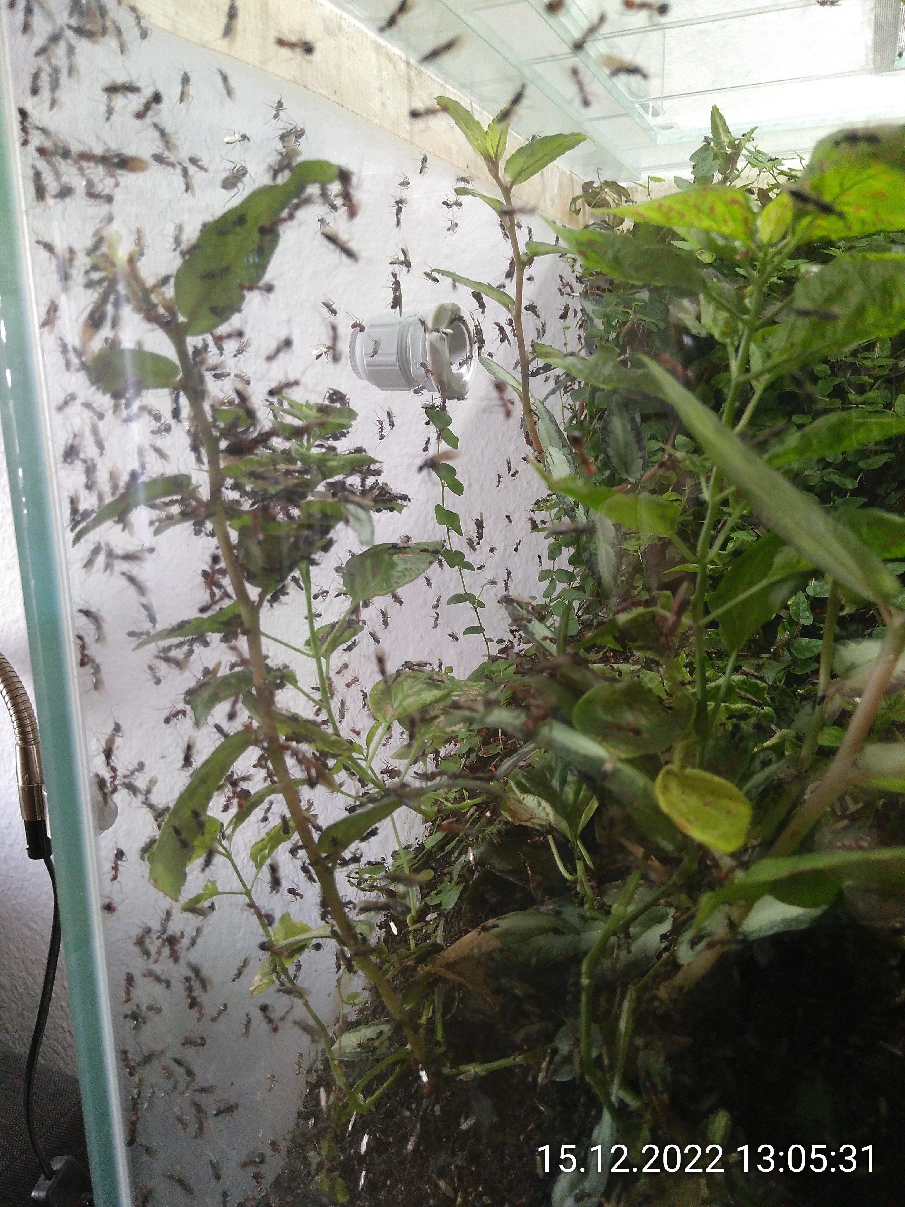 Und das sage ich, obwohl ich heute zweimal von ihnen gezwickt wurde. Das aber wohl auch zu Recht. Ich habe die Mittagszeit mal wieder genutzt, um Geschlechtstiere aus dem Dschungel auszusortieren. Währenddessen musste ich natürlich immer wieder die Ausbrecher unter Kontrolle bringen. Eine aufwendige Sache, aber ich halte es mehr oder weniger für nötig. In der Natur würden auch nicht so viele von ihnen dauerhaft in der Kolonie leben. Das gehört wohl zu den Schattenseiten der Ameisenhaltung.