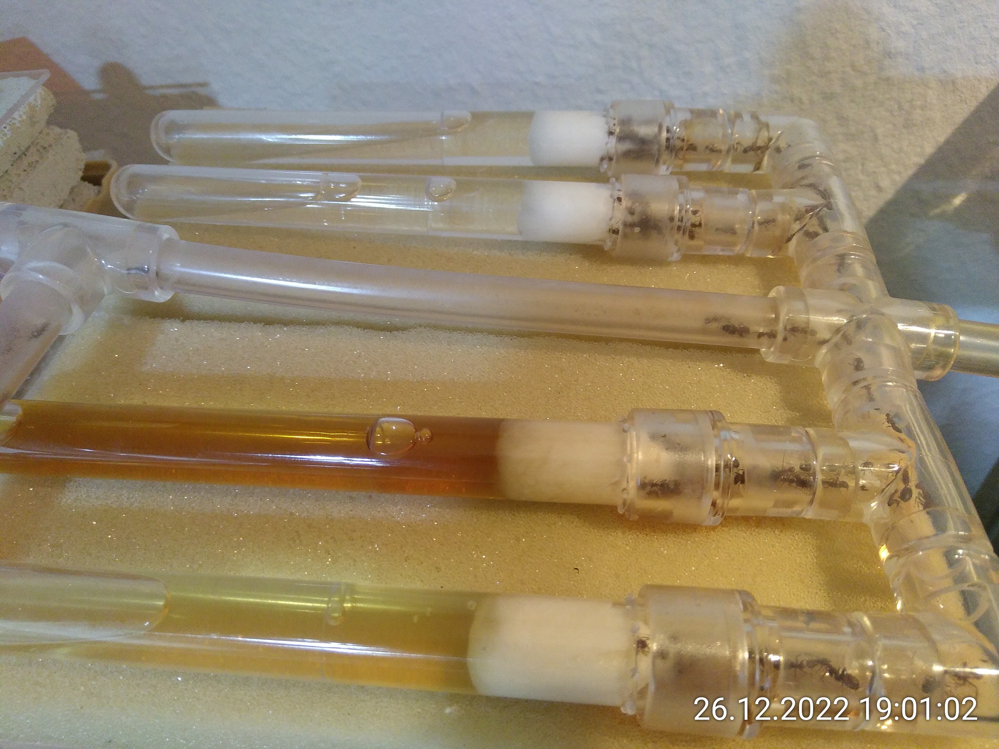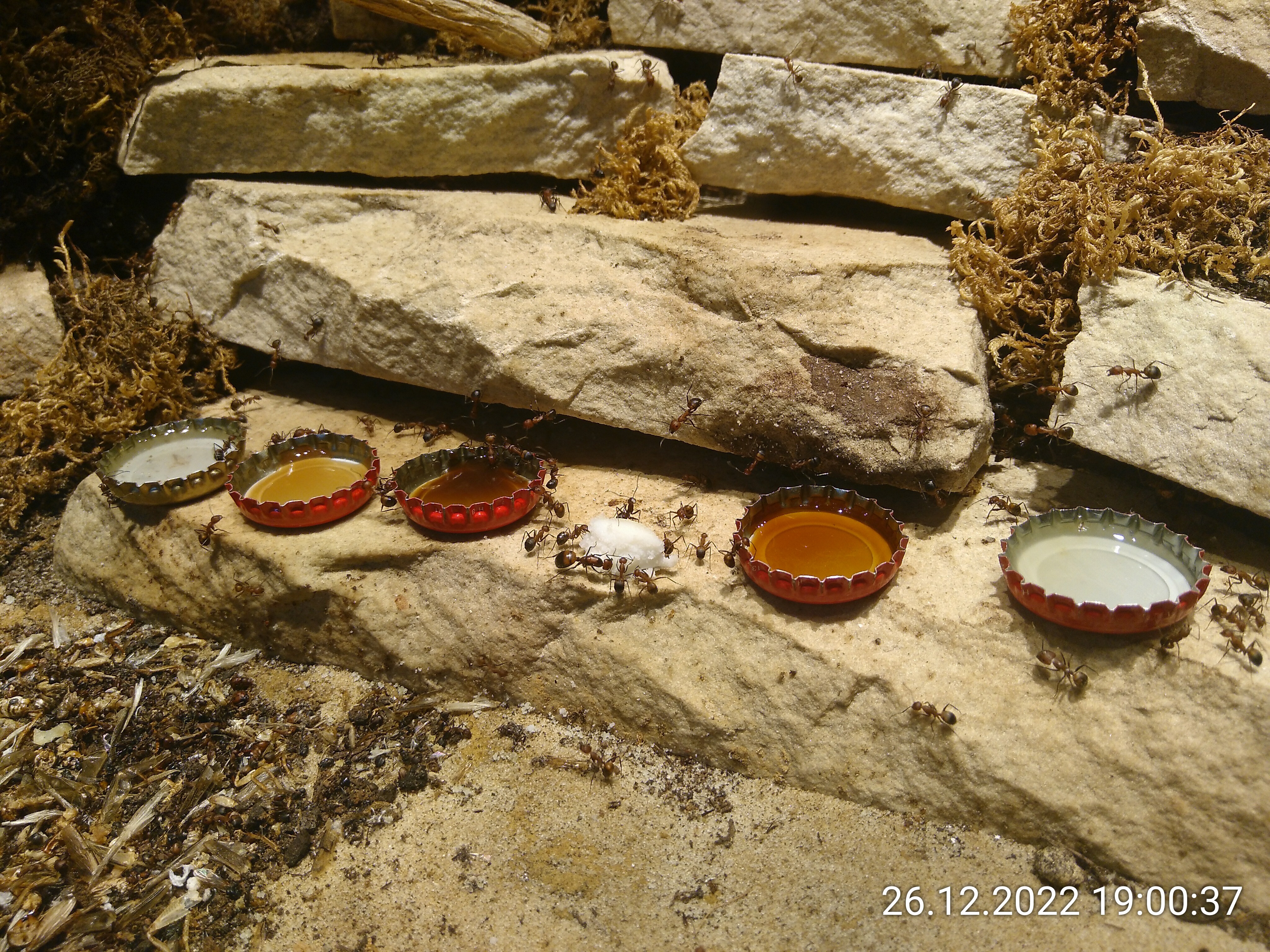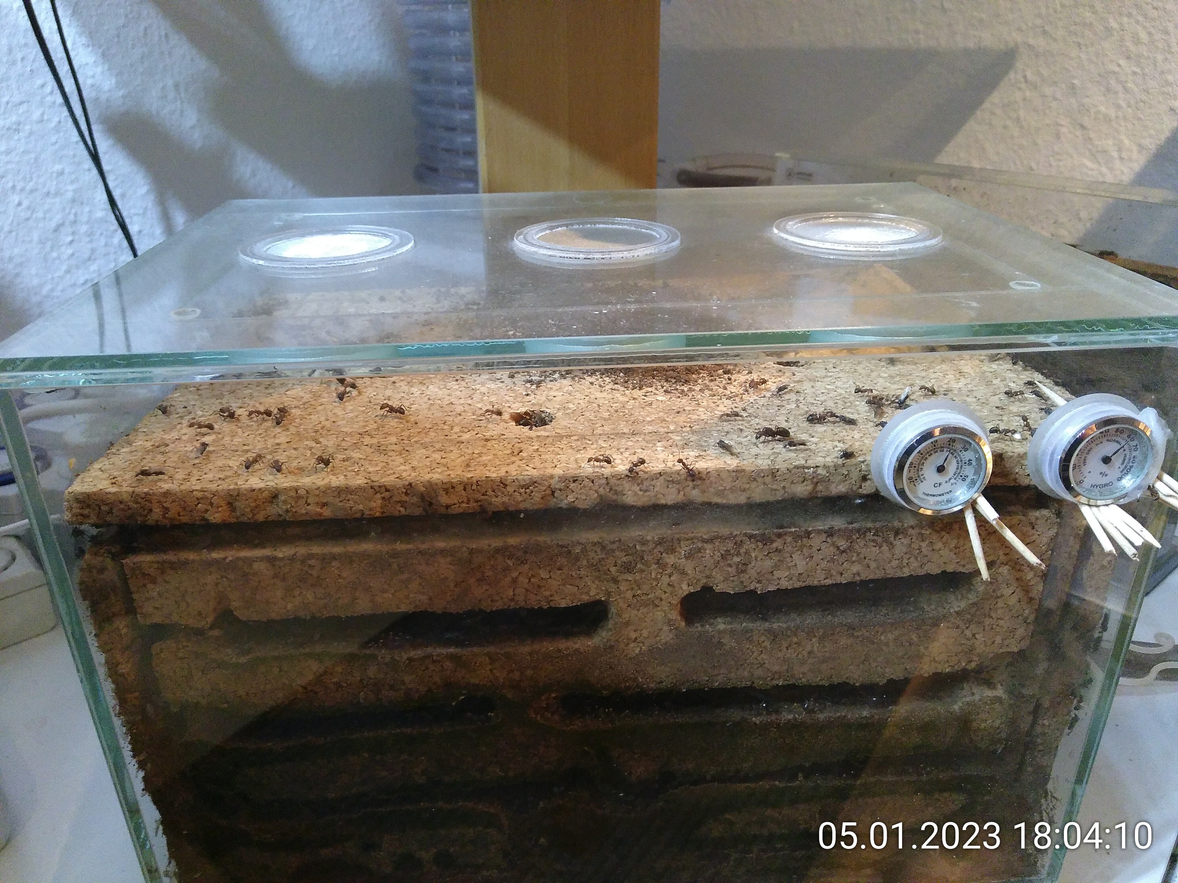 Wie sind die denn dahin gekommen? Damit dürfte dann auch die Frage von vor ein paar Wochen beantwortet sein. Da habe ich eine Ameise mit einer weißen Assel in den Mandibeln gesehen und mich gefragt, ob sie sie umherträgt oder frisst. Wenn ich mir so das Camp Nico anschaue, werden sie wohl hingetragen worden sein. Finde ich super! Ich habe so coole Ameisen :)