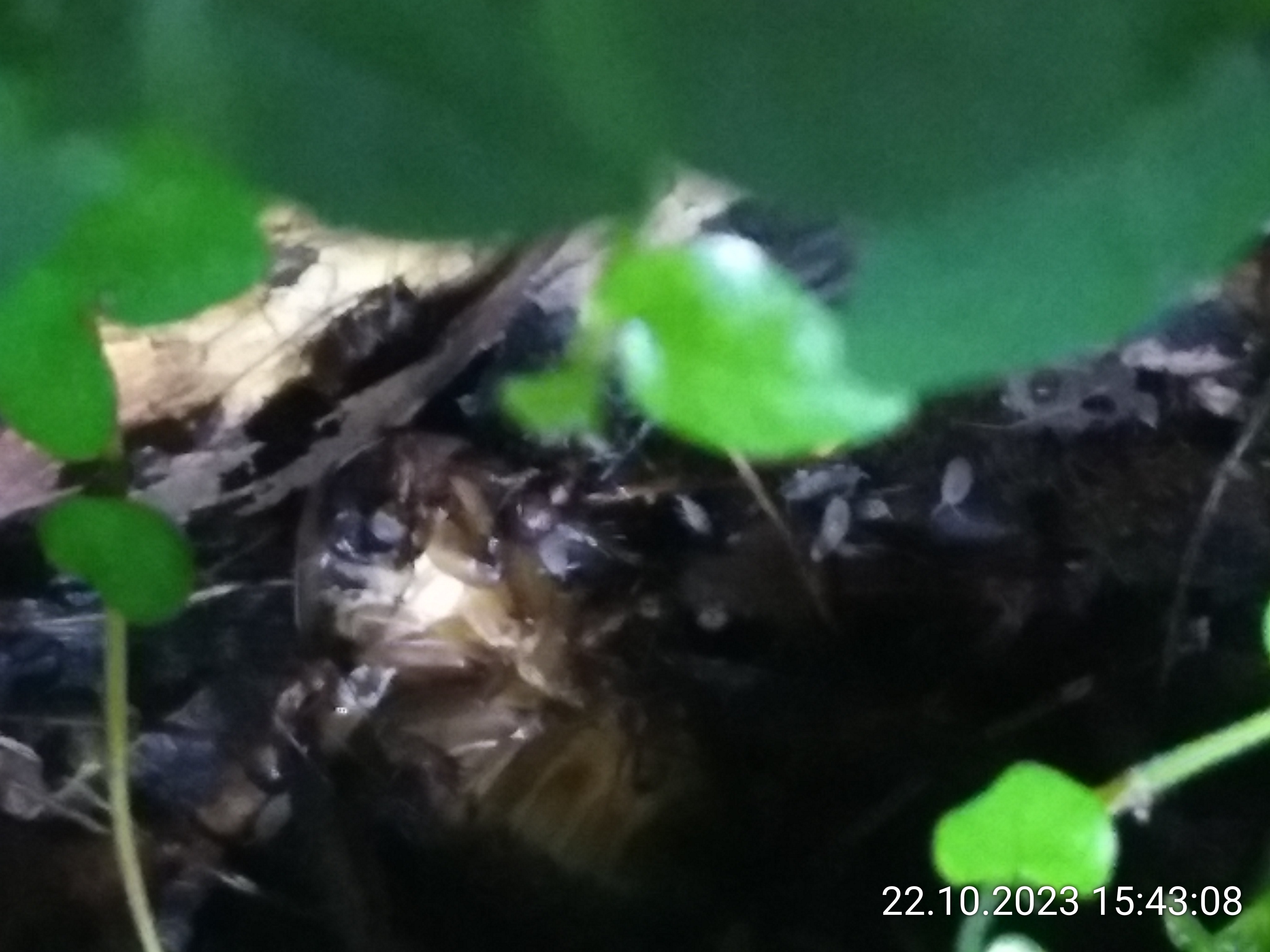 Und damit in den Dschungel... Habe hier vor 3 Tagen mal wieder eine Heuschrecke und anderes gefĂŒttert. Nachdem die Nicos fertig damit sind, wird es mittlerweile immer erst richtig interessant. Denn dann kommt die Bodencrew.
