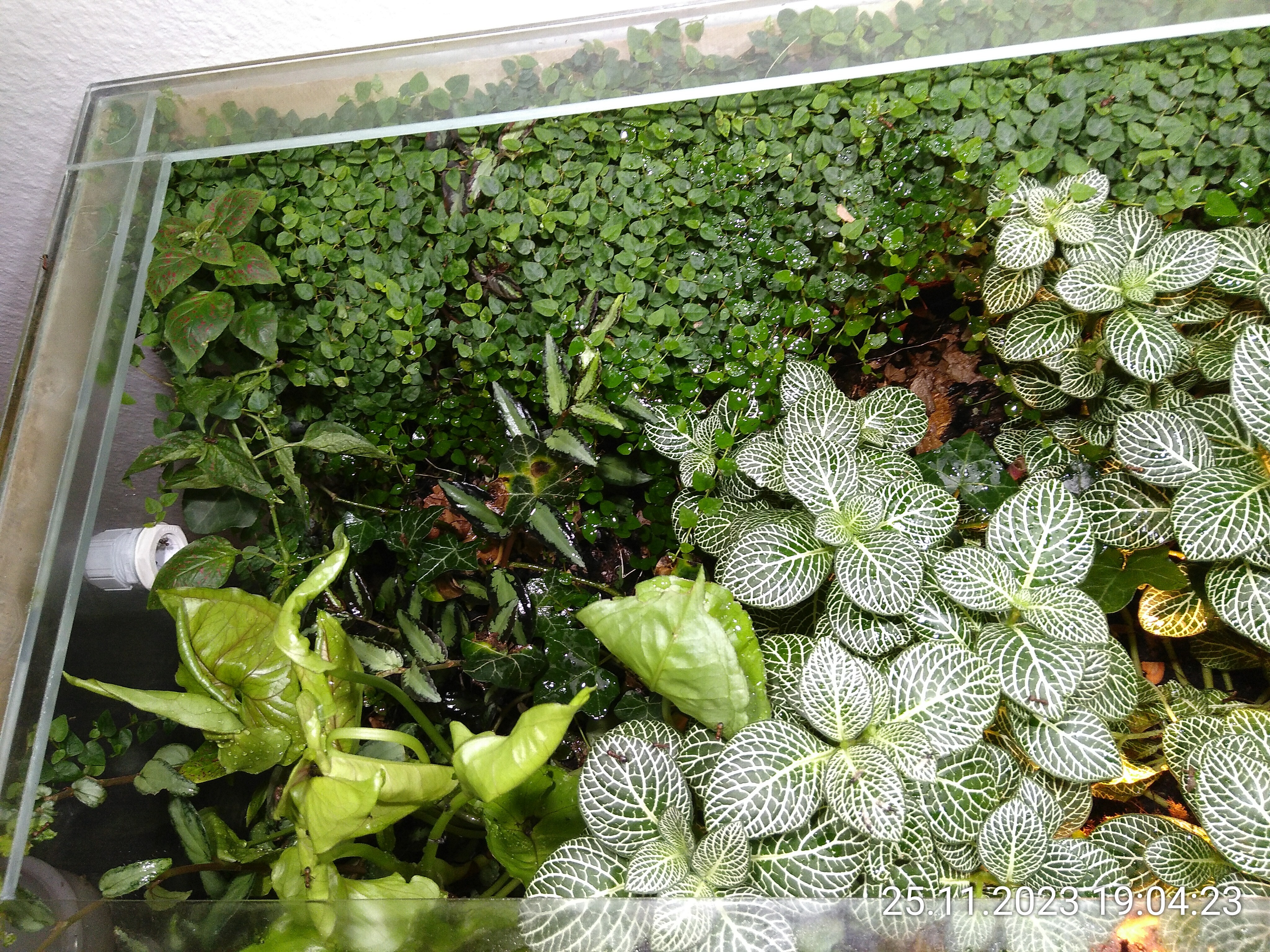 Großen Hunger haben aber meine Asseln im Dschungel. Seitdem sie dort drin sind, streue ich auch Laub aus. Habe ich auch schon mal geschrieben. Mir war nur nicht klar, wie viel sie davon fressen. An manchen Stellen ist die Bodenbedeckung schon nach wenigen Tagen fast komplett verschwunden. Und darunter sieht man es wuseln. Ich habe erst am Wochenende neues Laub reingestreut und denke heute schon wieder über Nachschub nach. Zum Glück ist gerade Herbst. Ich werde mir wohl einen Laubvorrat zulegen müssen. Hätte nicht gedacht, dass ich so was mal denken oder schreiben würde :) Fast wie bei Blattschneidern...