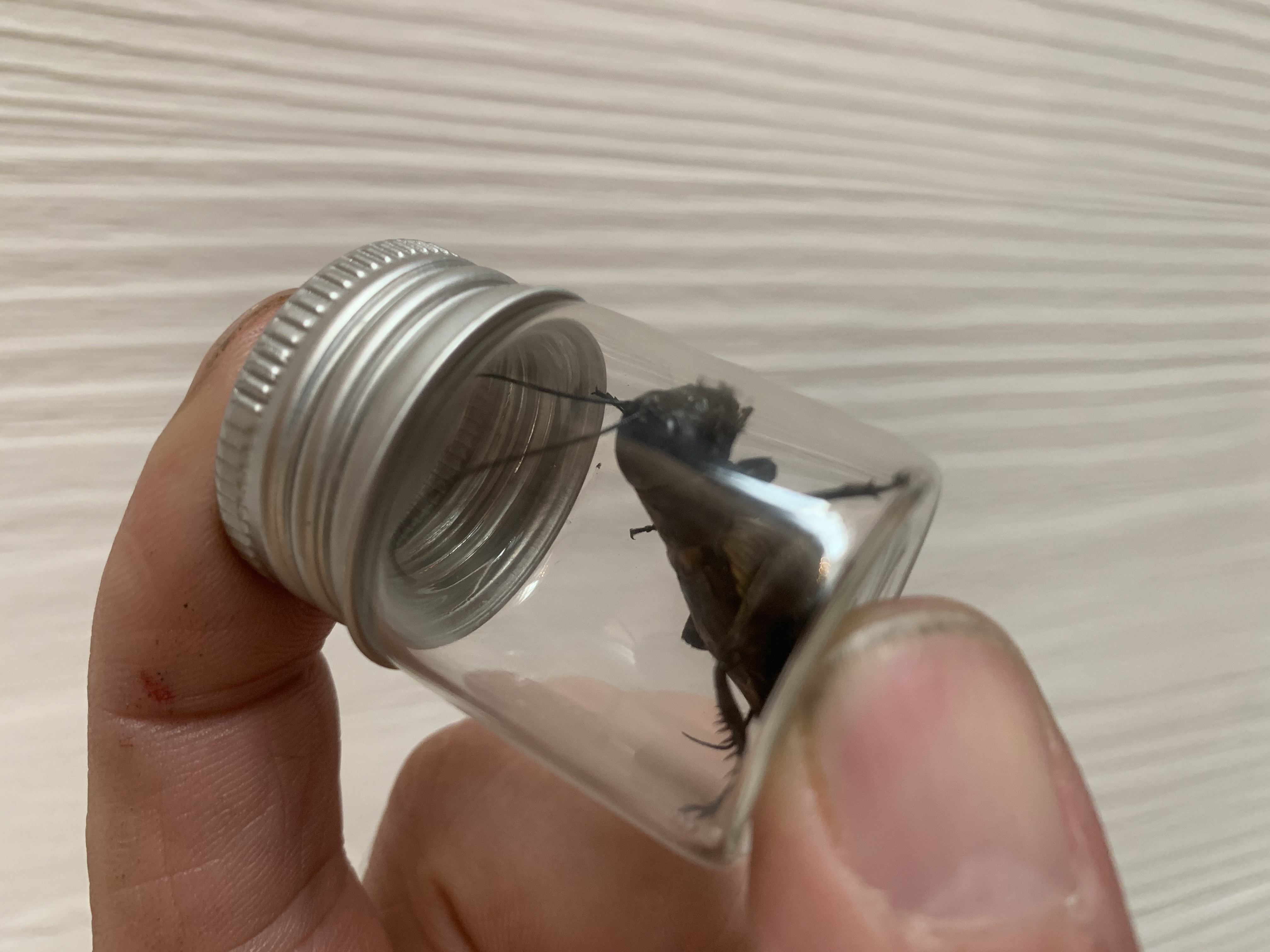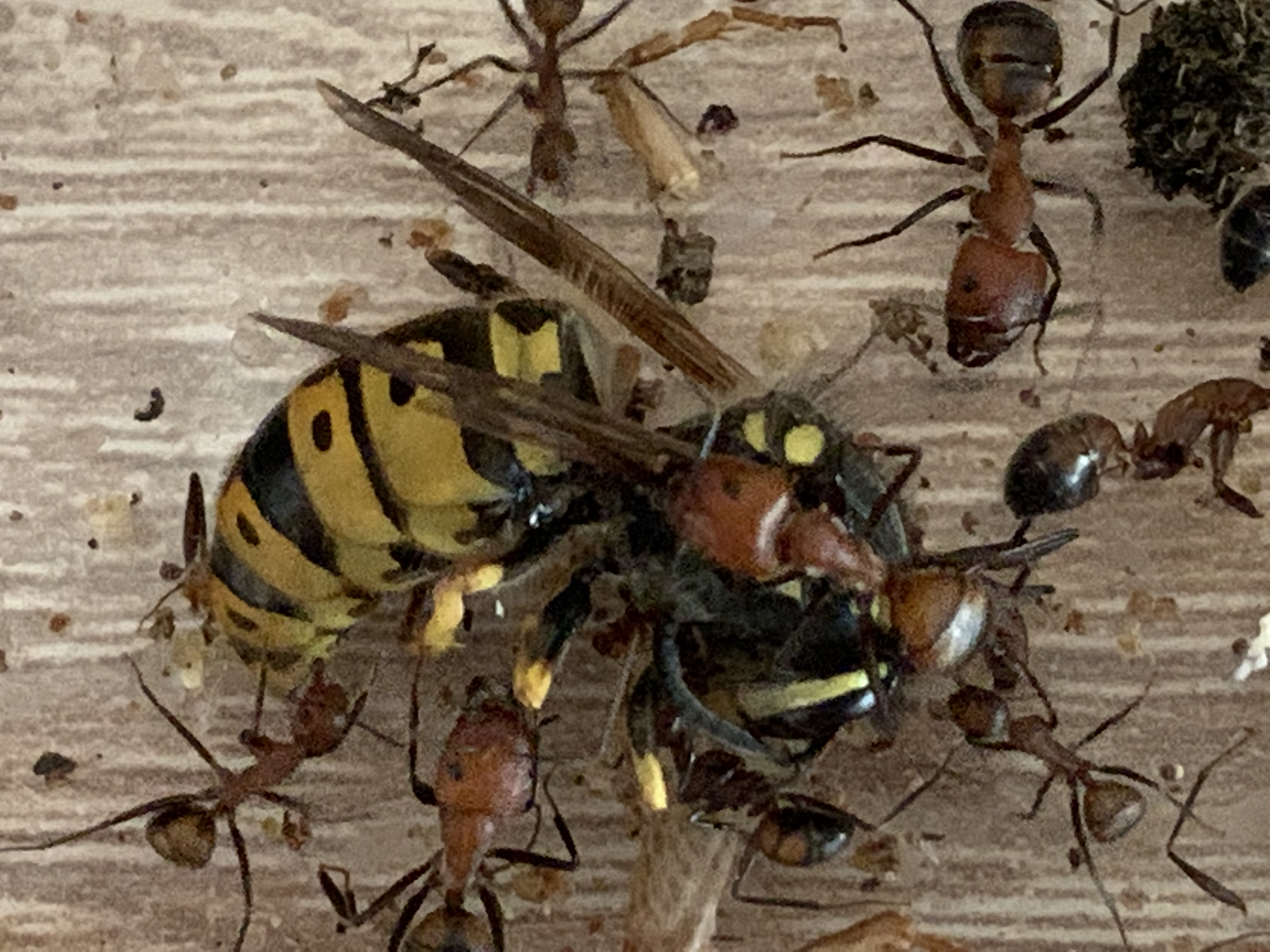 Im BĂŒro heute eine Wespe rumgeschwirrt, ein Mitarbeiter hat diese âerschlagenâ, ich habe sie direkt eingetĂŒtet und vorhin meinen Camponotus nicobarensis gegeben!