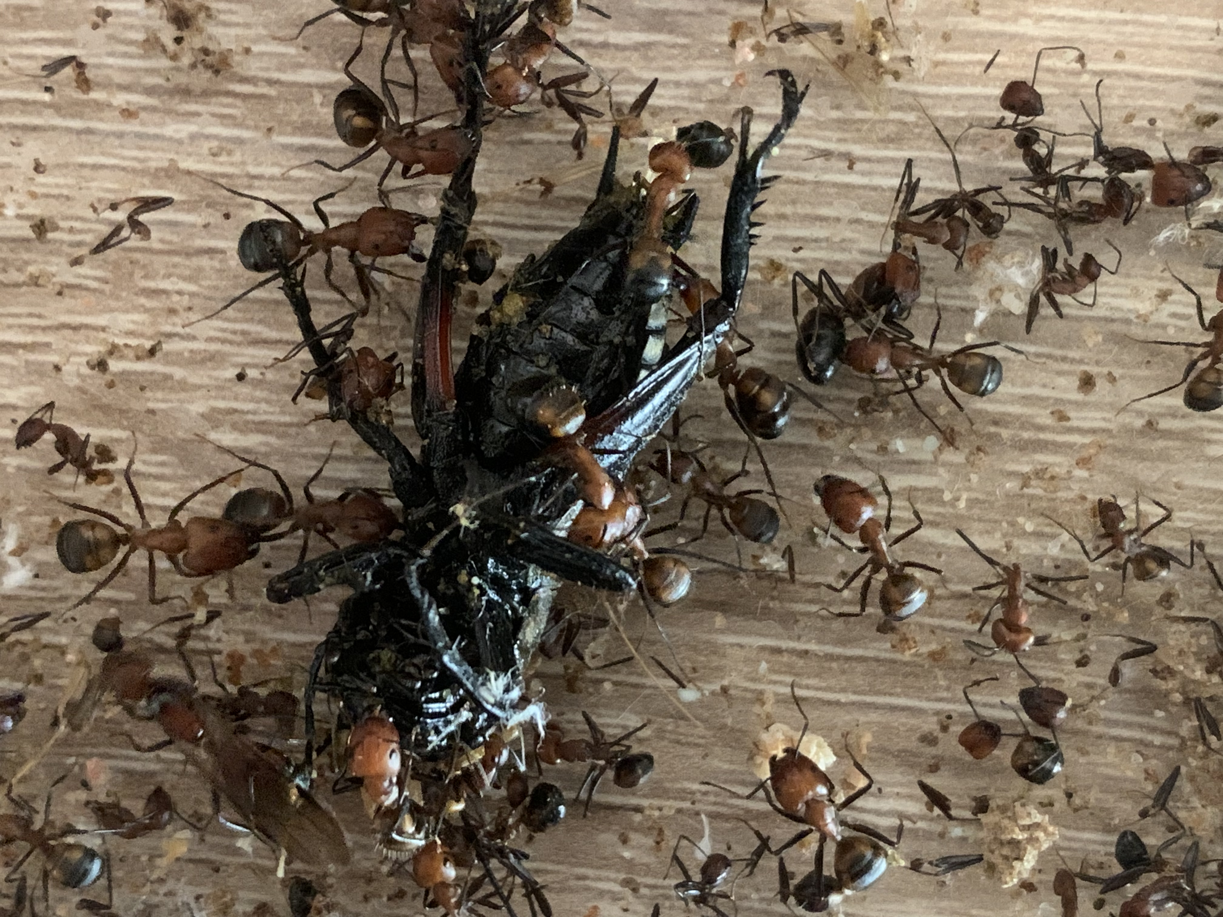 Zuhause dann in die Arena von meinen Camponotus nicobarensis und jetzt ca. 20â spĂ€ter liegt die Grille bereits verspeisebereit aufm RĂŒcken.
