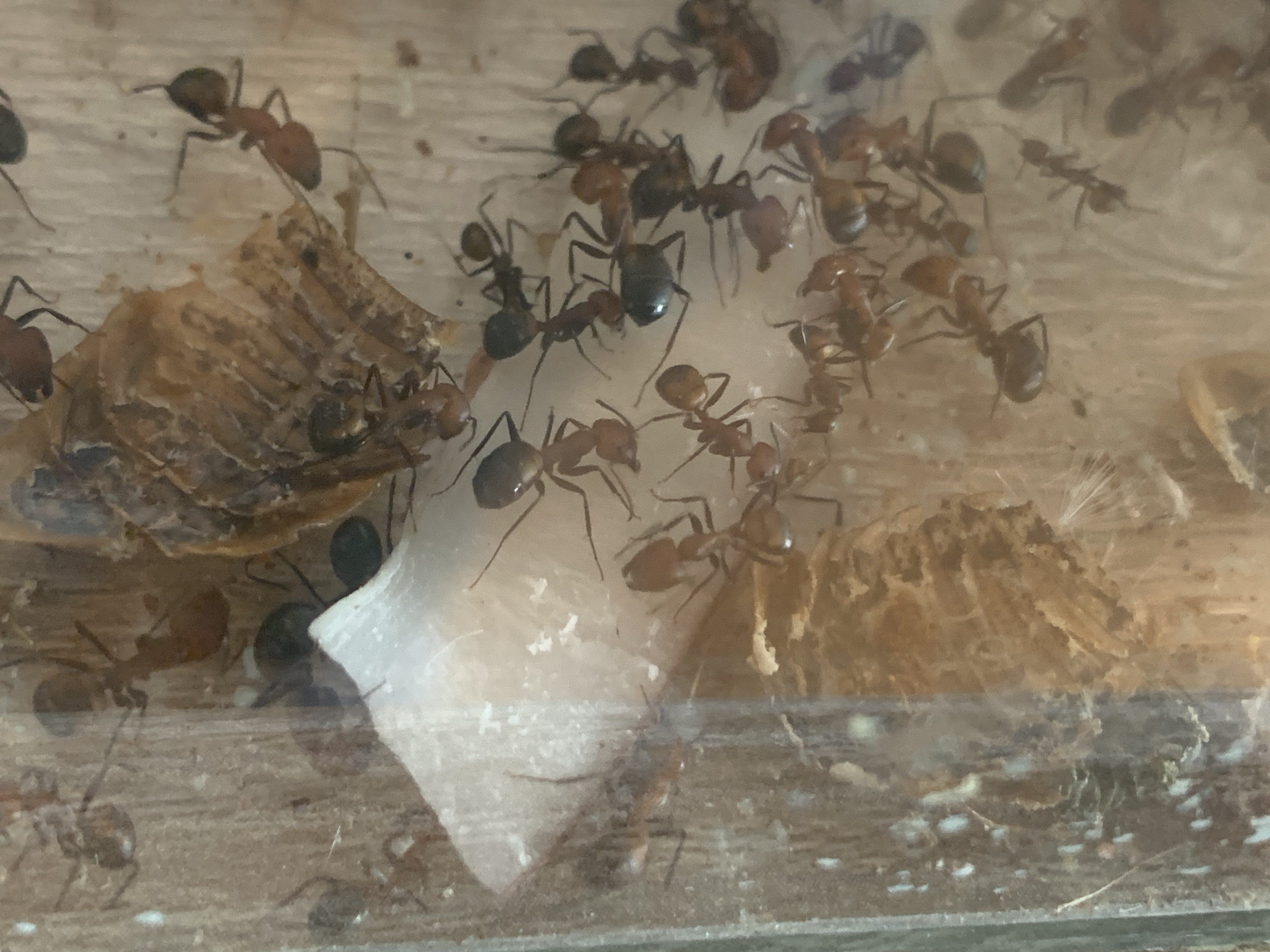 Vorhin einen getrockneten Kokussplitter meinen Camponotus nicobarensis gegeben, nach 15â Minuten sah es denn so aus: